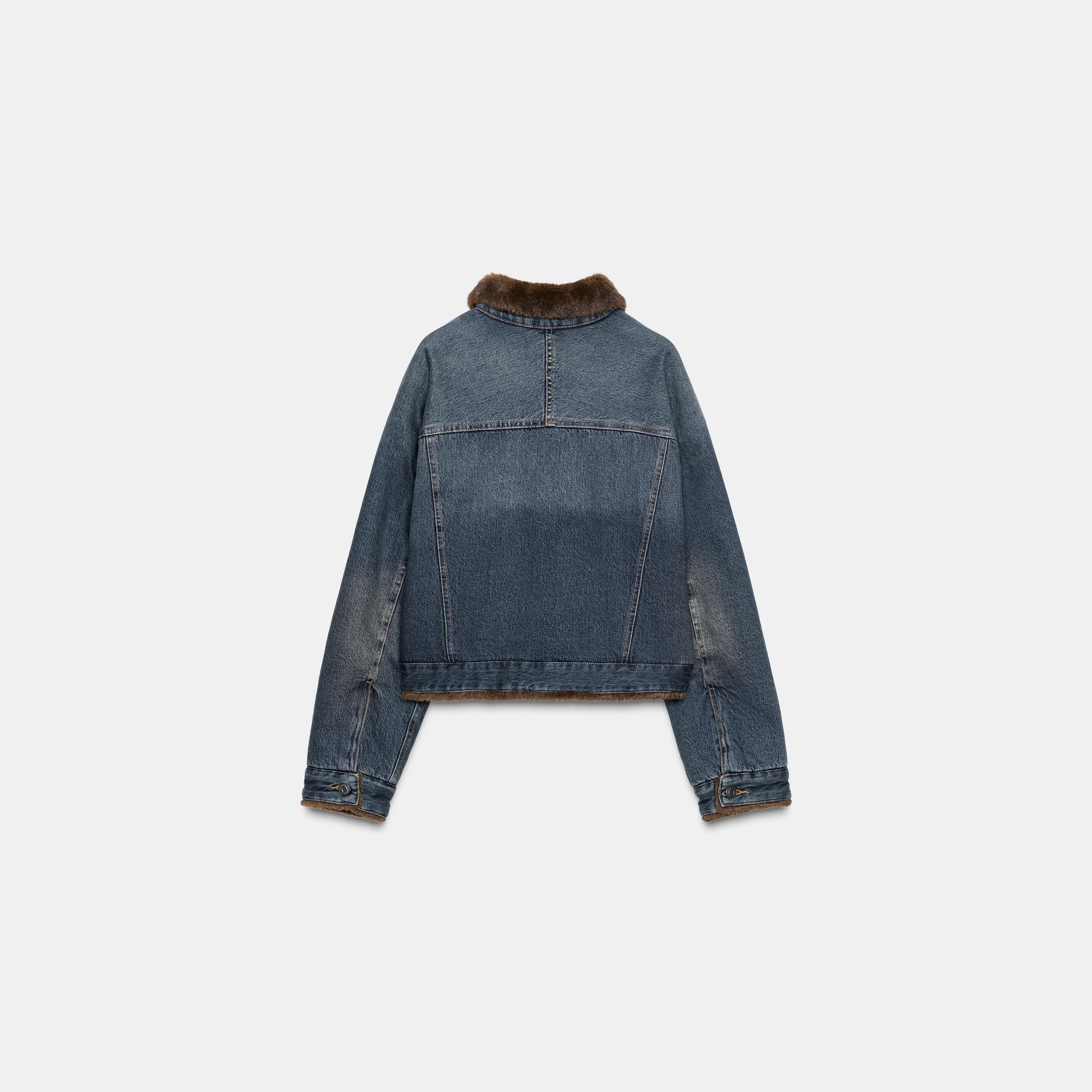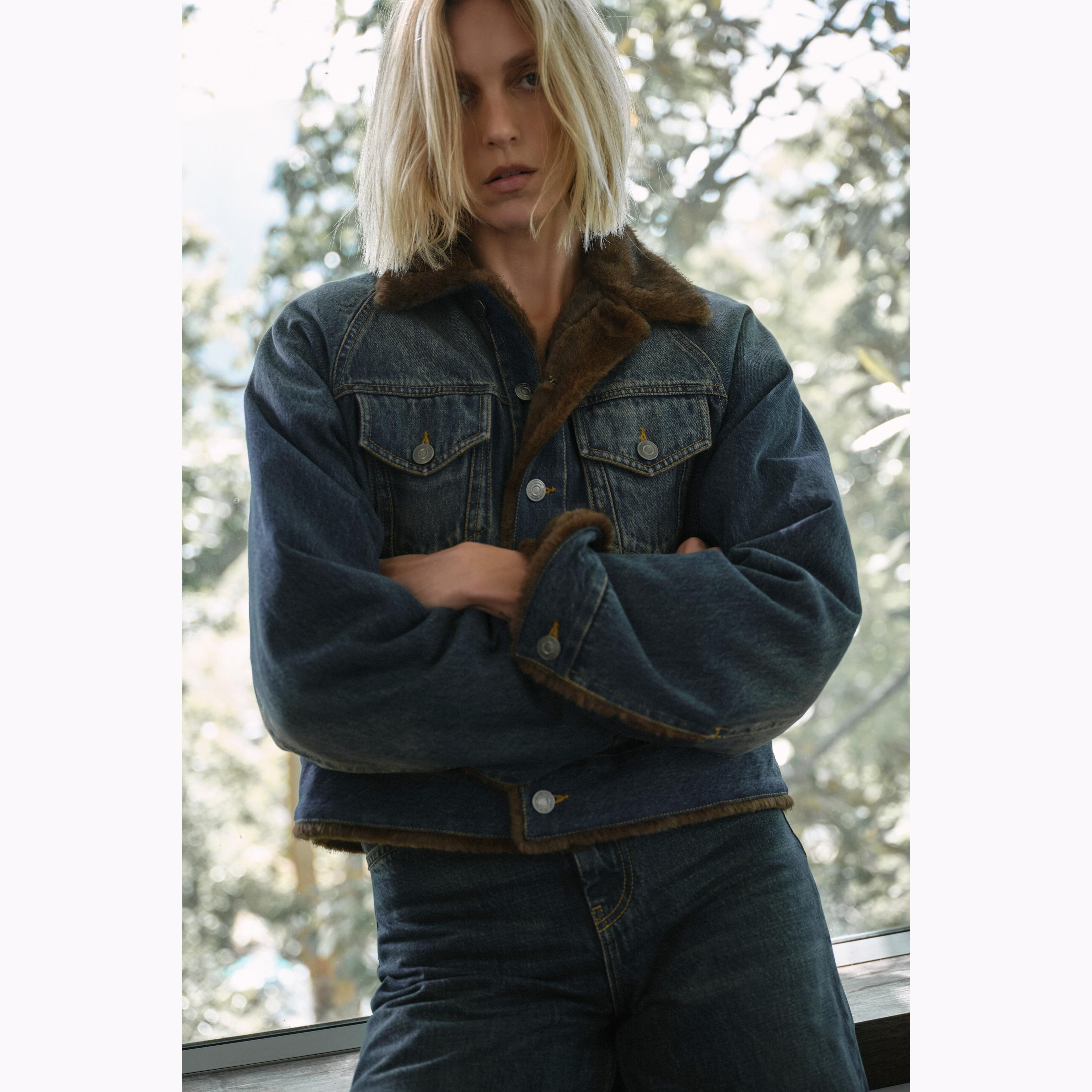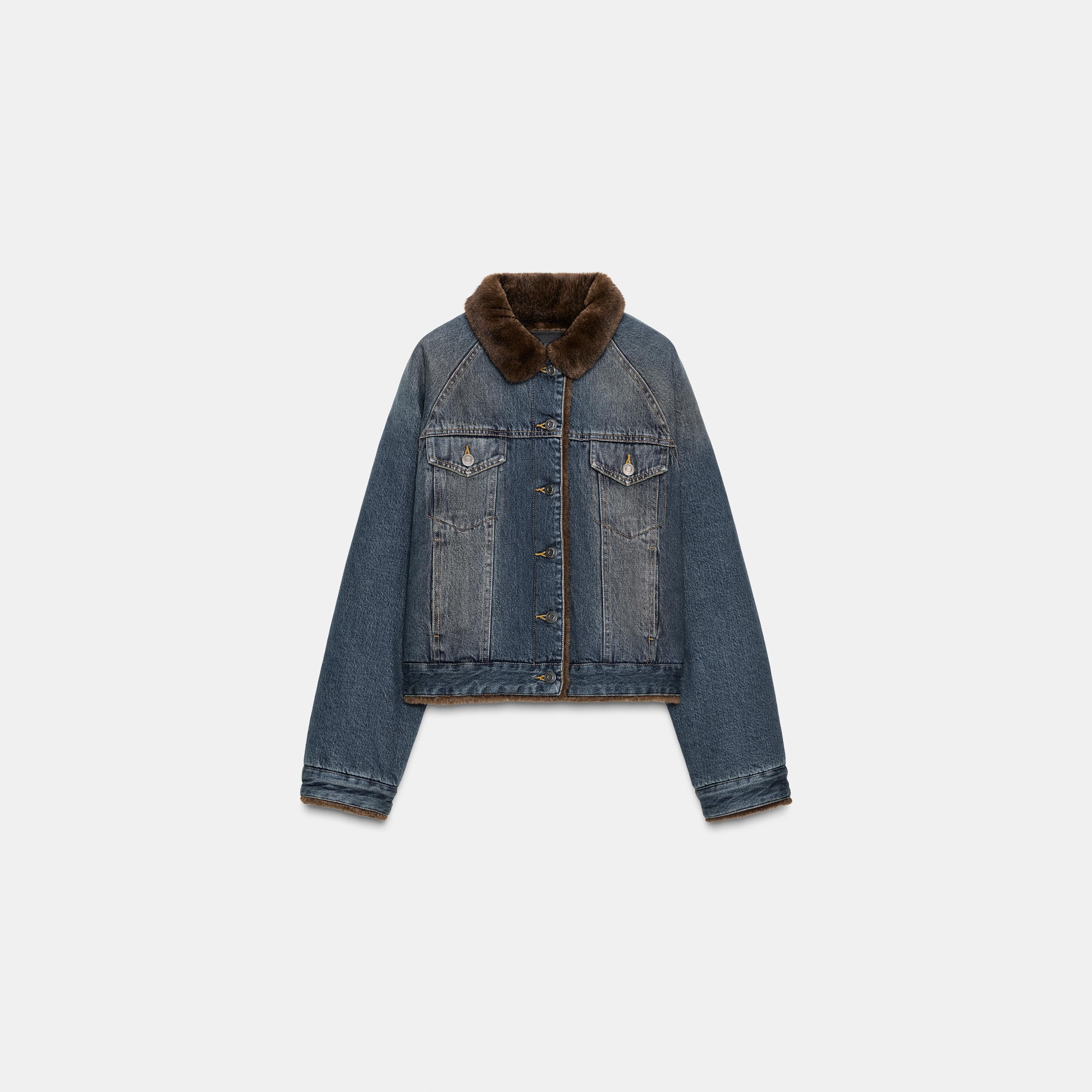 - التصميم: جاكيت دنيم مع فرو صناعي (Faux Fur Denim Jacket – ZW Collection)