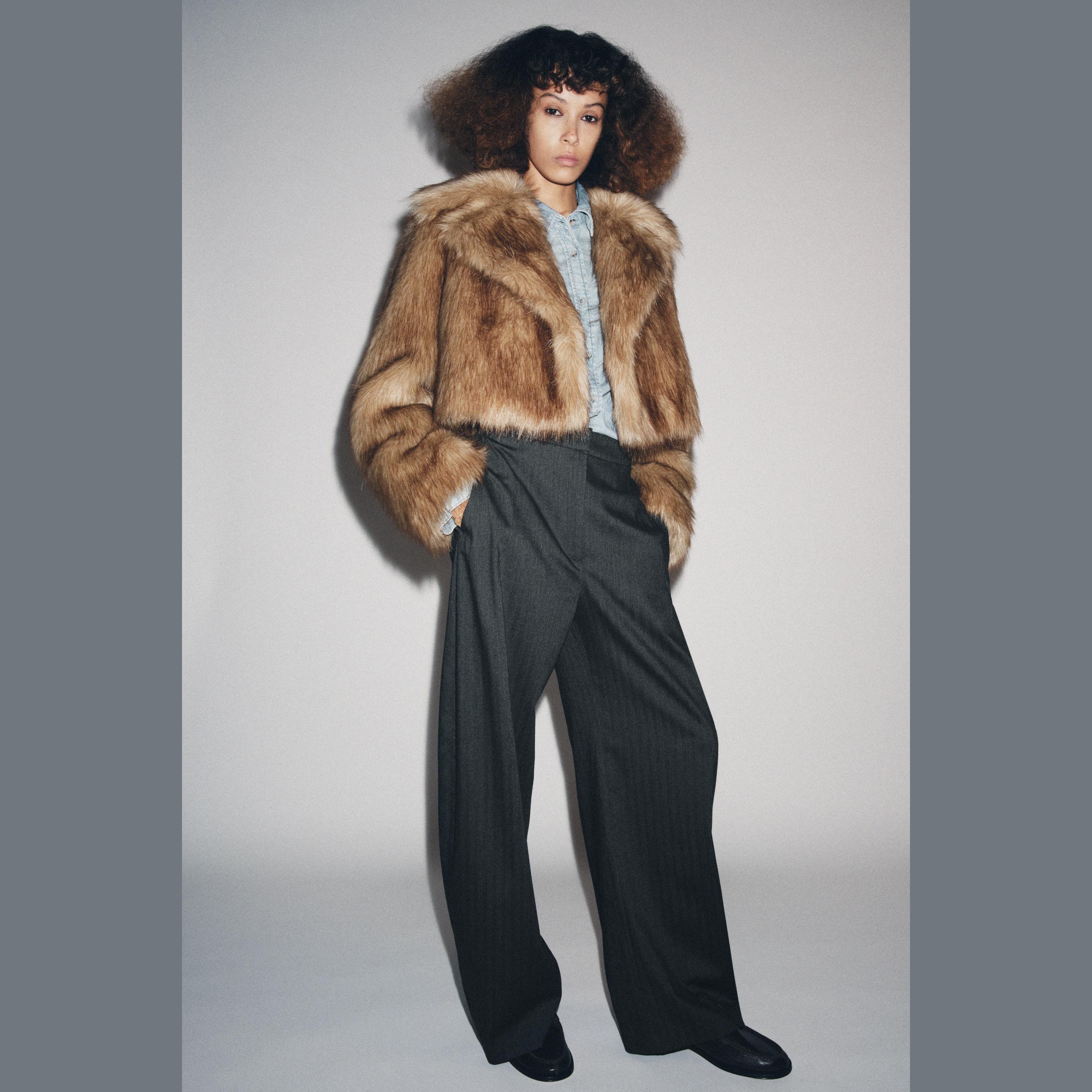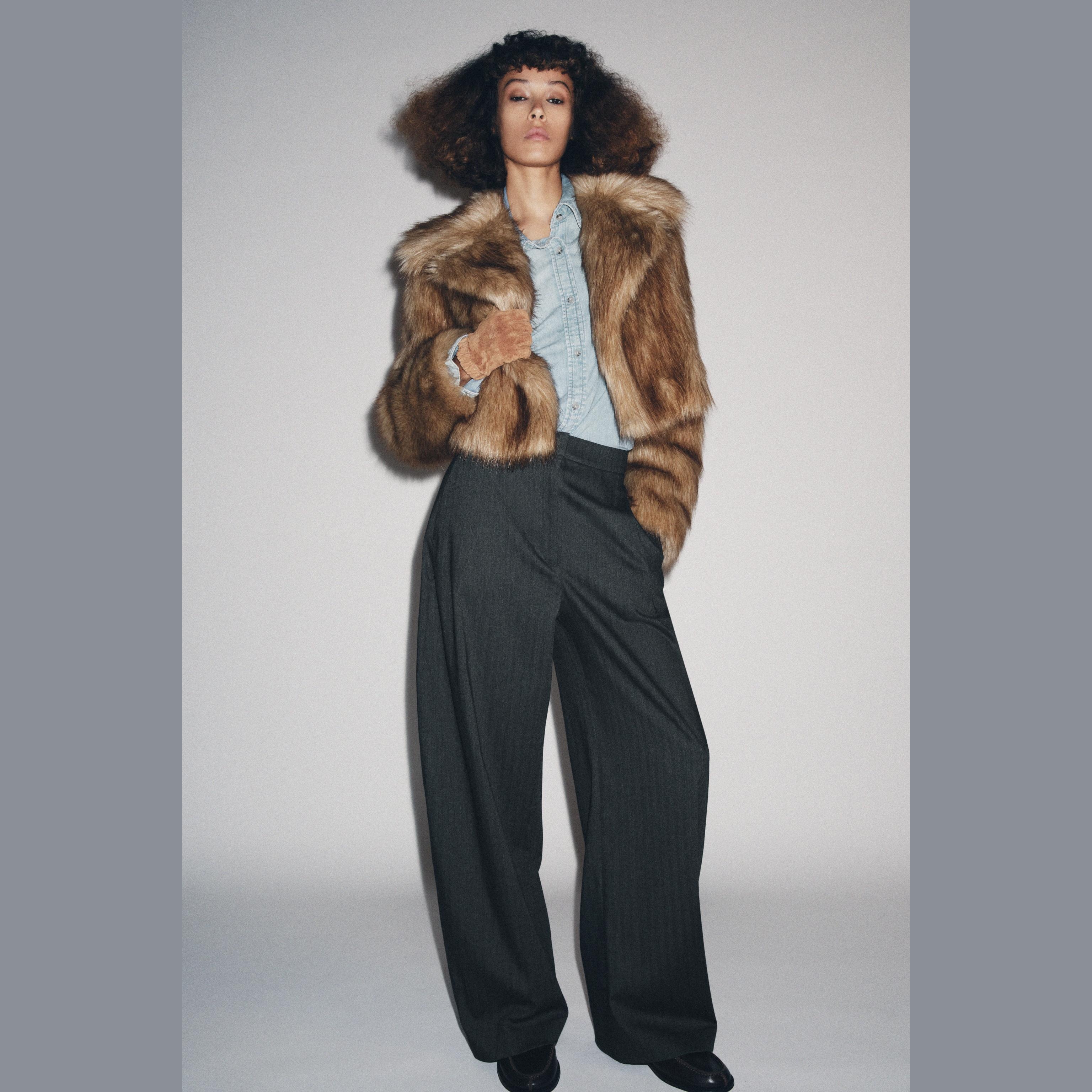 - التصميم: جاكيت قصير من الفرو الصناعي (Short Faux Fur Jacket – ZW Collection)