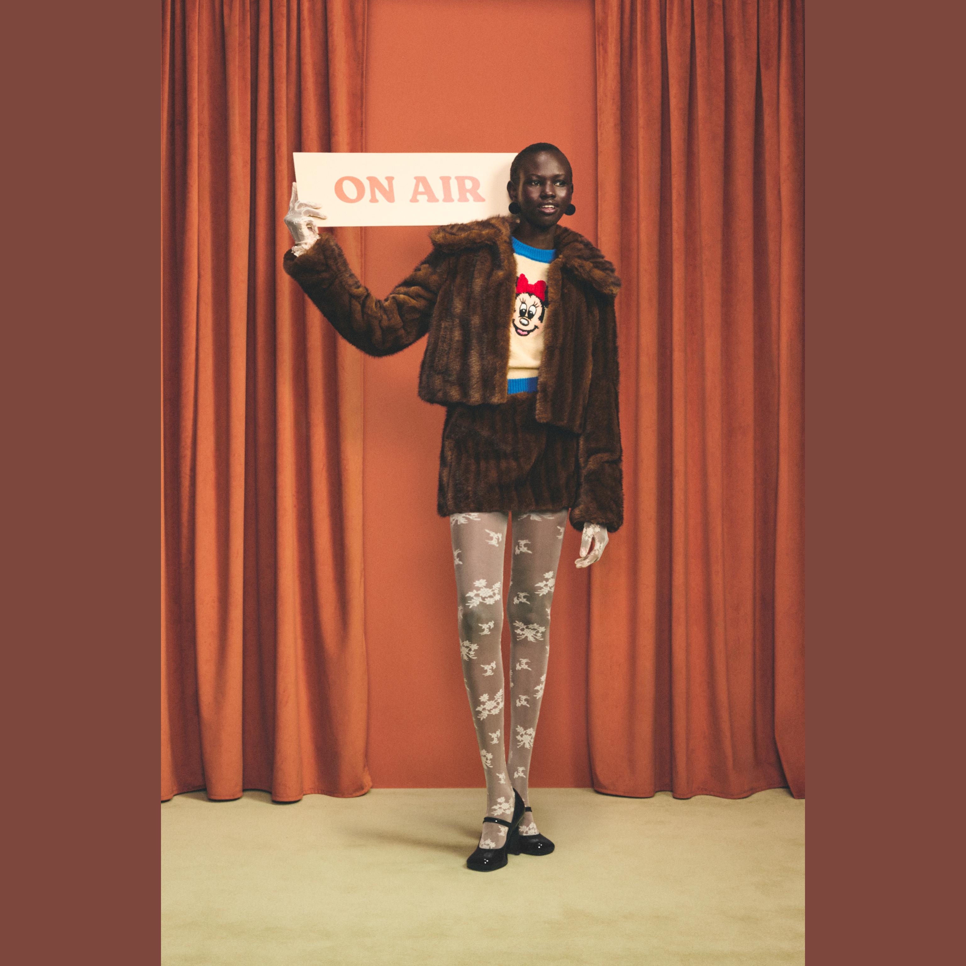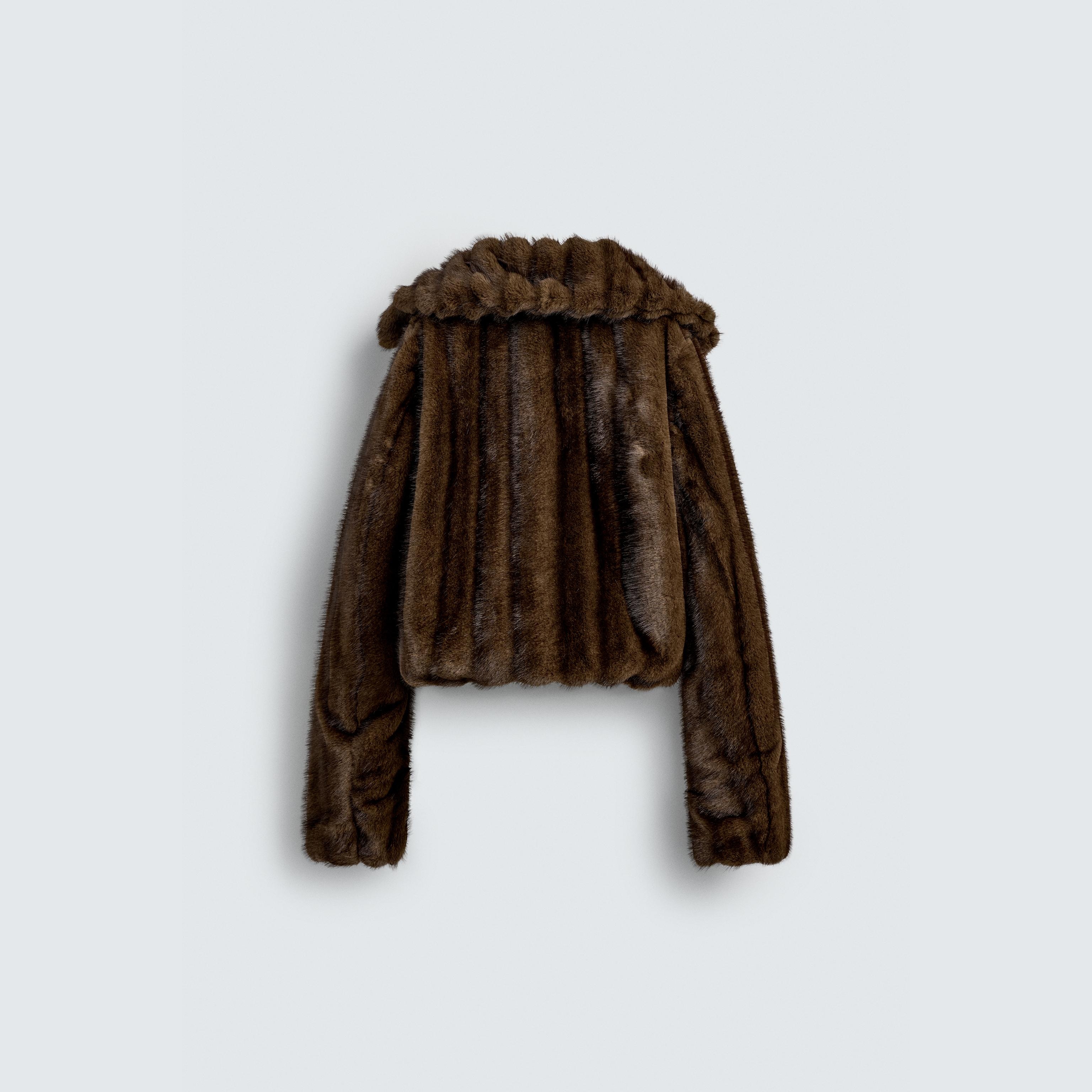 - التصميم: جاكيت قصير من الفرو الصناعي (Cropped Fit Faux Fur Jacket – Harry Lambert × Disney)