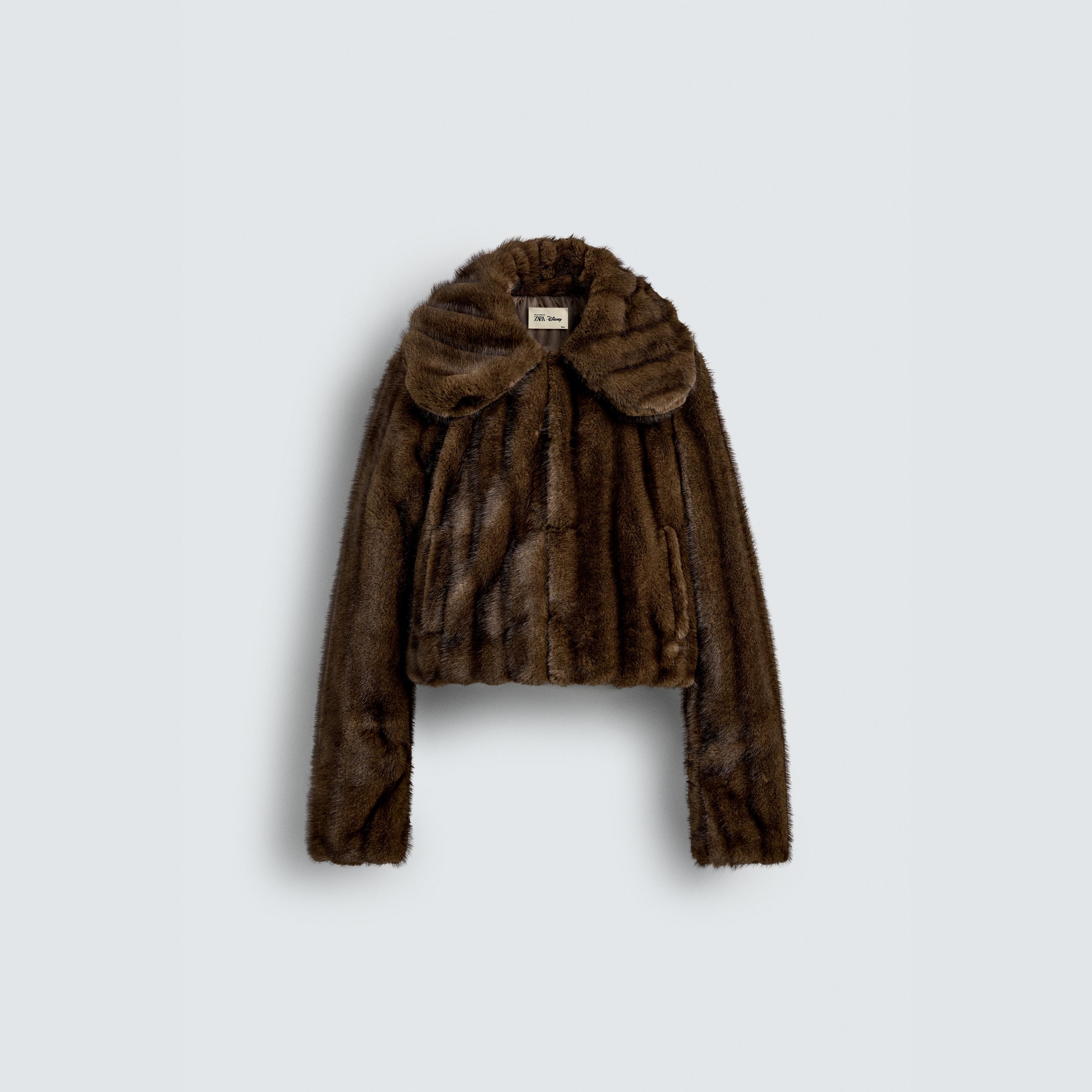 جاكيت قصير من الفرو الصناعي – تعاون Harry Lambert × Disney – لون طبيعي (بني) – Brown (Cropped Fit Faux Fur Jacket)
