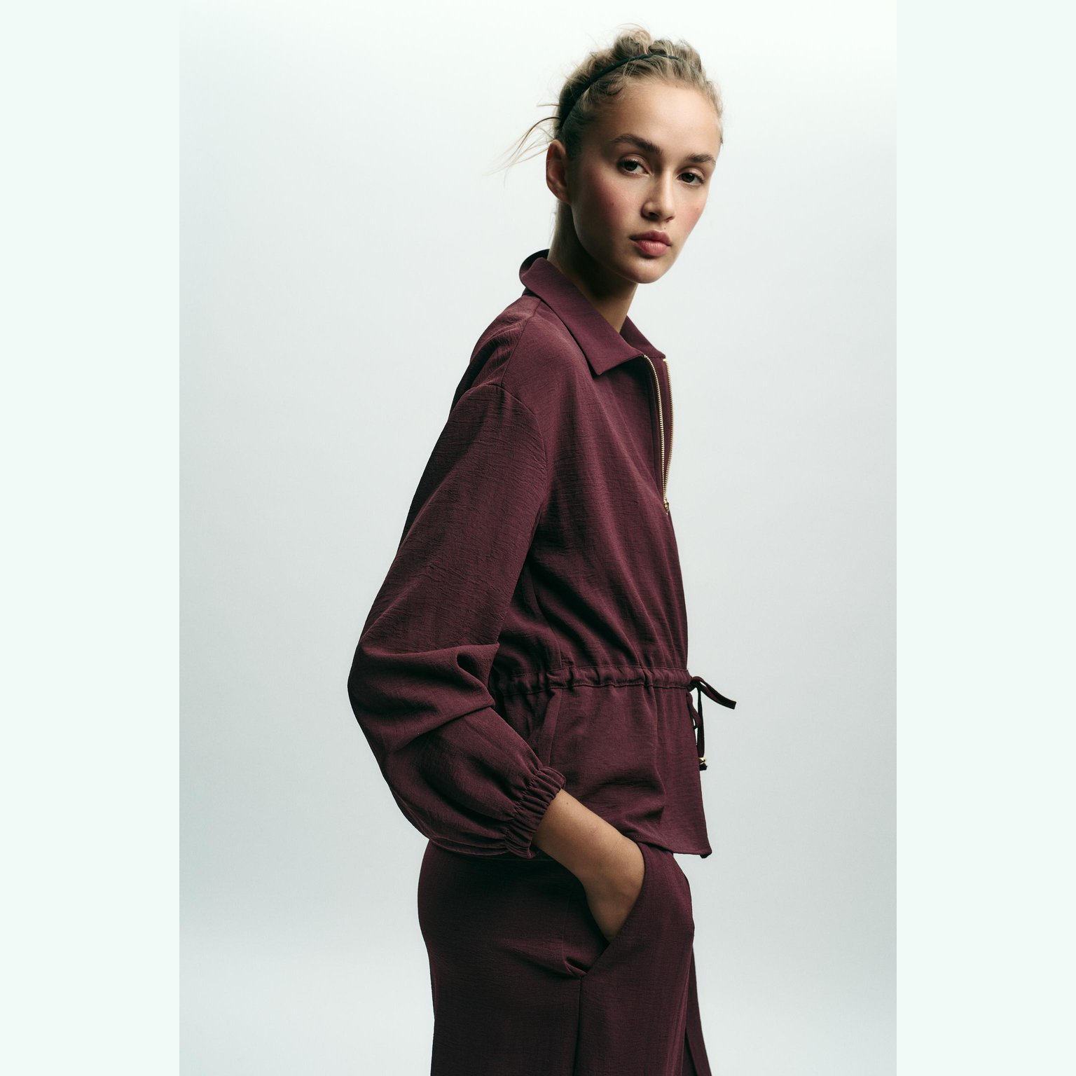جاكيت سفاري أنيق بلون برغندي طبيعي، مصنوع من خامة بوليستر تمنح مظهرًا عمليًا وخفيفًا، مع تصميم عصري يناسب الإطلالات اليومية. يتميز بياقة عريضة وأكمام طويلة منتهية بحواف مطاطية، مع خيوط شد عند الخصر لإبراز الشكل، وإغلاق أمامي بسحاب معدني. تصميم عملي مثالي للمواسم الانتقالية.