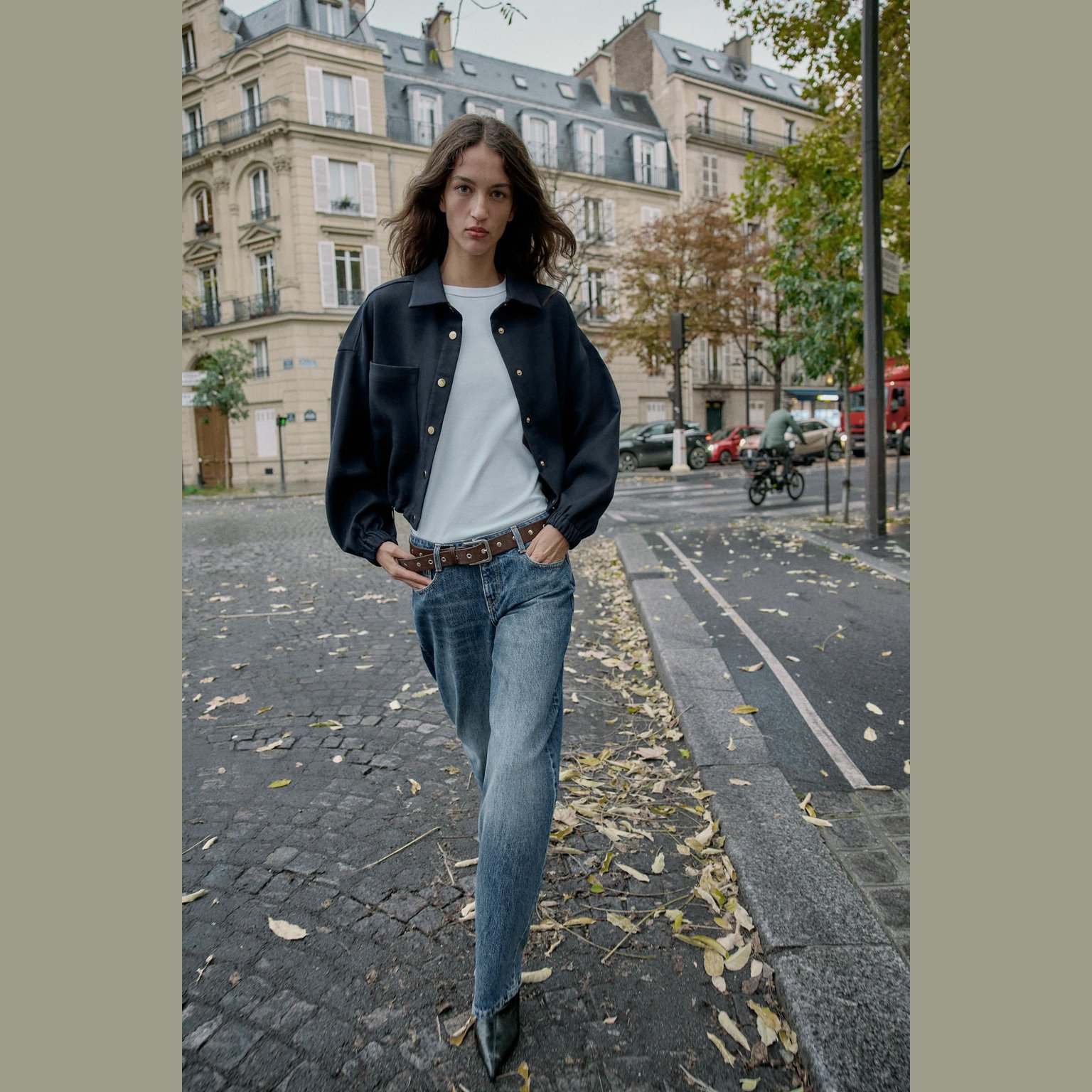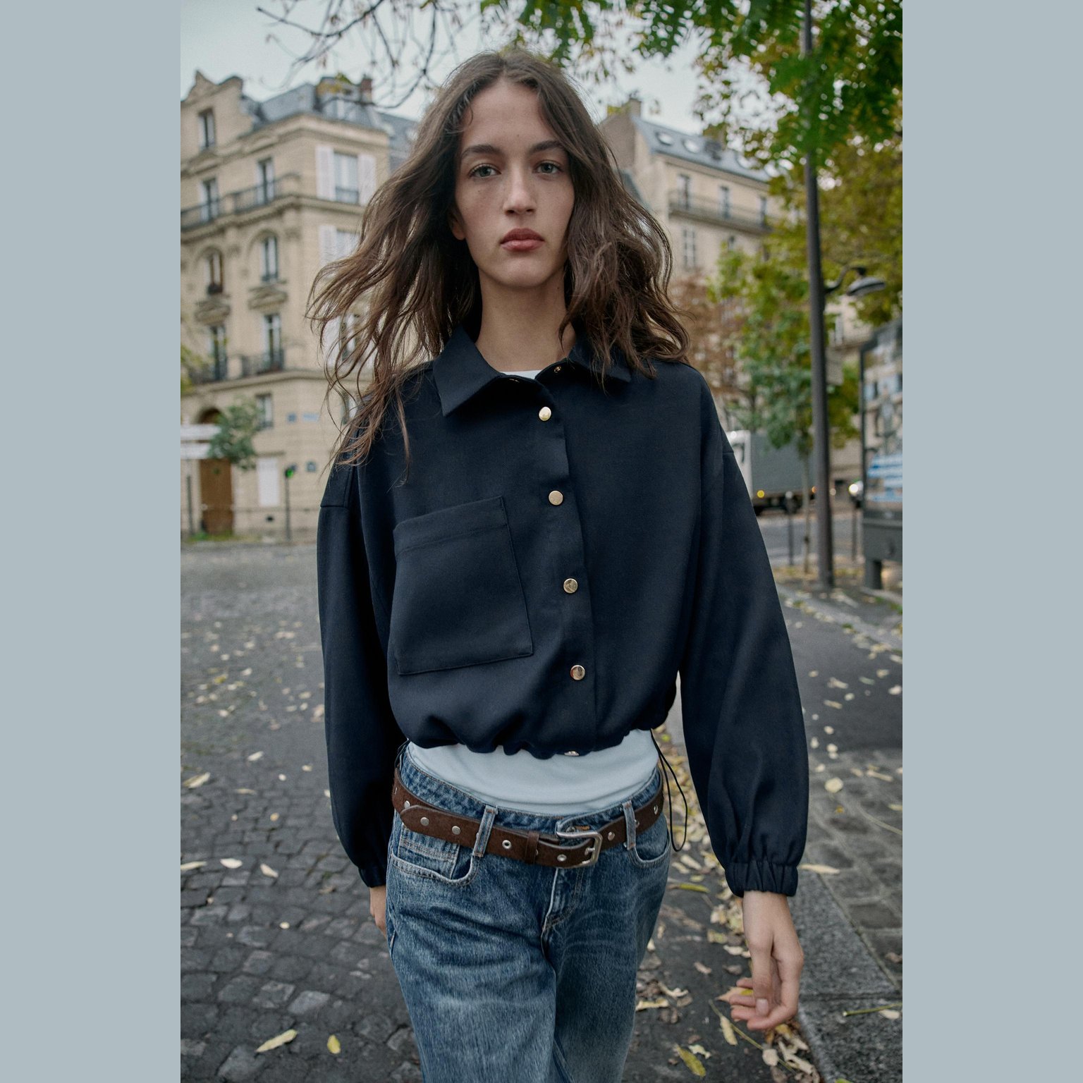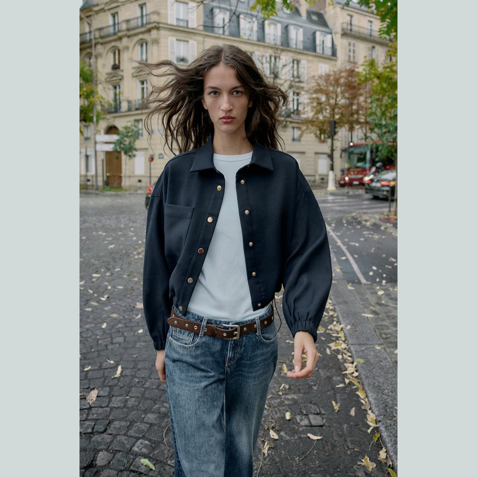 - التصميم: جاكيت بومبر قصير بستايل بالون (Short Balloon Bomber Jacket)