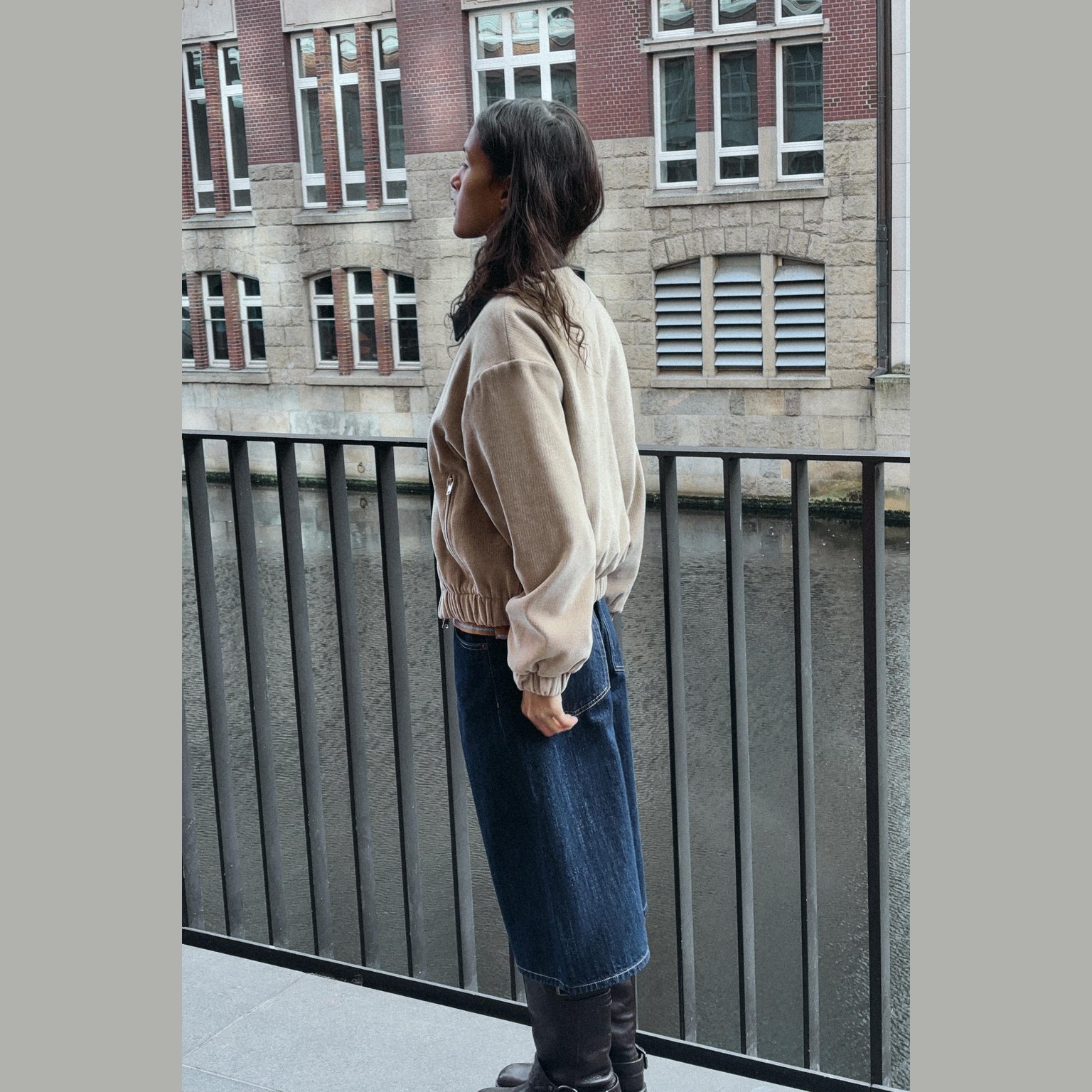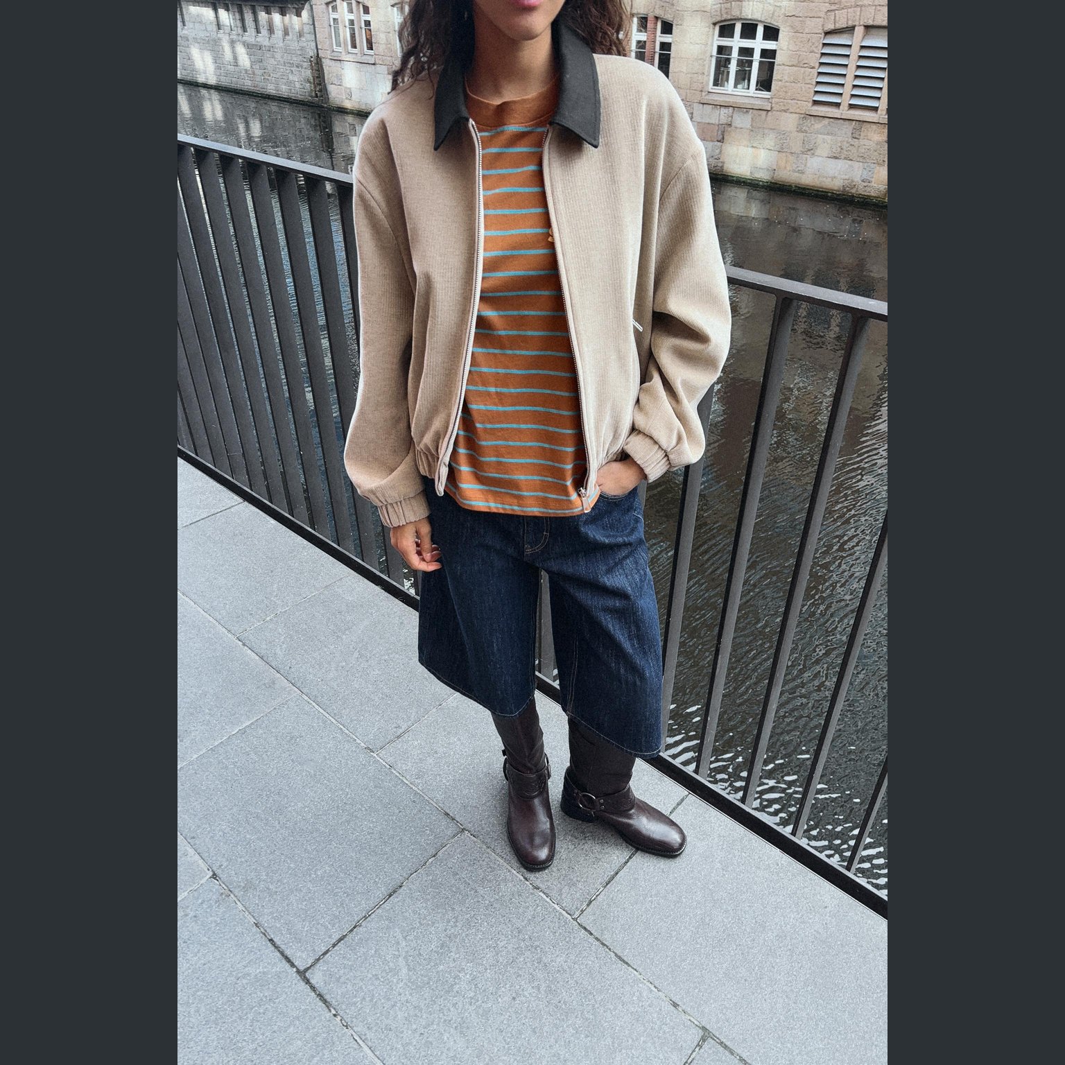جاكيت أنيق بلون بيج طبيعي، مصنوع من خامة كوردروي ناعمة تمنح مظهرًا عصريًا وملمسًا عمليًا، مع بطانة داخلية من البوليستر لراحة إضافية. يتميز بياقة متباينة بلون مختلف تضيف لمسة تصميمية، وأكمام طويلة منتهية بحواف مطاطية، مع جيوب أمامية بسحّاب، وحاشية مطاطية، وإغلاق أمامي بسحاب معدني. تصميم عملي وعصري مثالي للإطلالات اليومية والموسمية.