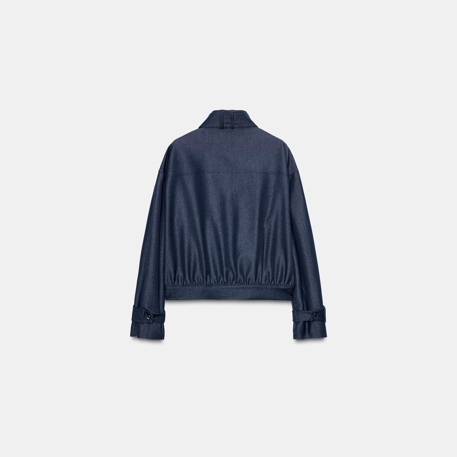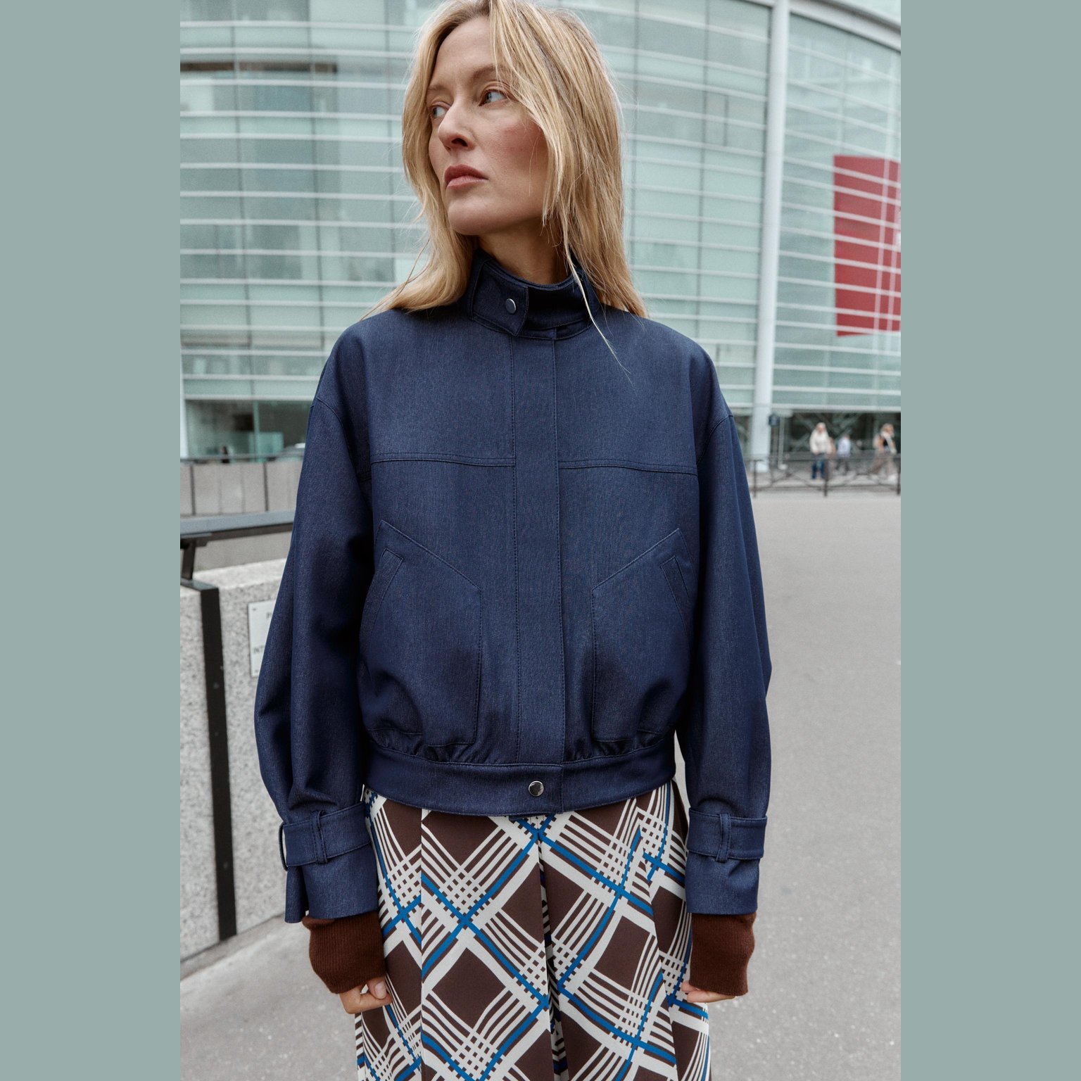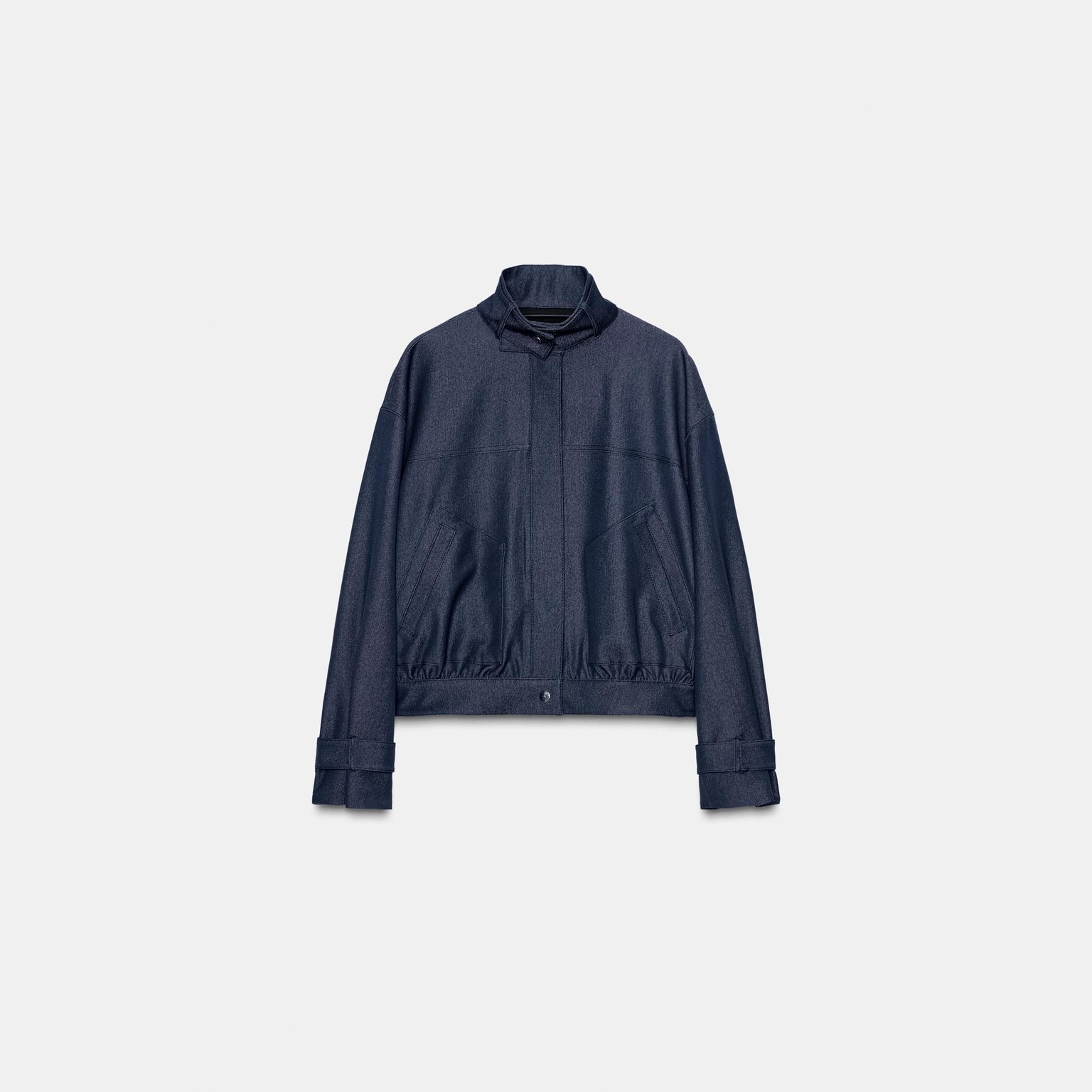 جاكيت بومبر بياقة عالية – لون طبيعي (أزرق نيلي) – Indigo (High-Neck Bomber Jacket)