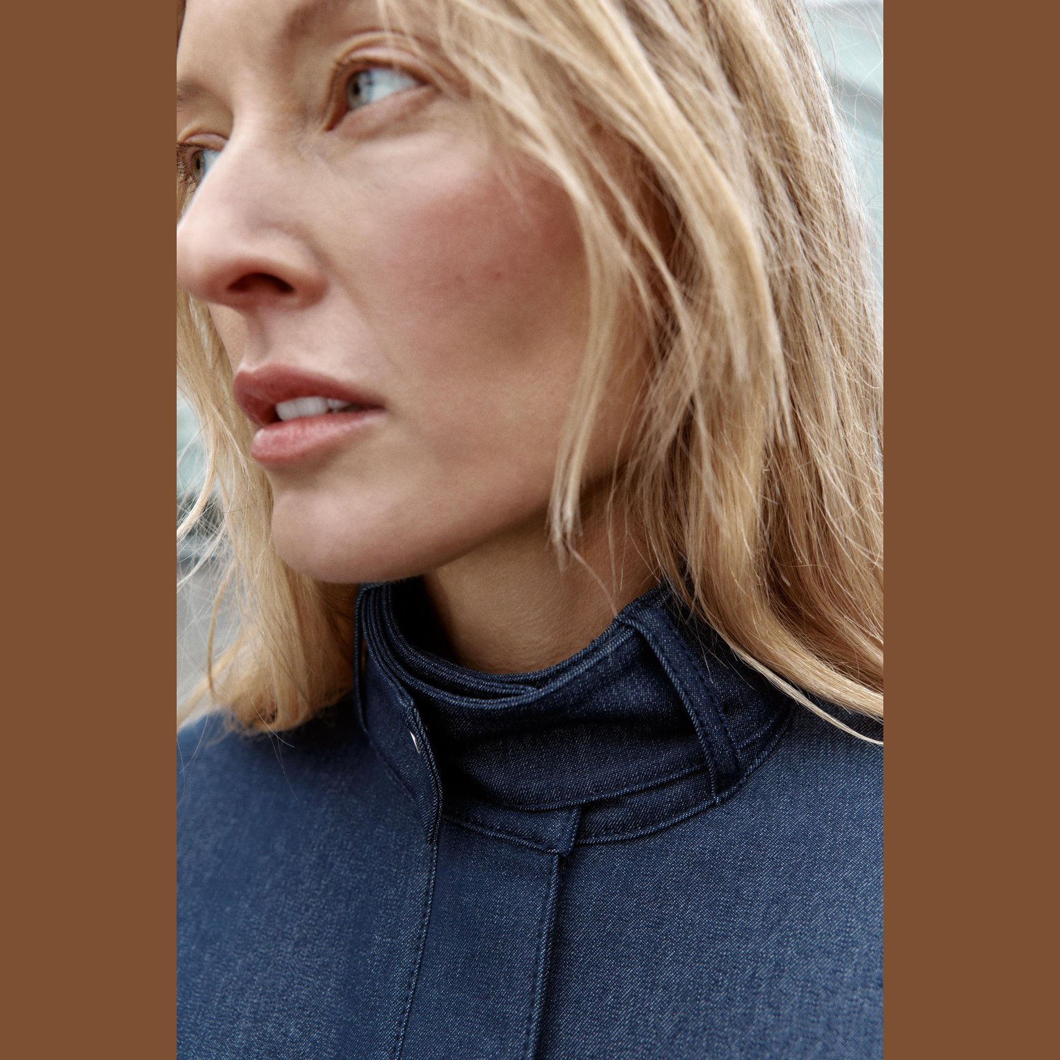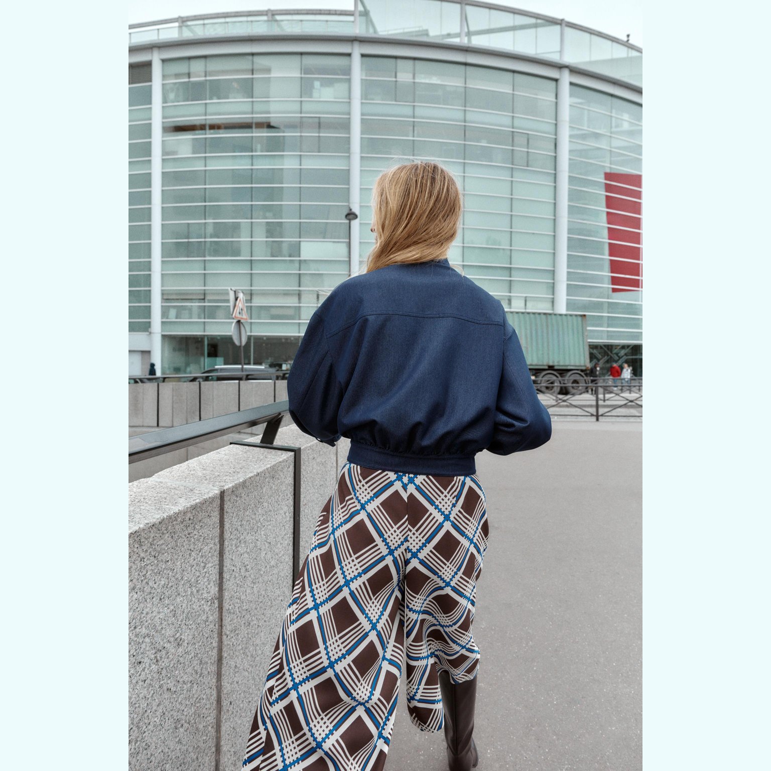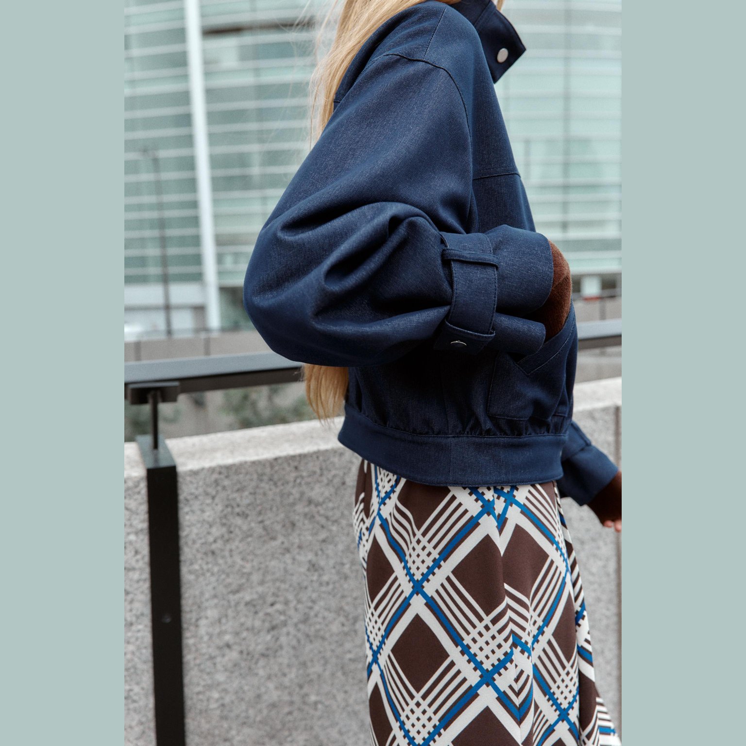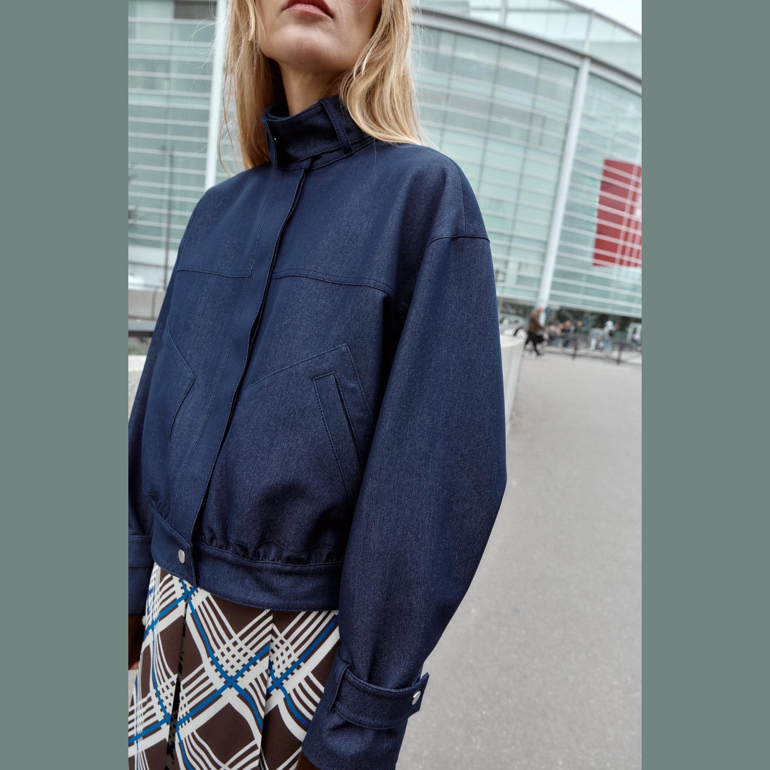 جاكيت بومبر بياقة عالية – لون طبيعي (أزرق نيلي) – Indigo (High-Neck Bomber Jacket)
