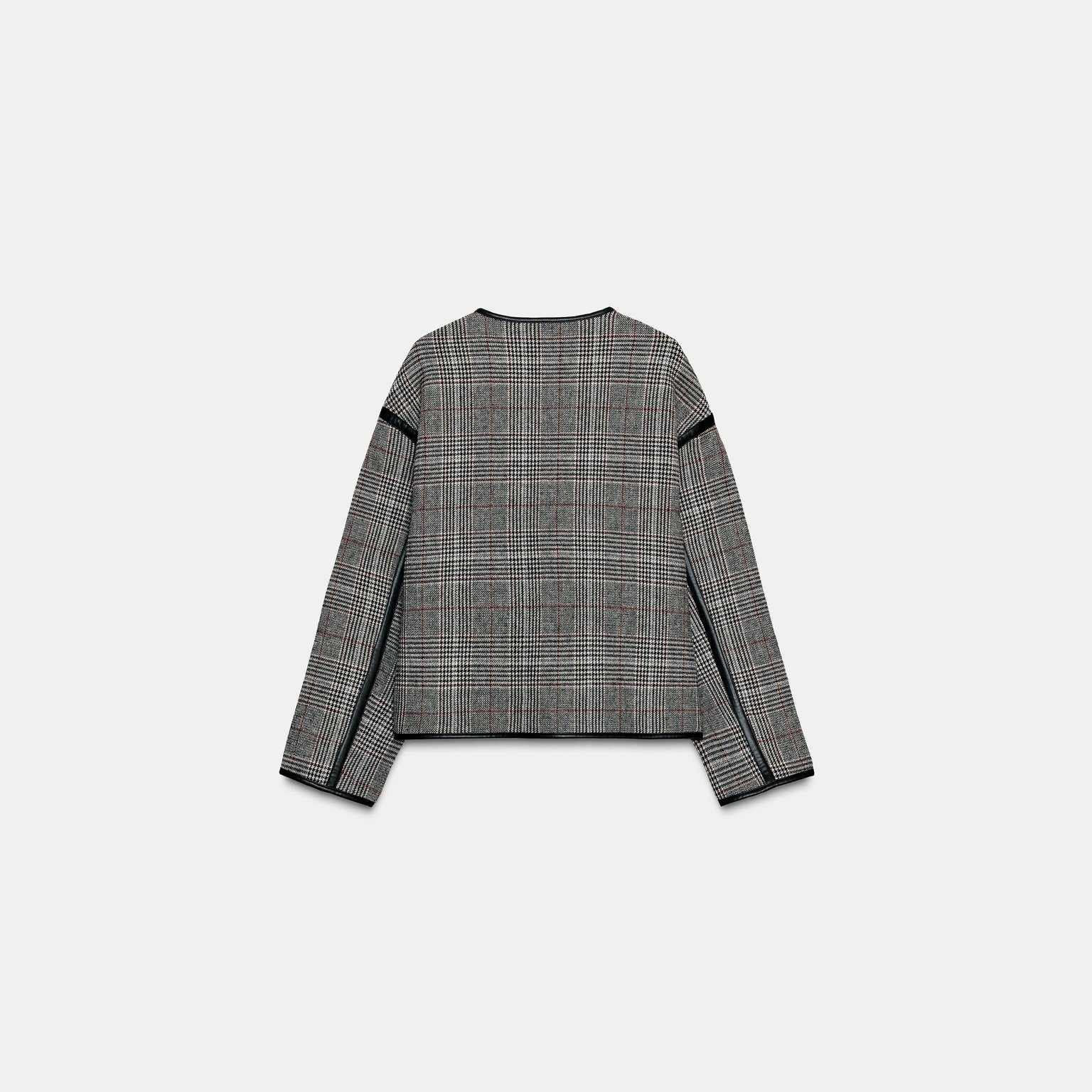 - التصميم: جاكيت قابل للعكس بتفاصيل جلد صناعي (Reversible Jacket with Faux Leather Trims)