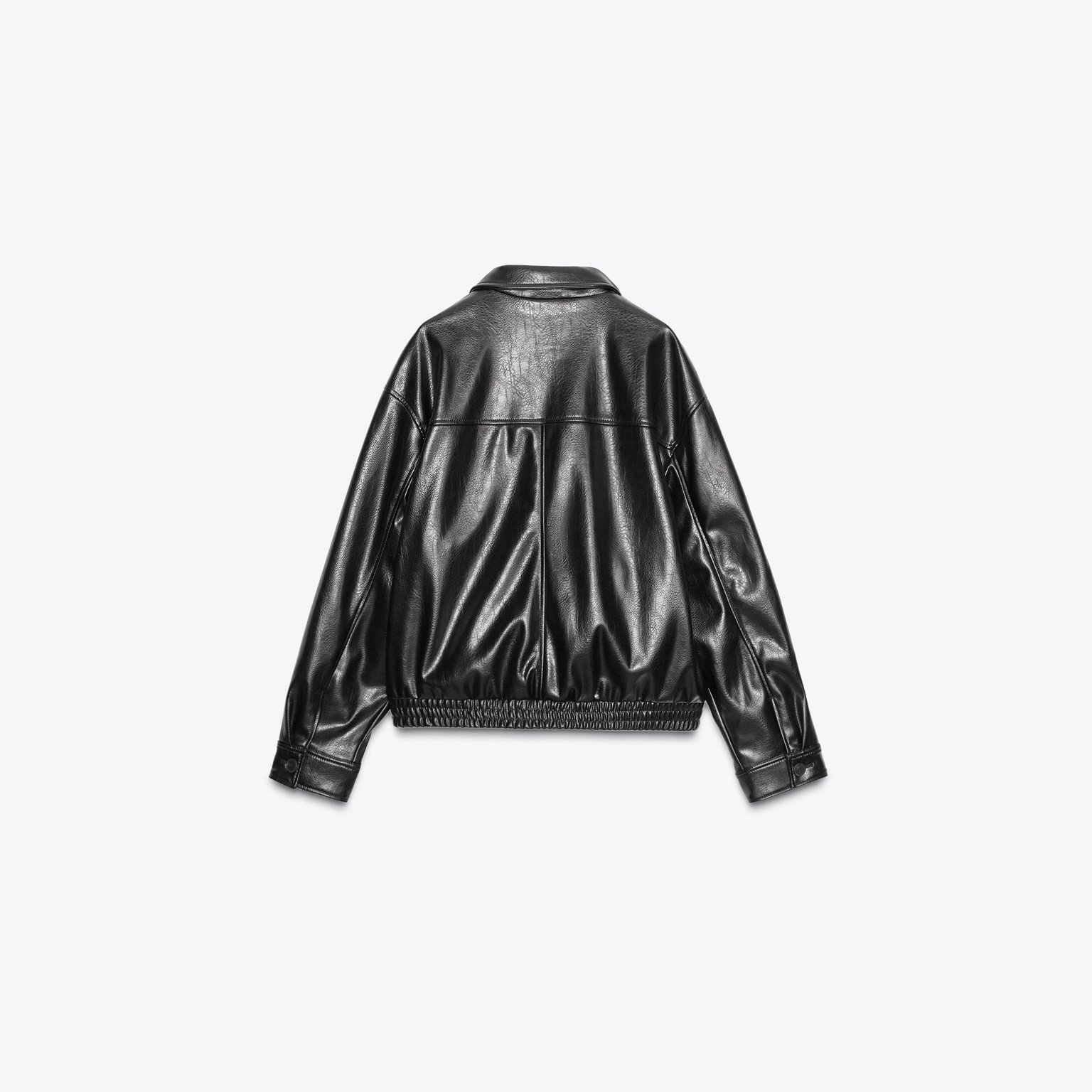 جاكيت بومبر جلد صناعي – لون طبيعي (أسود) – Black (Faux Leather Bomber Jacket)