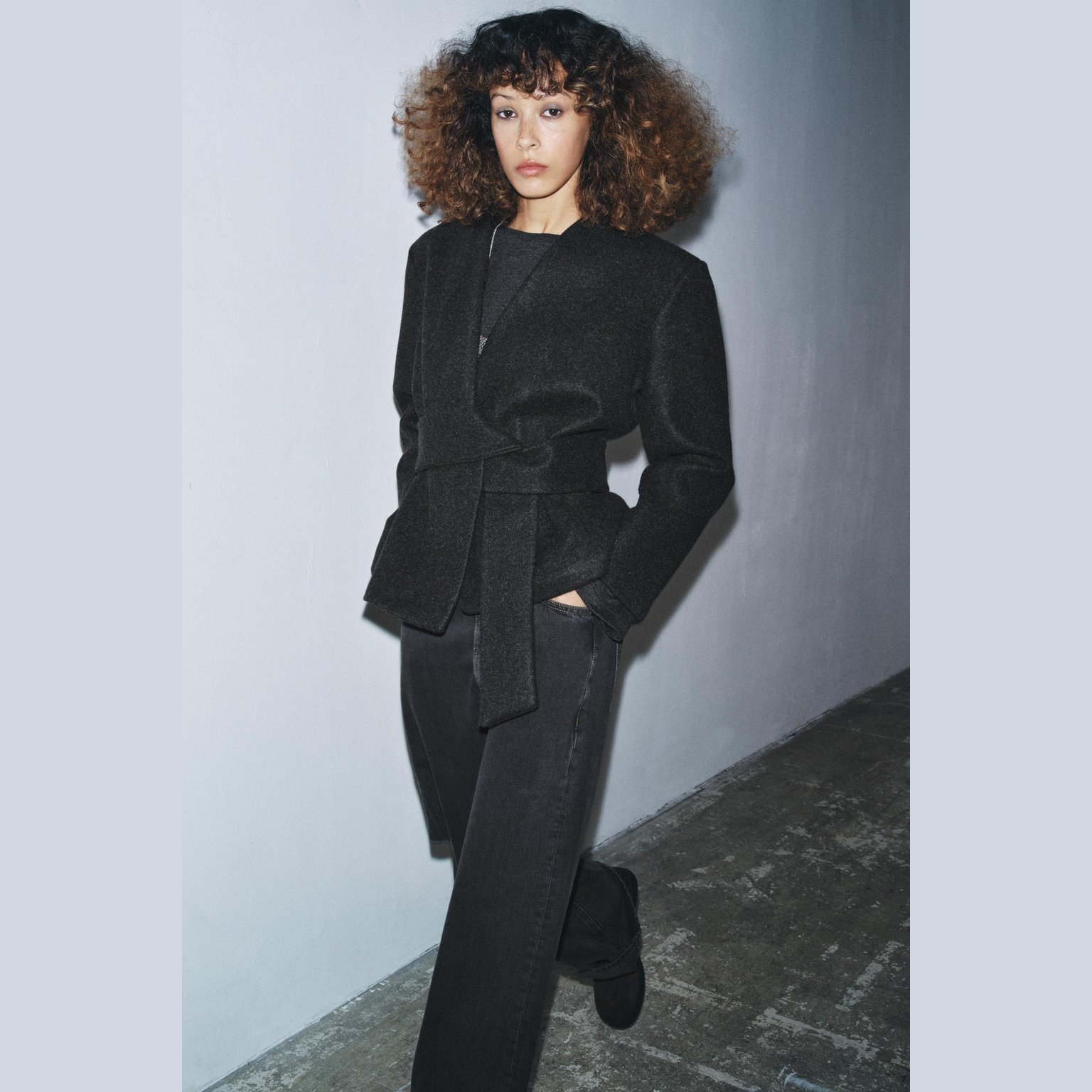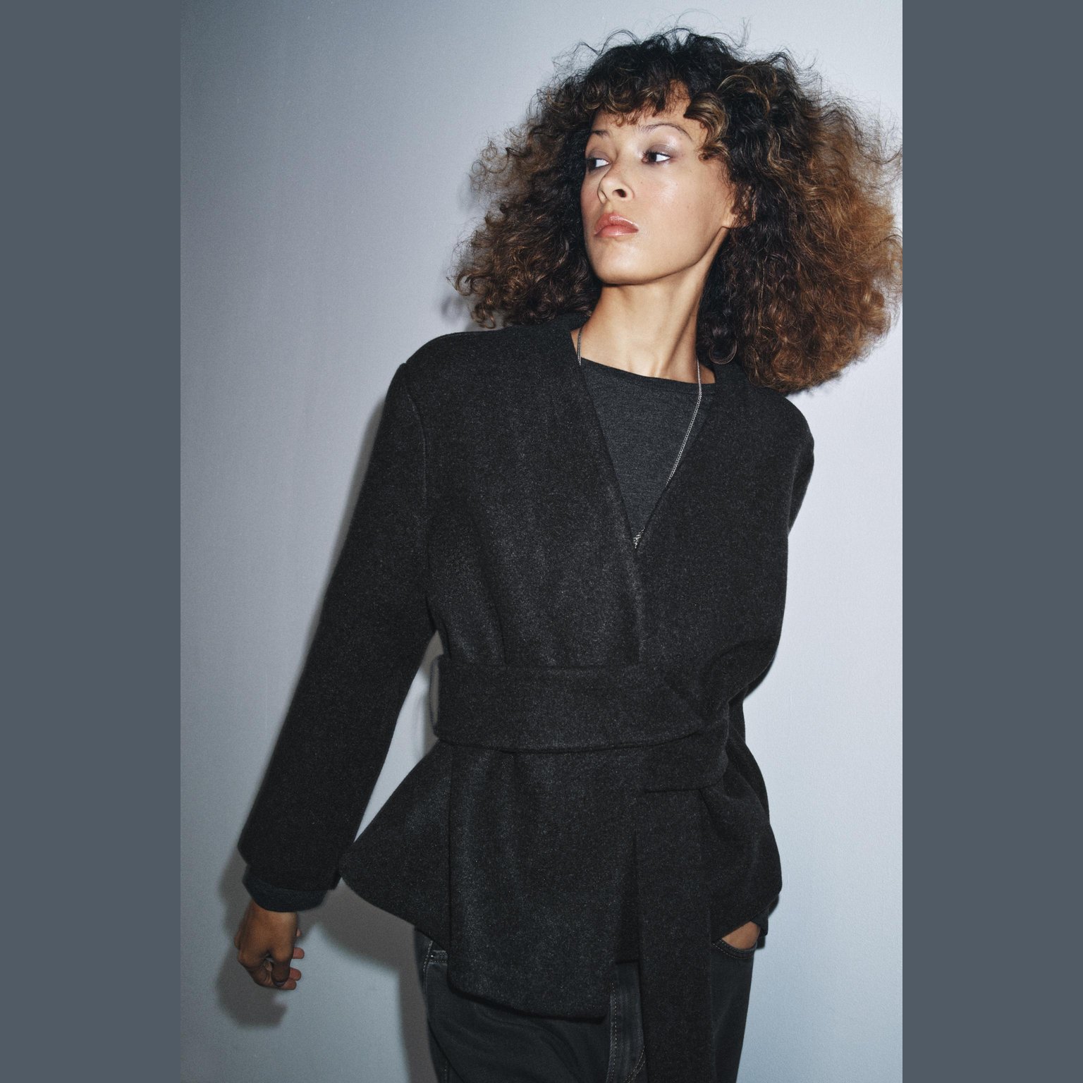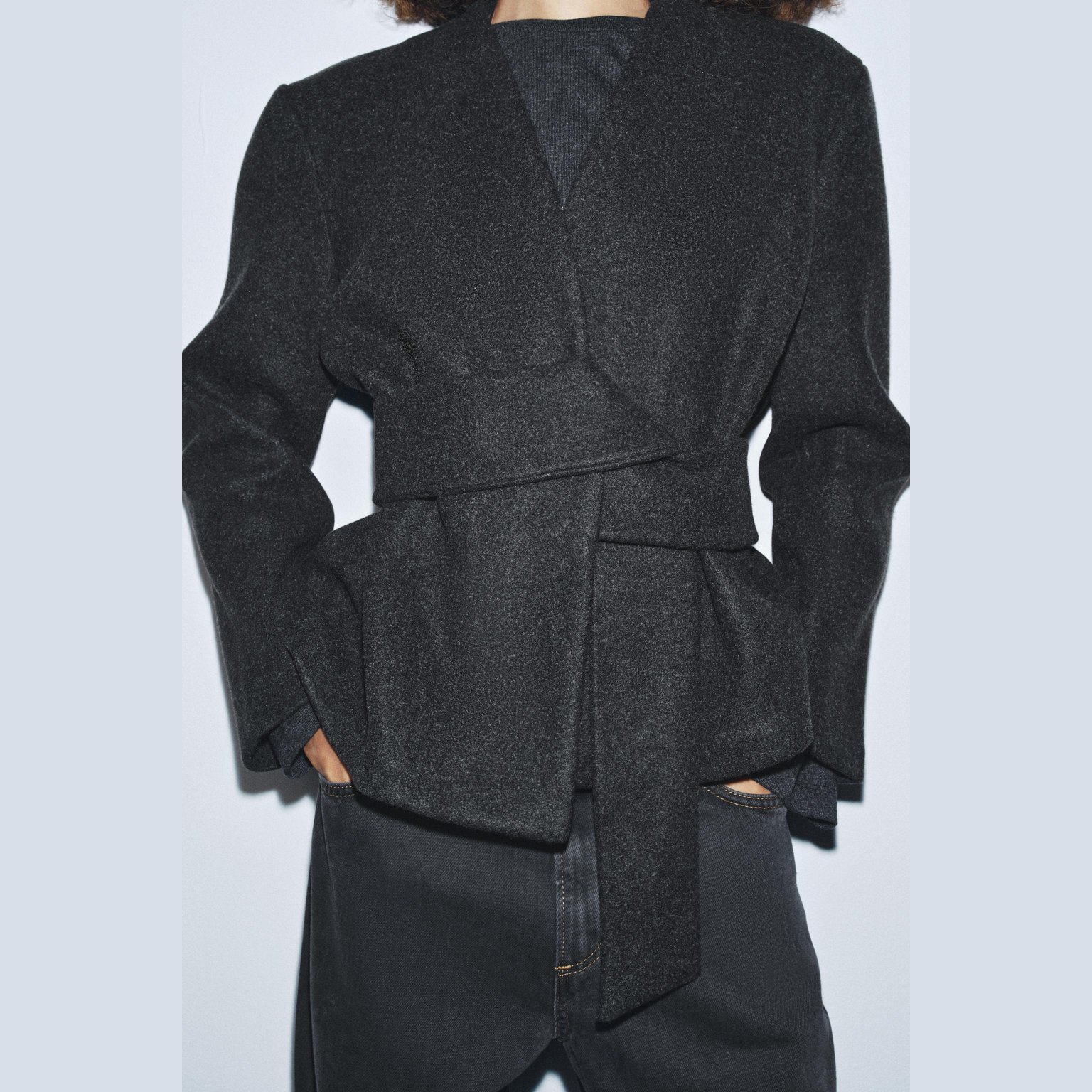- التصميم: جاكيت ناعم بحزام (Soft-Belted Jacket)