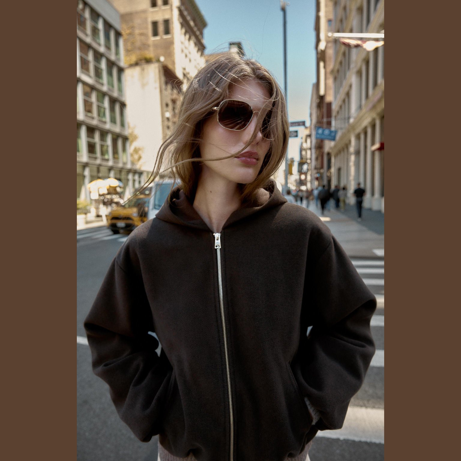 جاكيت عملي أنيق بلون بني طبيعي، مصنوع من خامة ممزوجة تمنح مظهرًا عصريًا وملمسًا عمليًا، مع بطانة داخلية من البوليستر لراحة إضافية. يتميز بغطاء رأس عملي، وأكمام طويلة منتهية بحواف مطاطية، مع جيوب أمامية مزدوجة، وحاشية مطاطية قابلة للتعديل، وإغلاق أمامي بسحاب معدني. تصميم مثالي للإطلالات اليومية والموسمية.