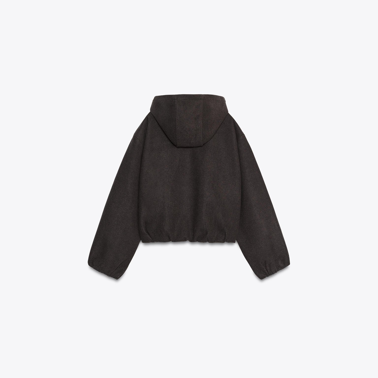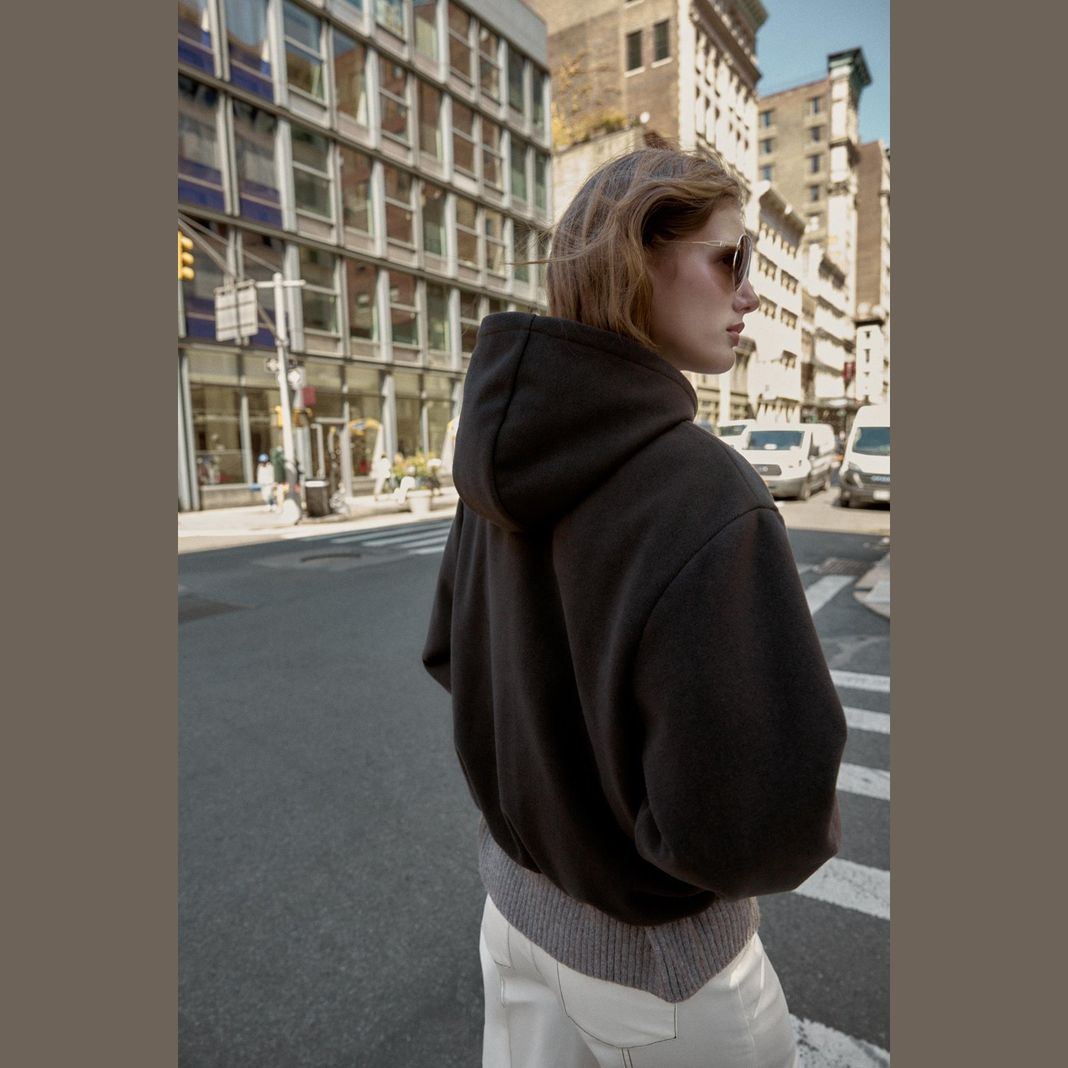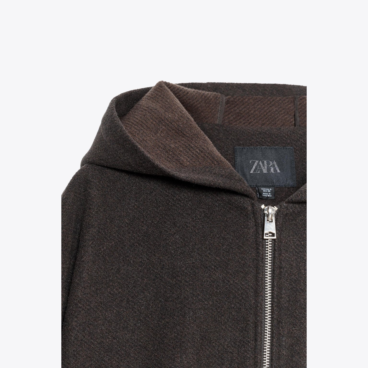 جاكيت بغطاء رأس بحاشية مطاطية – لون طبيعي (بني) – Brown (Hooded Jacket with Elastic Hem)