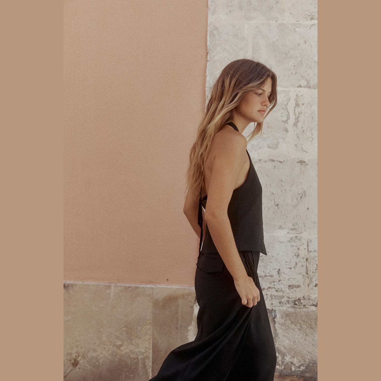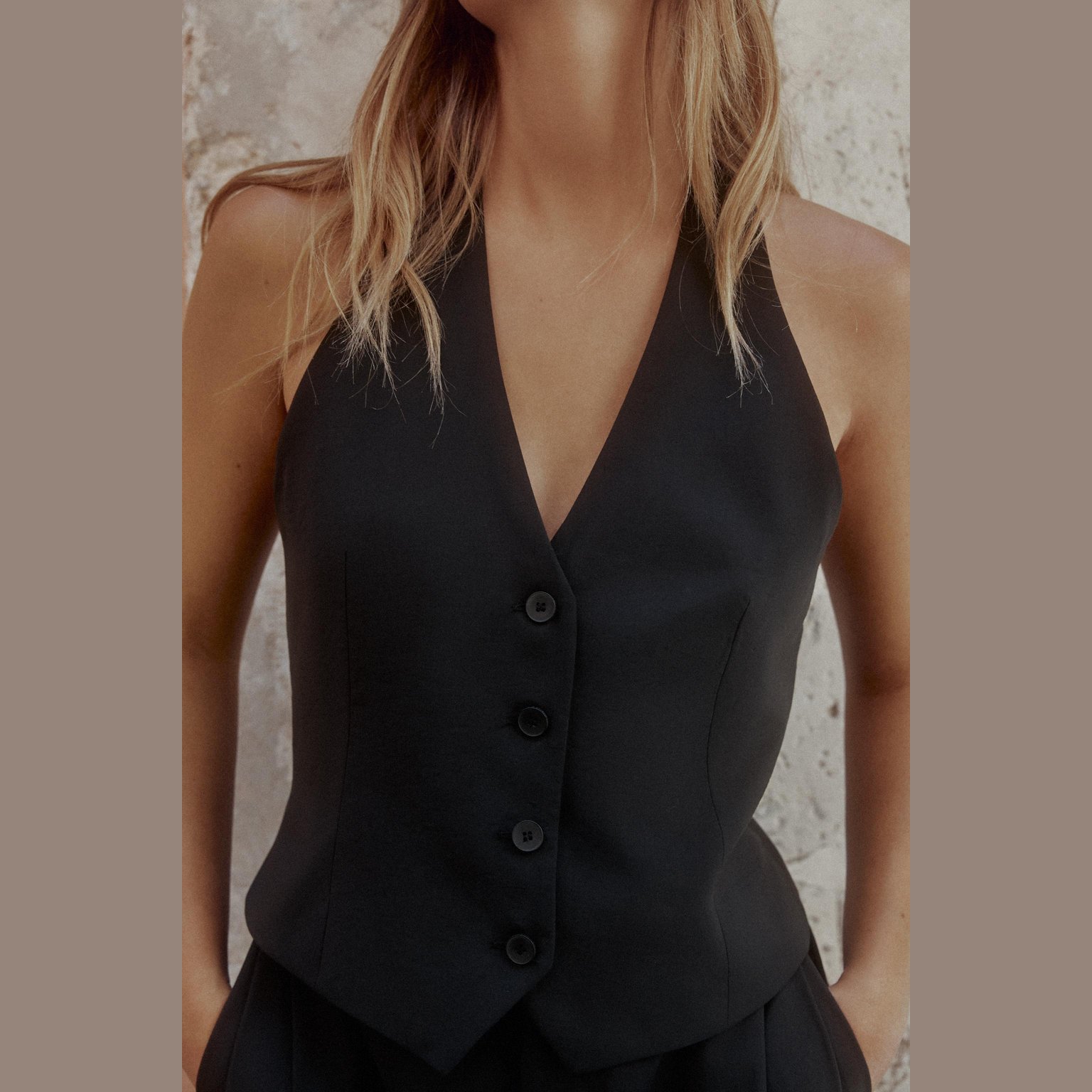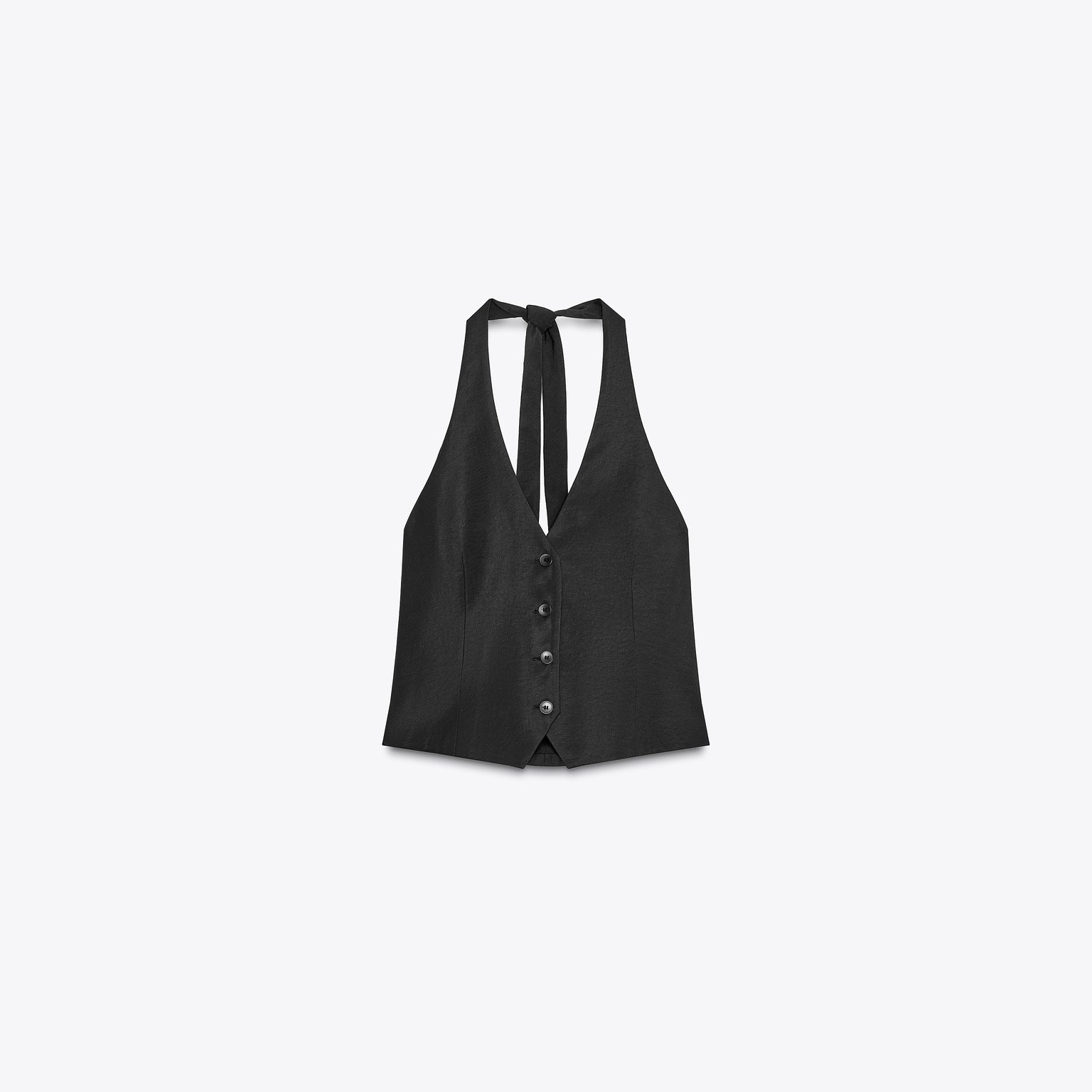 توب فيست هالتر بخيوط ربط – لون طبيعي (أسود) – Black (Halter Tie Waistcoat Top)