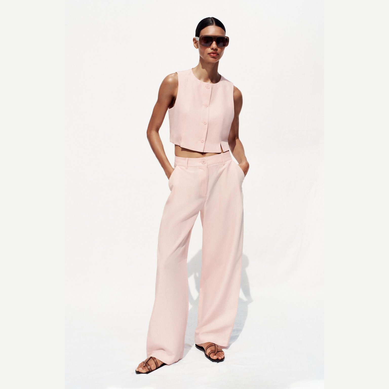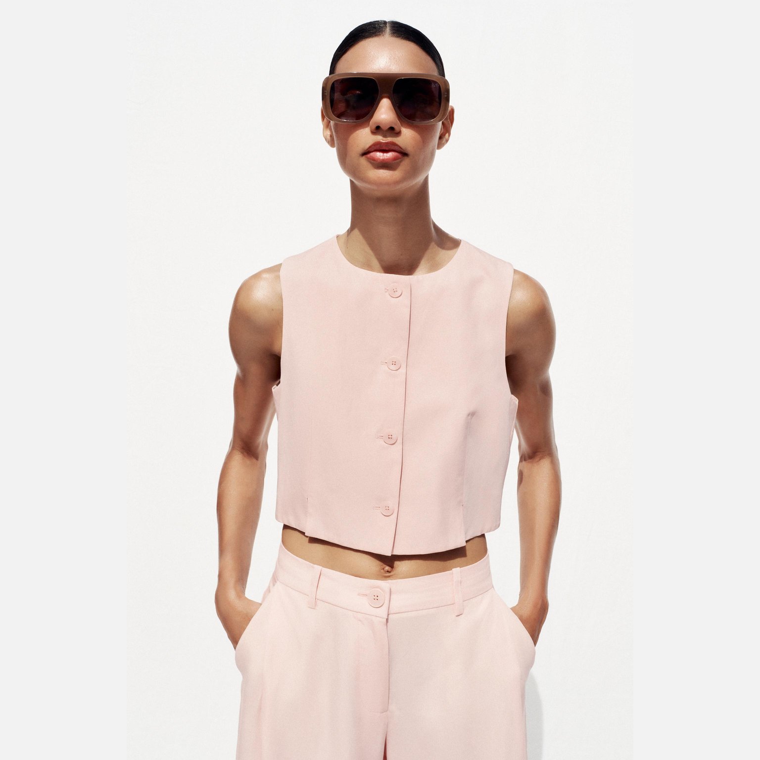 فيست أنيق بلون زهري طبيعي، مصنوع من خامة ممزوجة تمنح مظهرًا عصريًا وملمسًا عمليًا، مع بطانة داخلية من البوليستر والقطن لراحة إضافية. يتميز برقبة مستديرة، تصميم بلا أكمام، وحاشية أمامية بفتحات، مع إغلاق أمامي بأزرار. تصميم مثالي للإطلالات الكاجوال الأنيقة أو التنسيقات الرسمية الخفيفة.