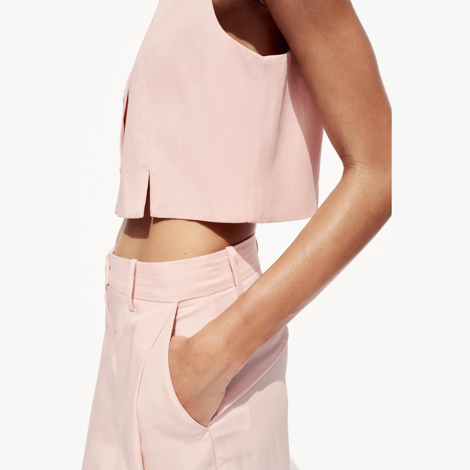 فيست قصير بفتحات أمامية – لون طبيعي (زهري) – Pink (Short Waistcoat with Vents)