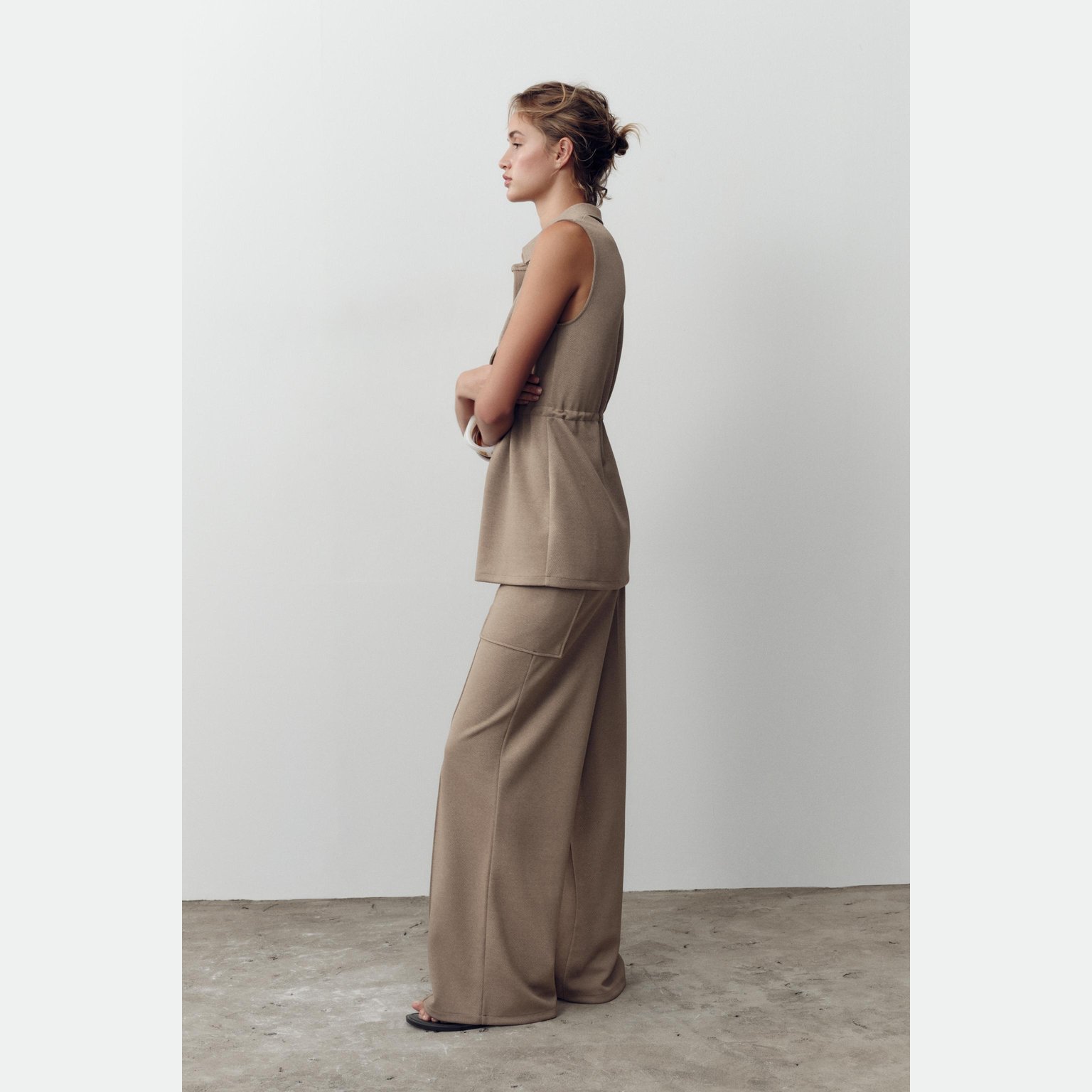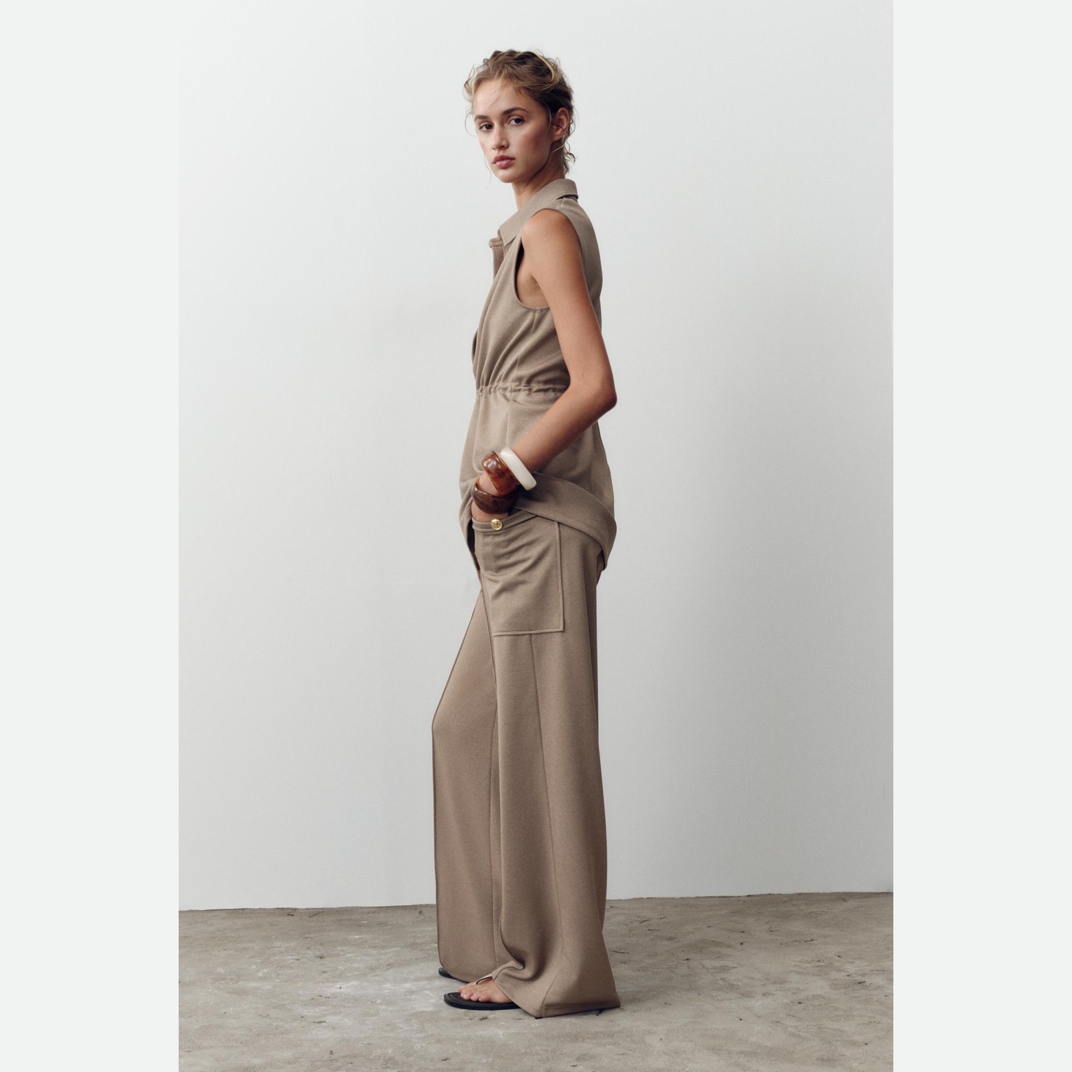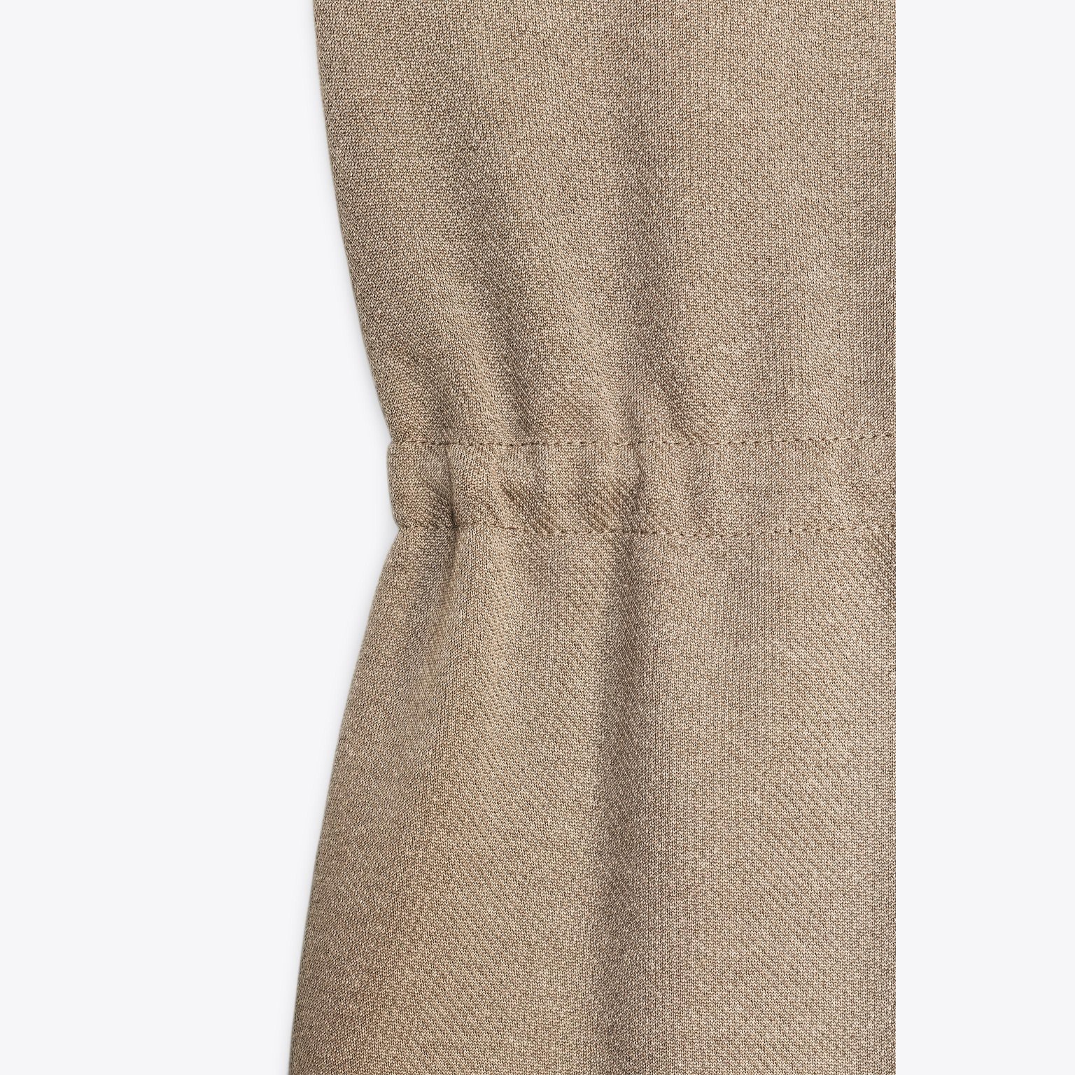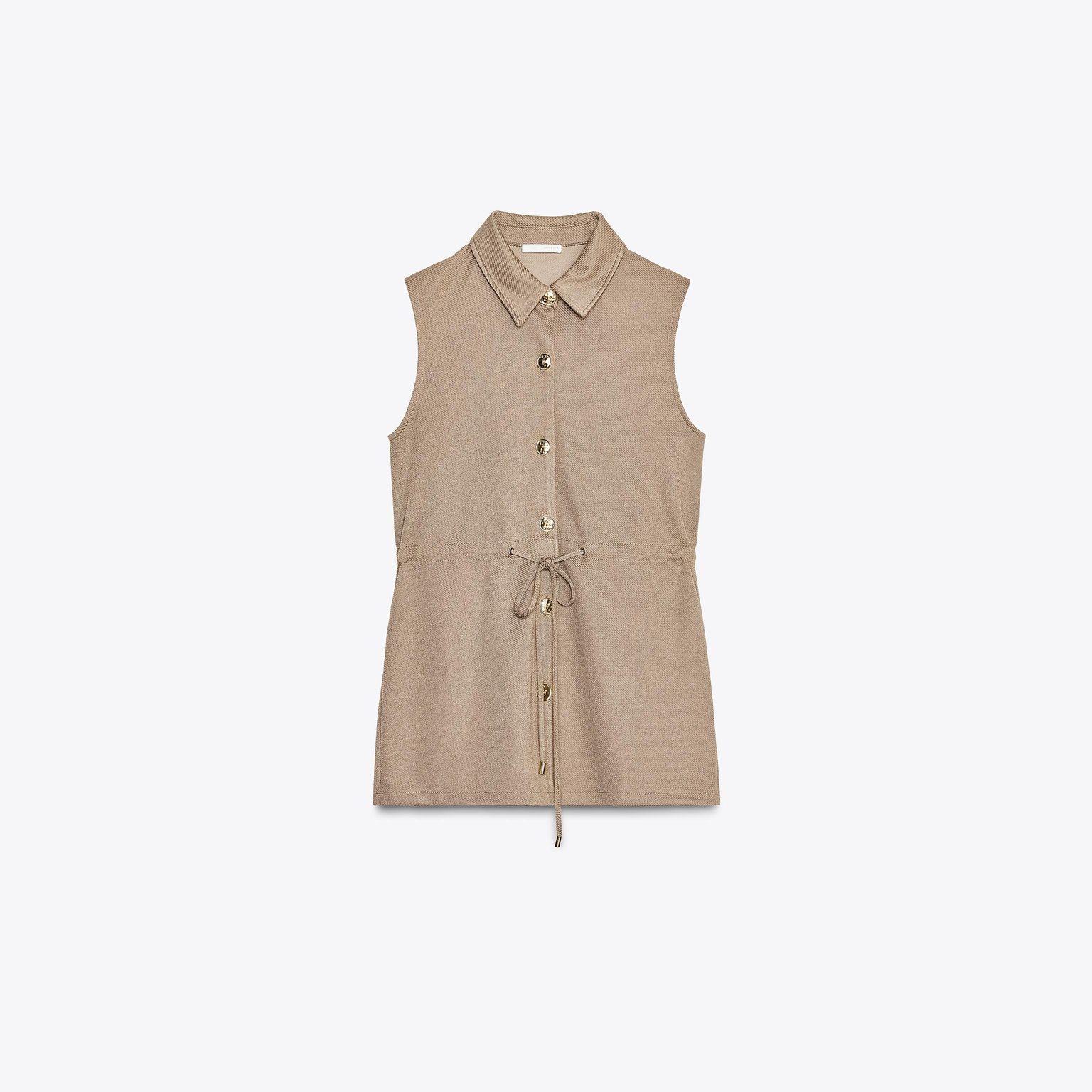 فيست أنيق بلون بيج طبيعي، مصنوع من خامة توييل ممزوجة تمنح مظهرًا عصريًا وملمسًا عمليًا. يتميز بياقة عريضة بلا أكمام، مع خصر قابل للتعديل بواسطة رباط داخلي، وإغلاق أمامي بأزرار معدنية بارزة. تصميم مثالي للإطلالات الكاجوال الأنيقة أو التنسيقات الرسمية الخفيفة.