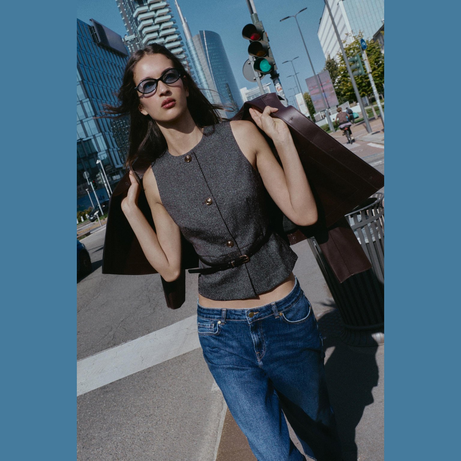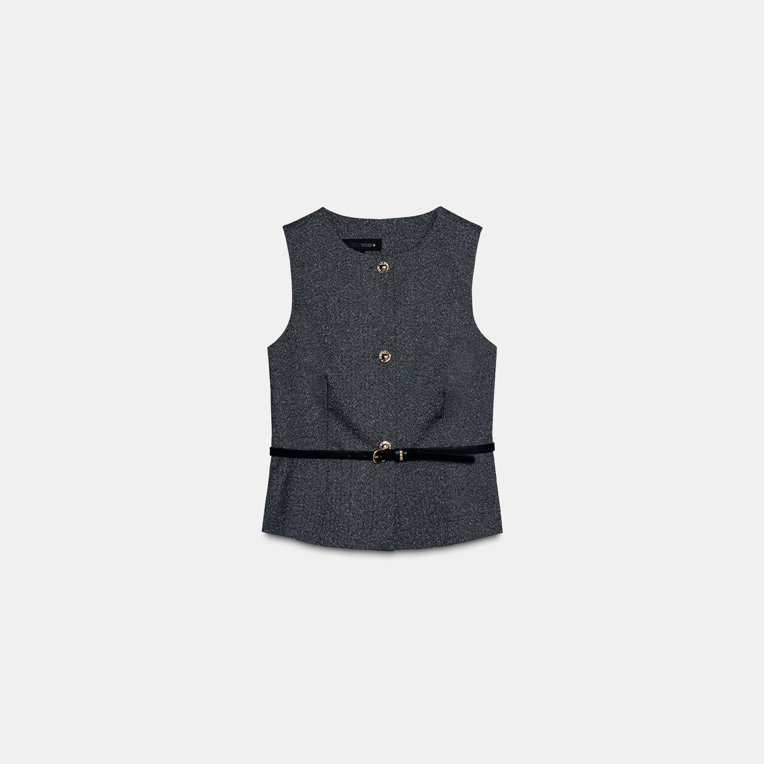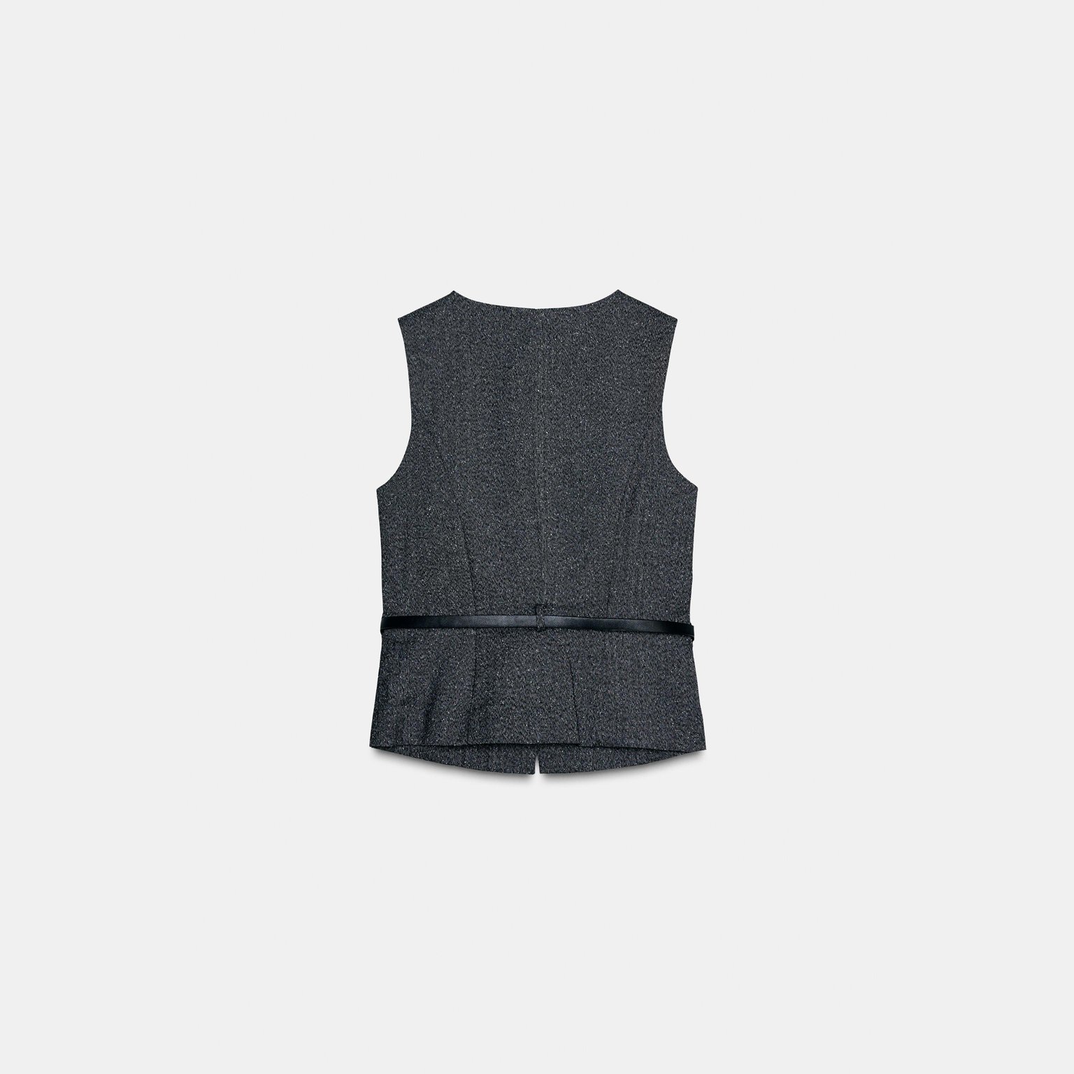فيست أنيق بلون رمادي مموج طبيعي، مصنوع من خامة ممزوجة تمنح مظهرًا عصريًا وملمسًا عمليًا، مع بطانة داخلية من البوليستر لراحة إضافية. يتميز برقبة مستديرة وتصميم بلا أكمام، مع حزام رفيع من نفس القماش لإبراز الخصر، وإغلاق أمامي بأزرار. تصميم مثالي للإطلالات الكاجوال الأنيقة أو التنسيقات الرسمية الخفيفة.