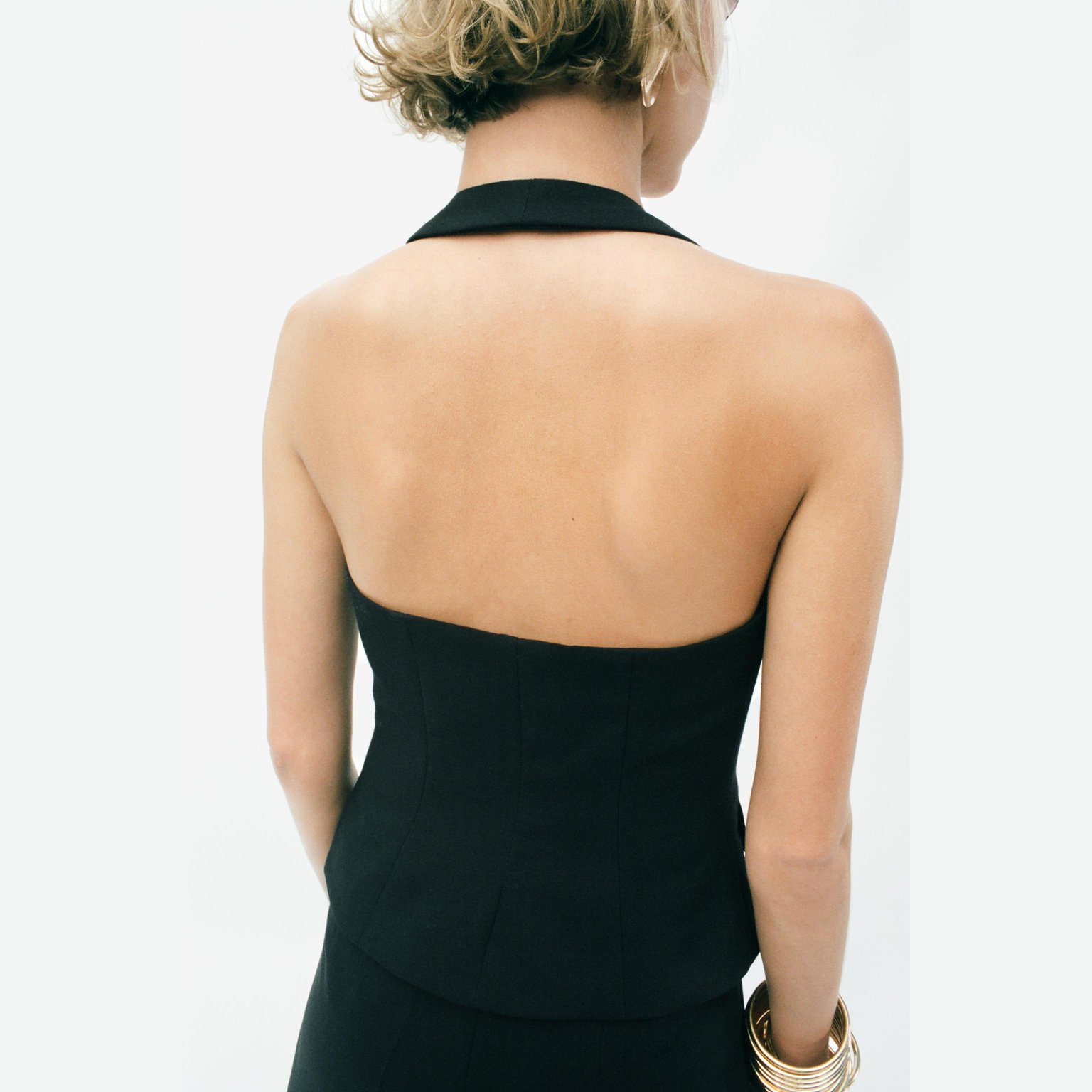 - تصميم هالتر بظهر مفتوح يمنح مظهرًا عصريًا جريئًا