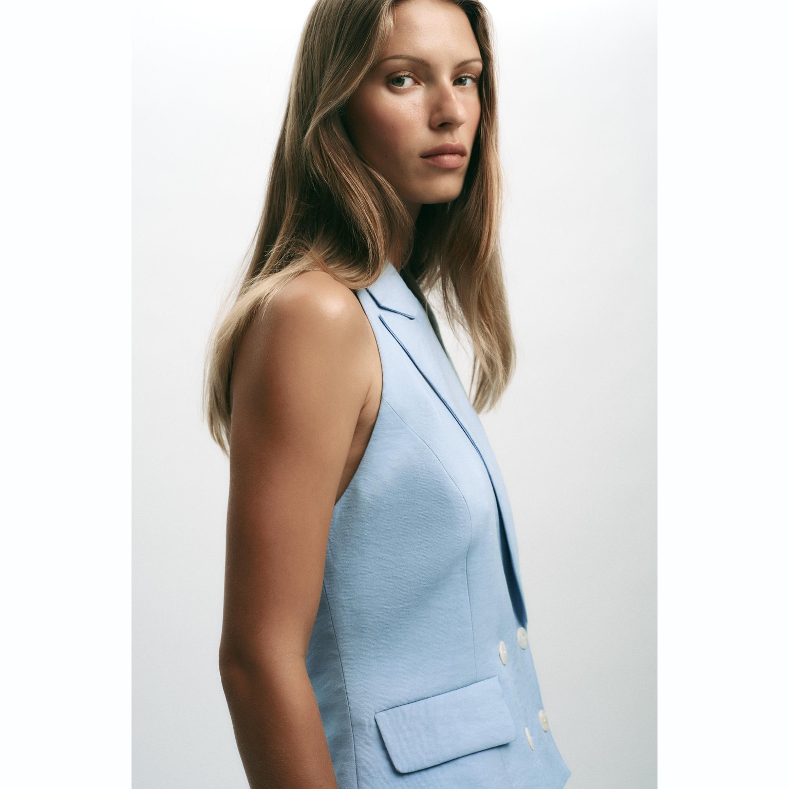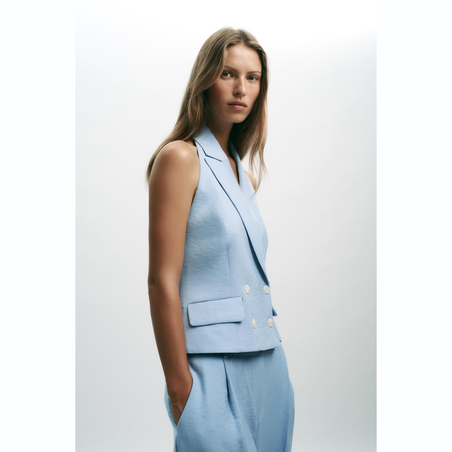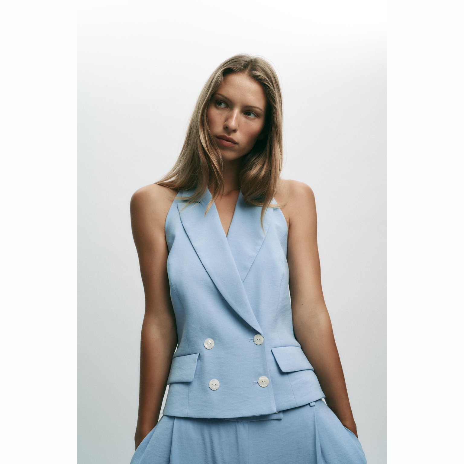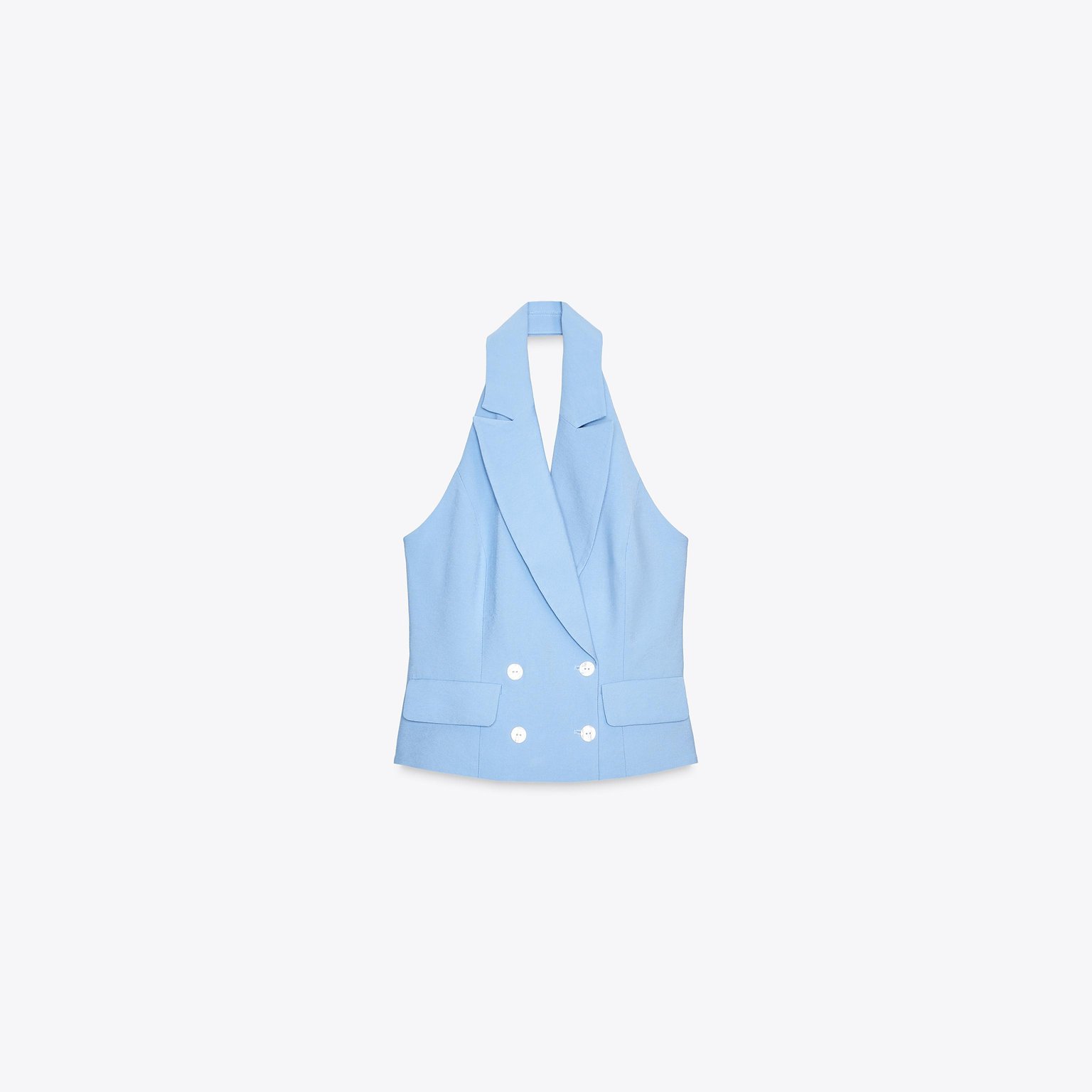 فيست هالتر مزدوج الأزرار – لون طبيعي (أزرق سماوي) – Sky Blue (Halter Double-Breasted Waistcoat)