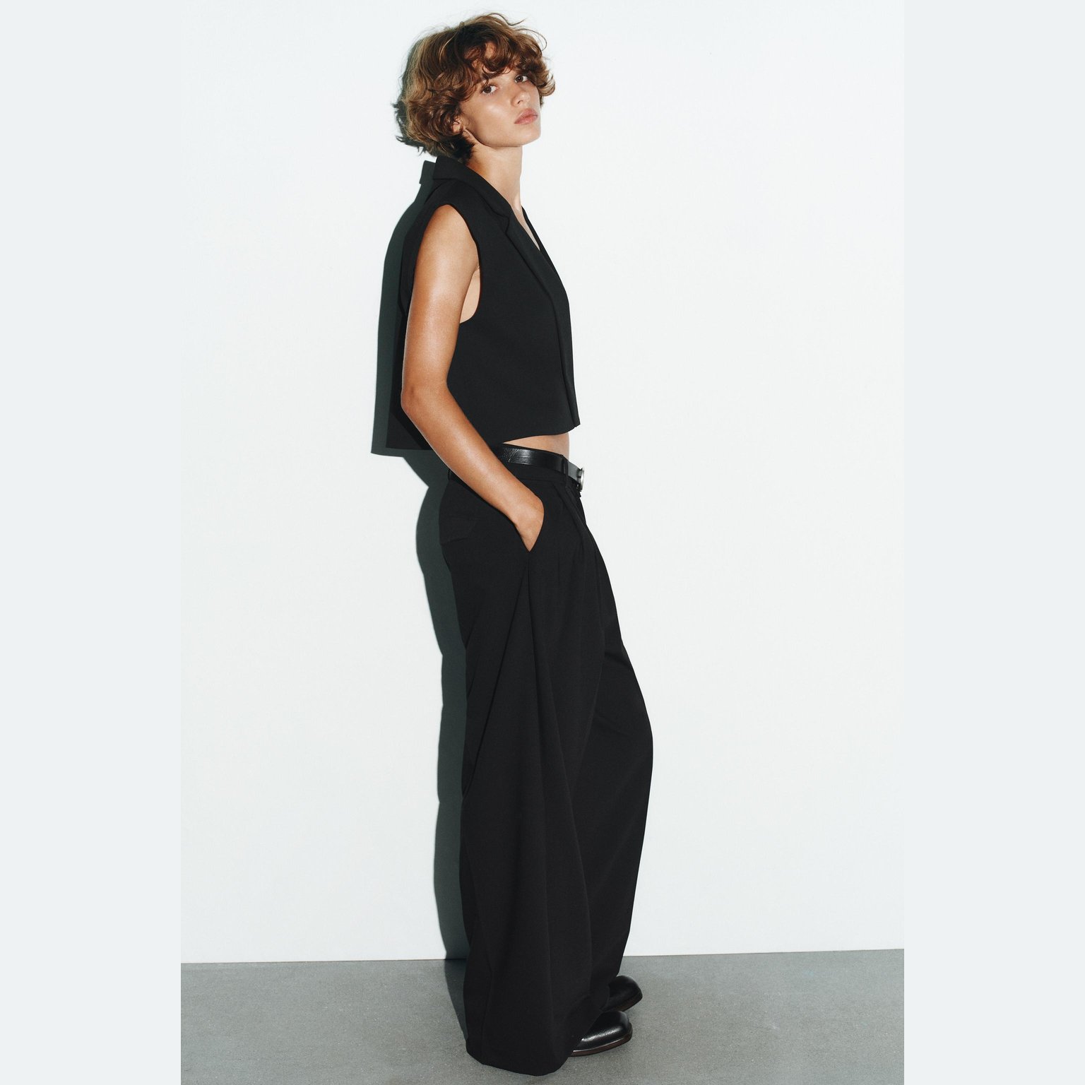 فيست أنيق بلون أسود طبيعي، مصنوع من خامة ممزوجة تمنح مظهرًا عصريًا وملمسًا عمليًا، مع بطانة داخلية من البوليستر لراحة إضافية. يتميز بياقة عريضة بلا أكمام، مع أكتاف مبطنة، وإغلاق أمامي بزر مخفي، وحاشية مستقيمة. تصميم مثالي للإطلالات الرسمية أو الكاجوال الأنيقة.