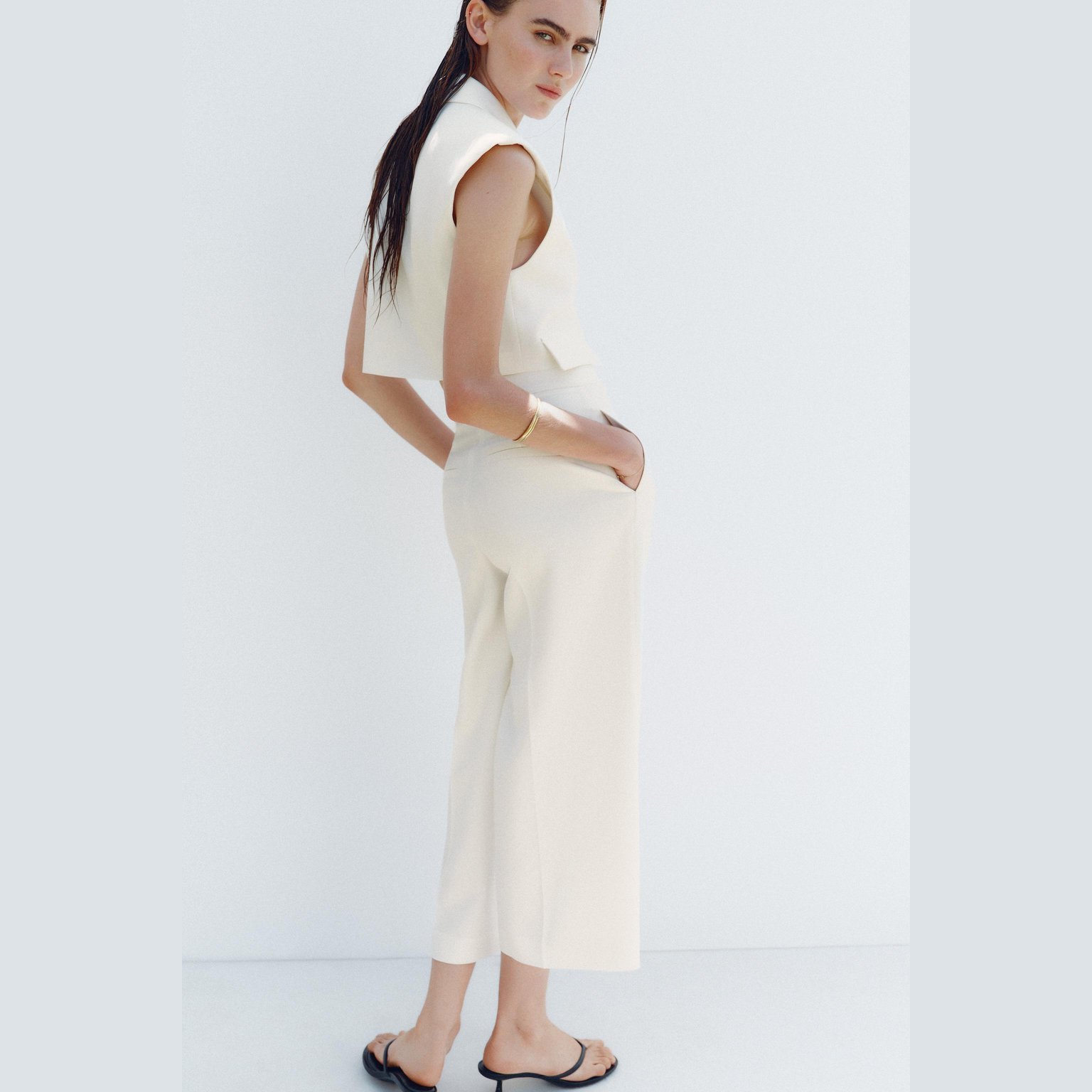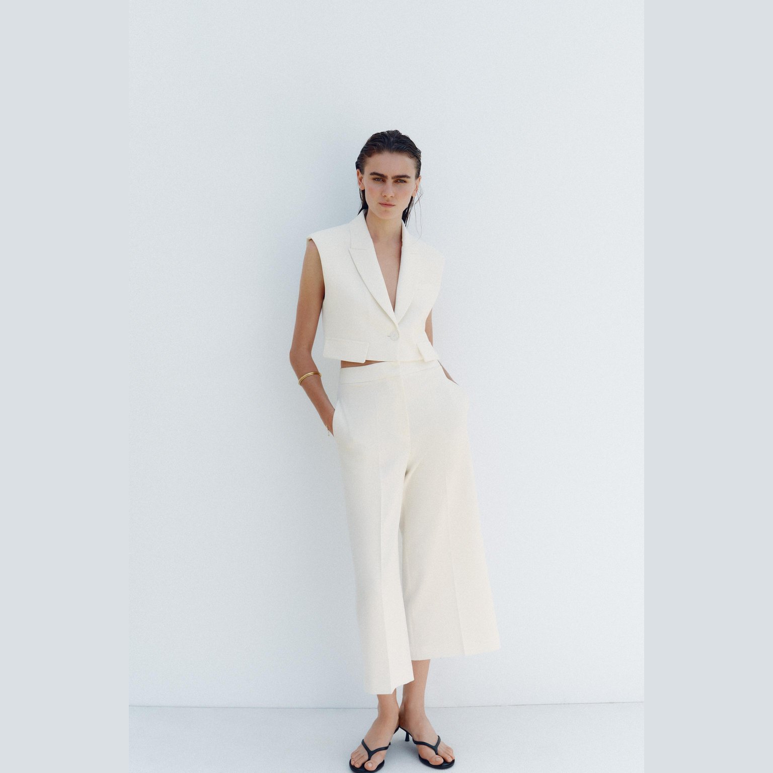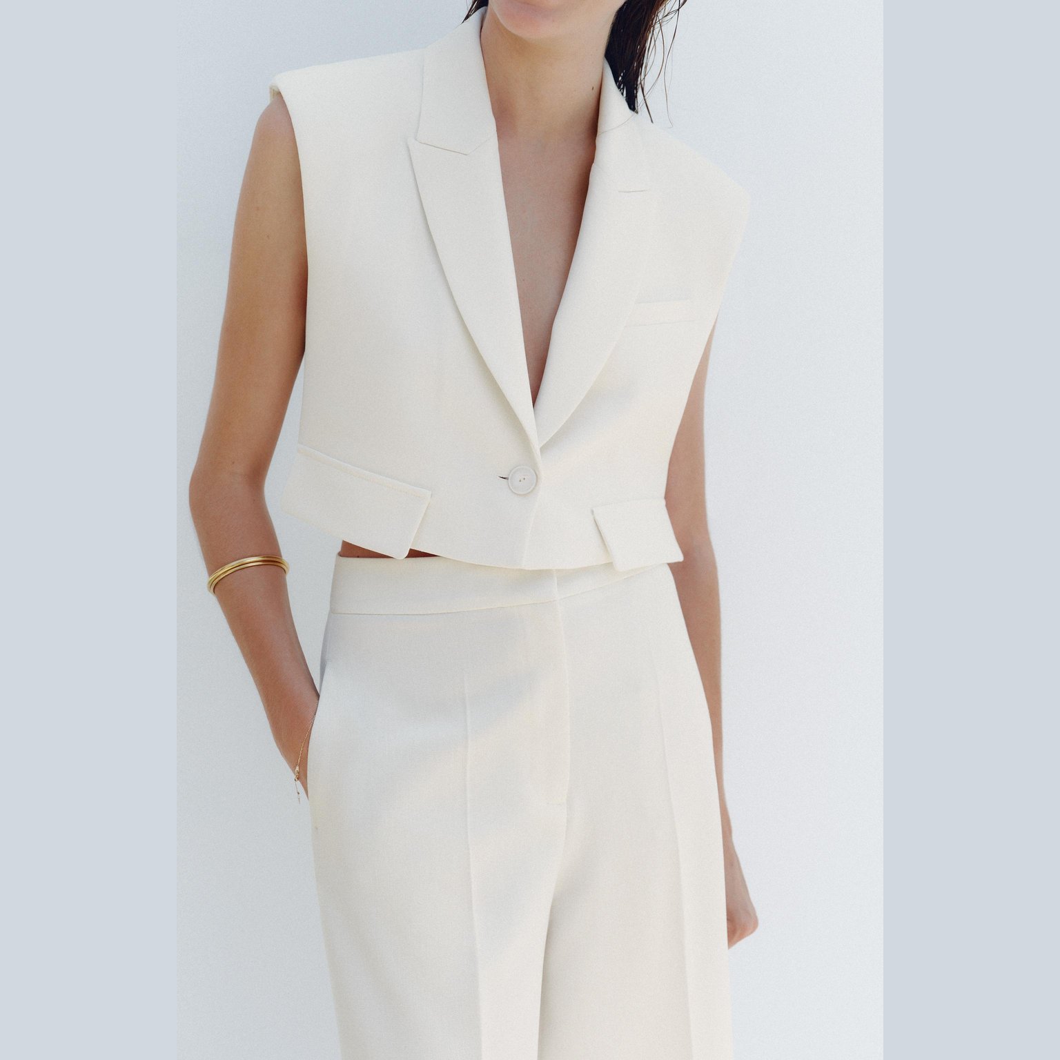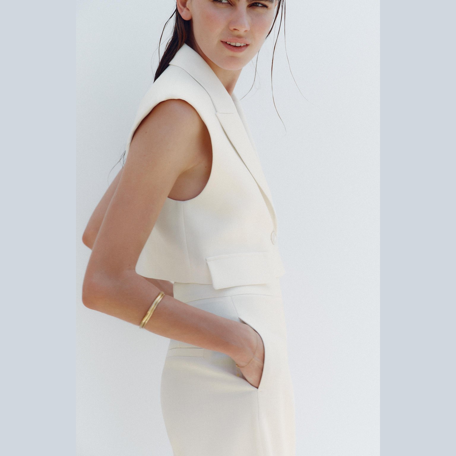 فيست أنيق بلون أوف وايت طبيعي، مصنوع من خامة ممزوجة تمنح مظهرًا عصريًا وملمسًا عمليًا، مع بطانة داخلية من الأسيتات لراحة إضافية. يتميز بياقة عريضة بلا أكمام، مع أكتاف محددة، وجيوب أمامية بغطاء، وإغلاق أمامي بزر واحد. تصميم مثالي للإطلالات الرسمية أو الكاجوال الأنيقة.