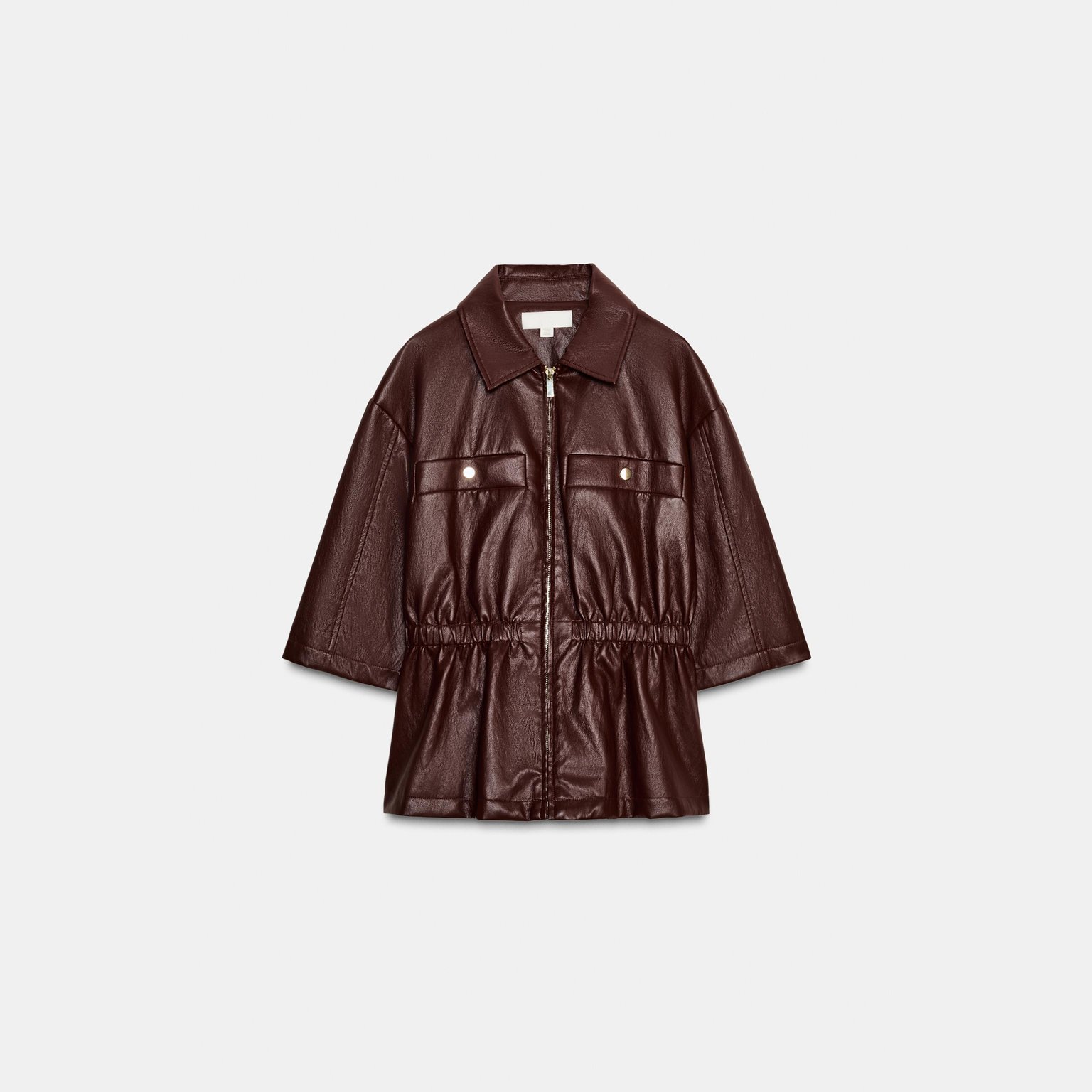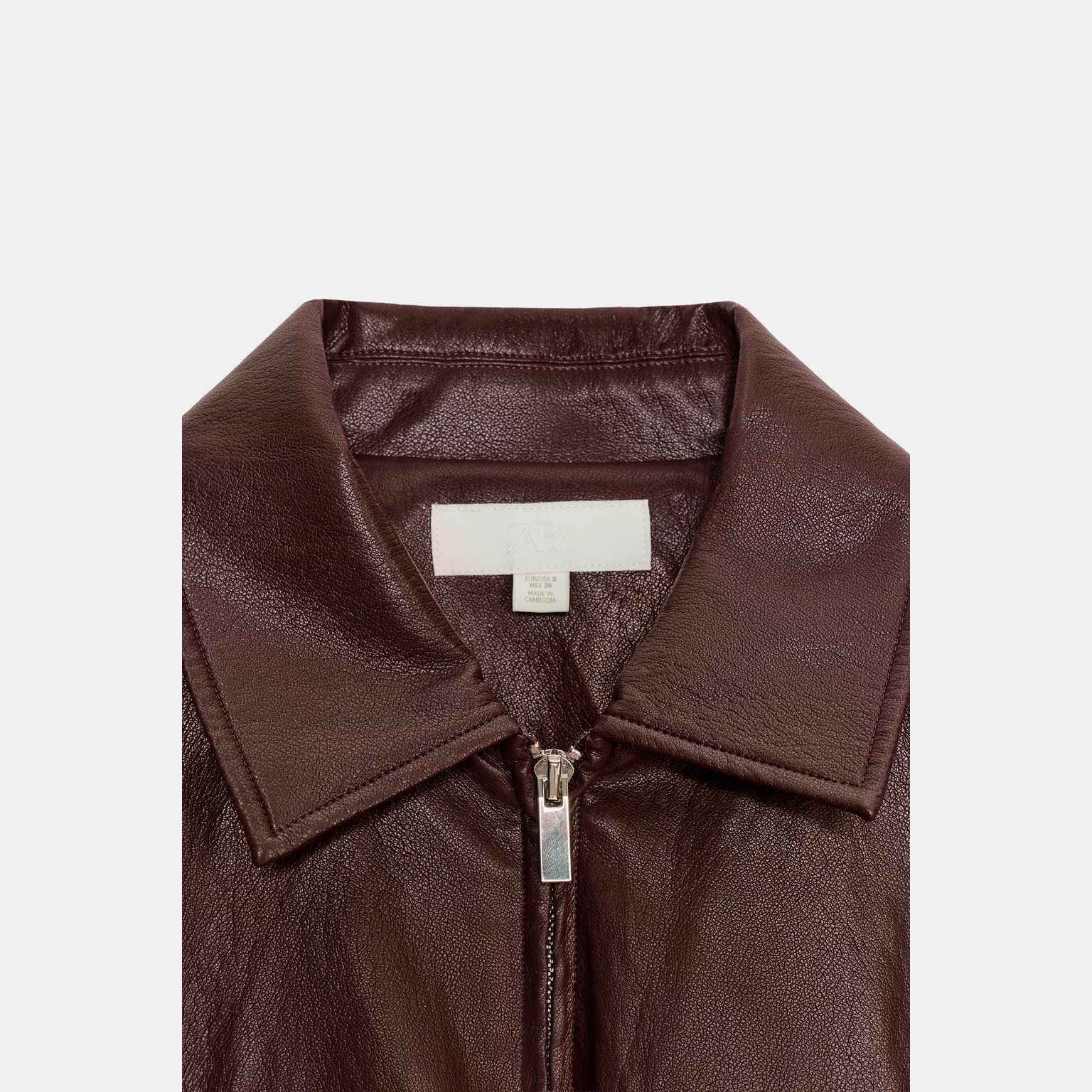 جاكيت جلد صناعي – لون طبيعي (برغندي) – Burgundy (Faux Leather Jacket)