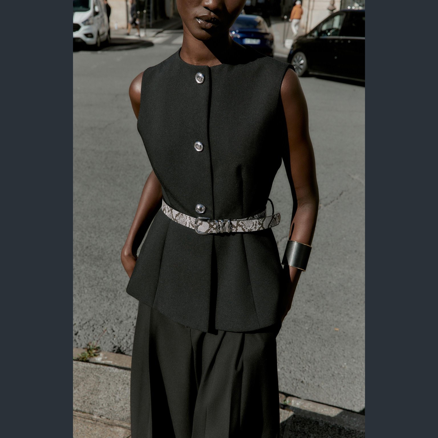 - التصميم: فيست بحزام (Belted Waistcoat)