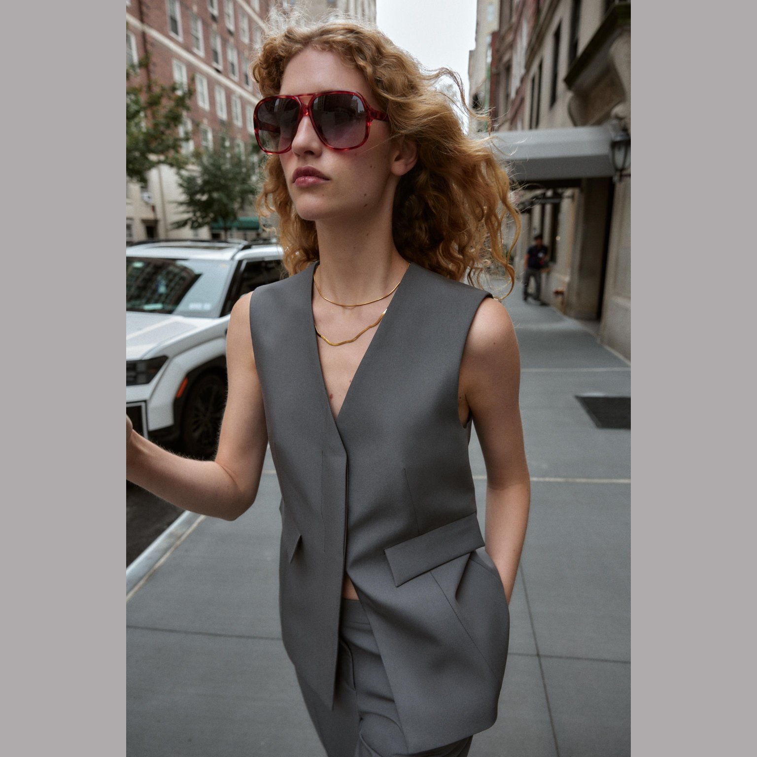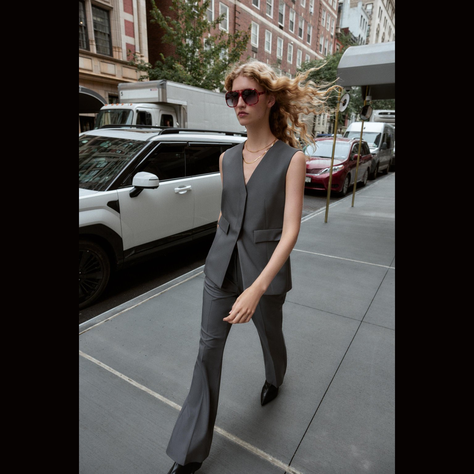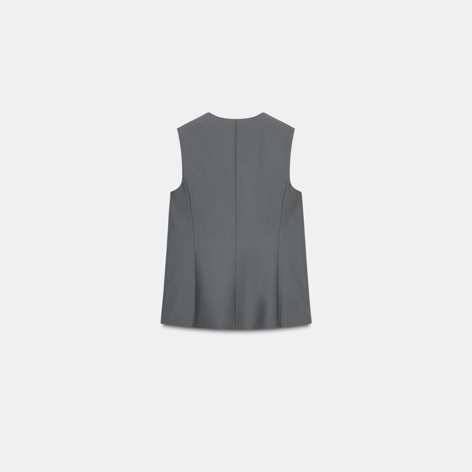 فيست أنيق طويل بلون رمادي طبيعي، مصنوع من خامة ممزوجة تمنح مظهرًا عصريًا وملمسًا عمليًا، مع بطانة داخلية من الأسيتات لراحة إضافية. يتميز بياقة V بلا أكمام، مع جيوب أمامية بغطاء، وإغلاق أمامي مزدوج الأزرار مخفي، وحاشية مستقيمة. تصميم مثالي للإطلالات الرسمية أو الكاجوال الأنيقة.