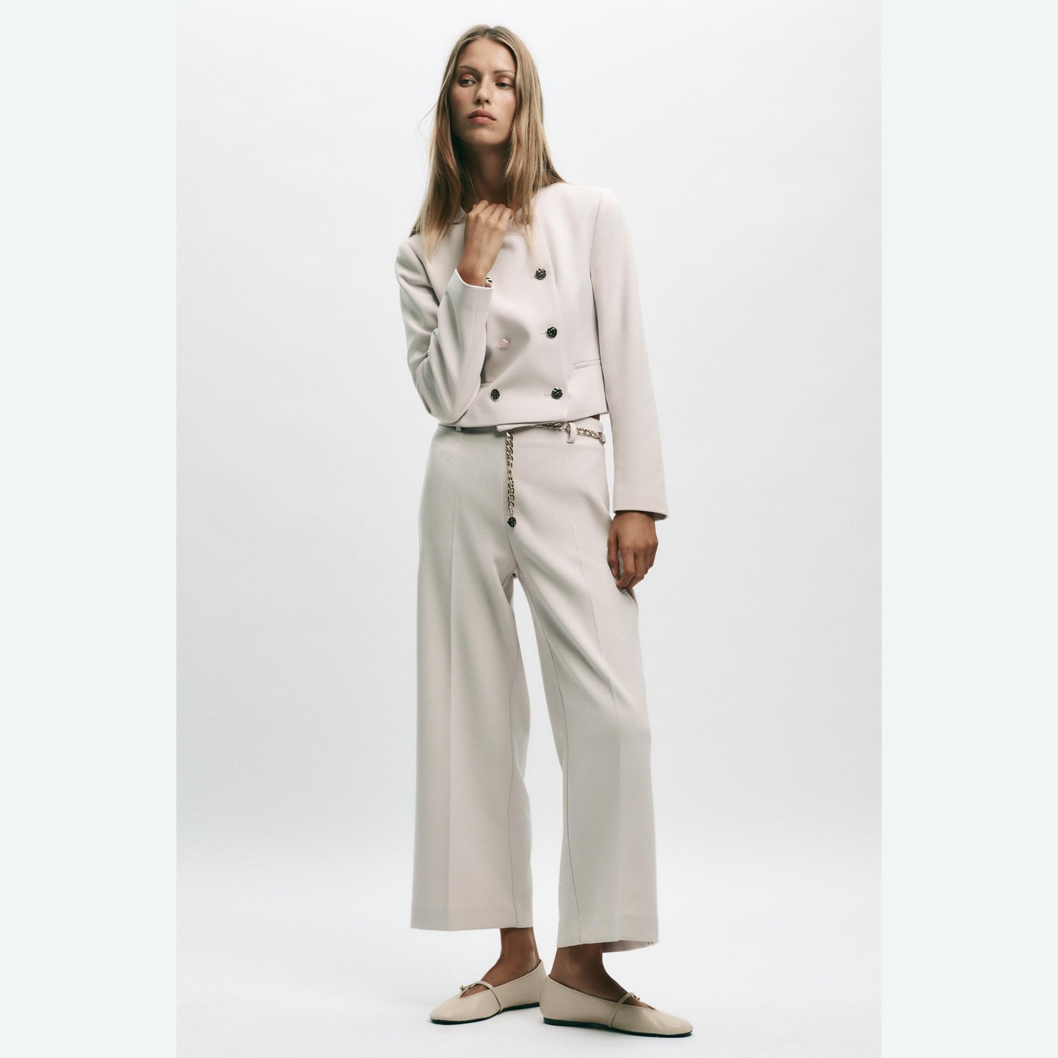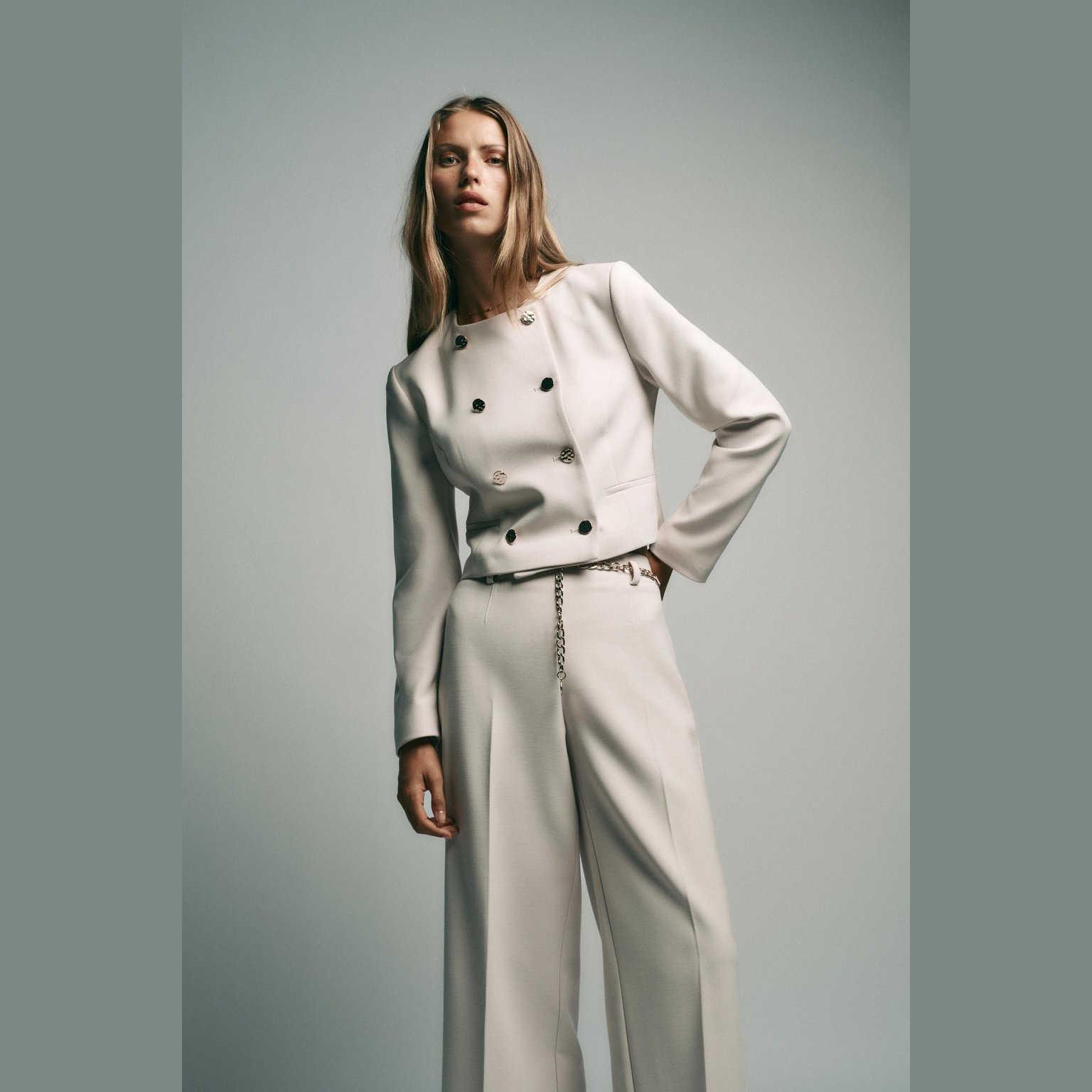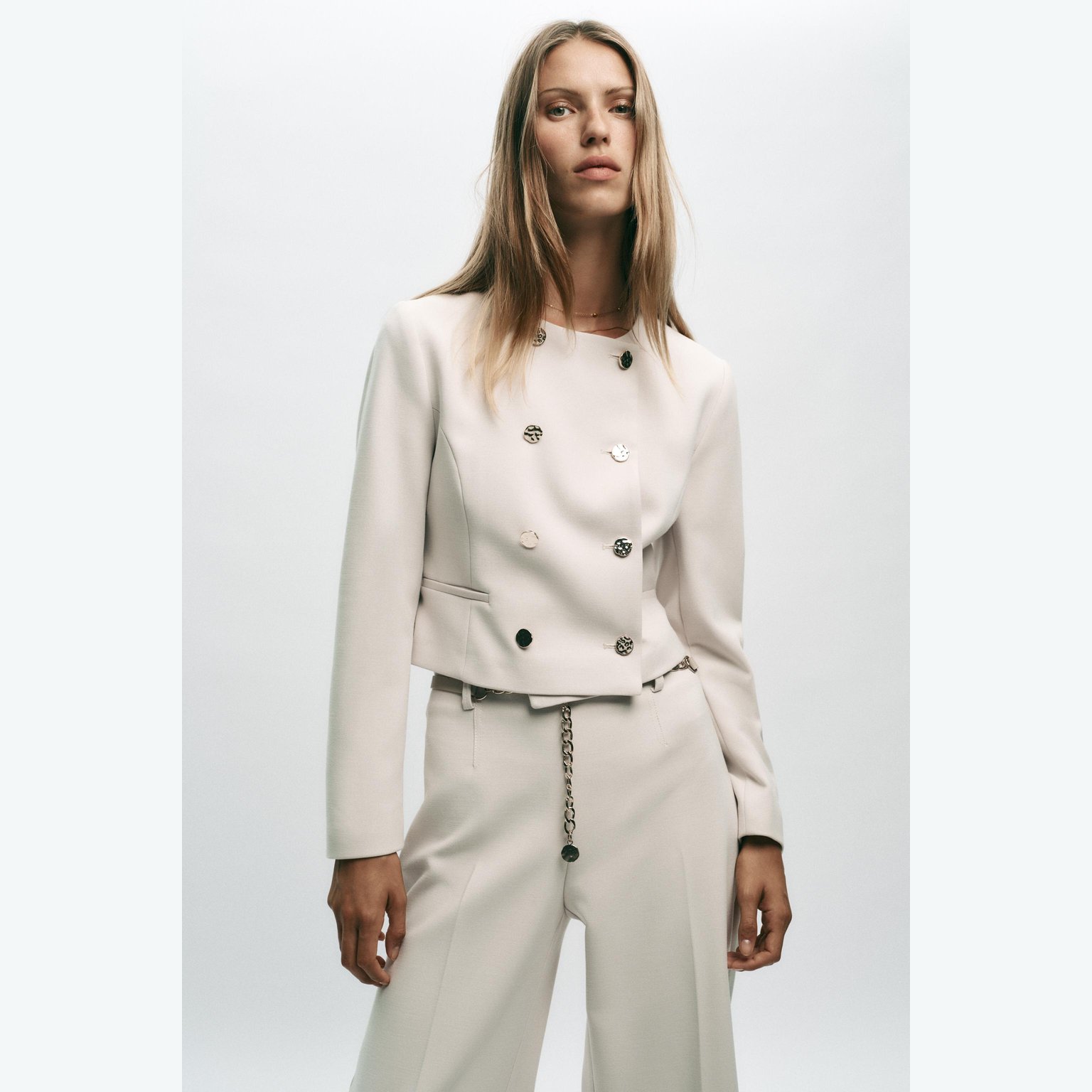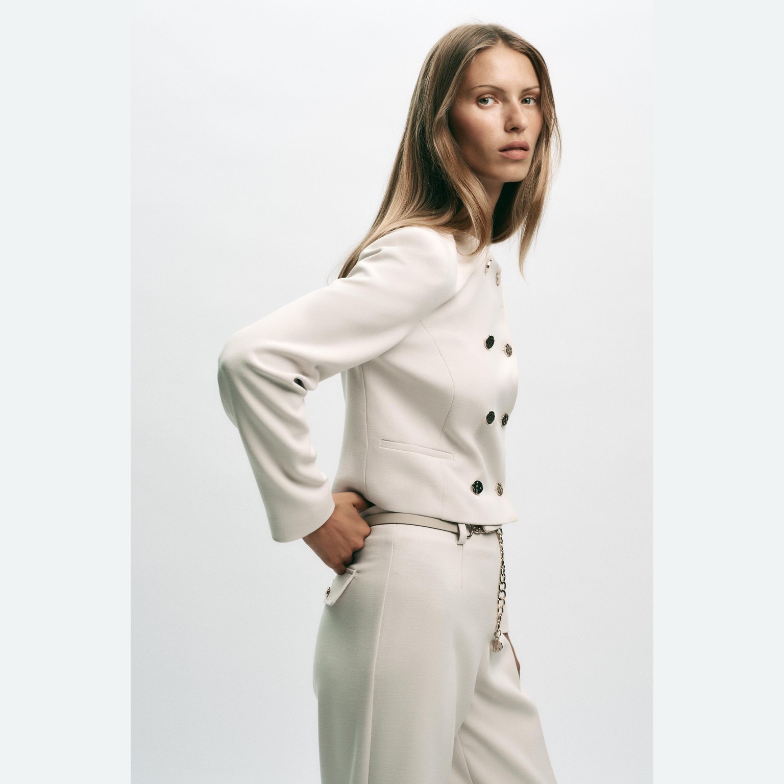بليزر قصير مزدوج الأزرار – لون طبيعي (أوف وايت) – Ecru (Short Double-Breasted Blazer)