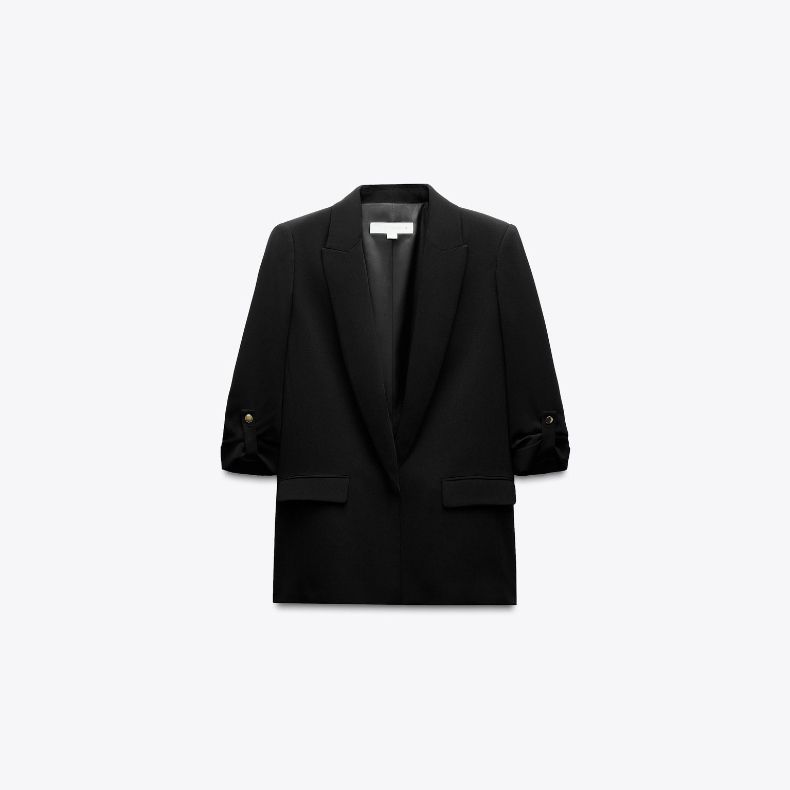 بليزر بأكمام مطوية – لون طبيعي (أسود) – Black (Blazer with Rolled-Up Sleeves)