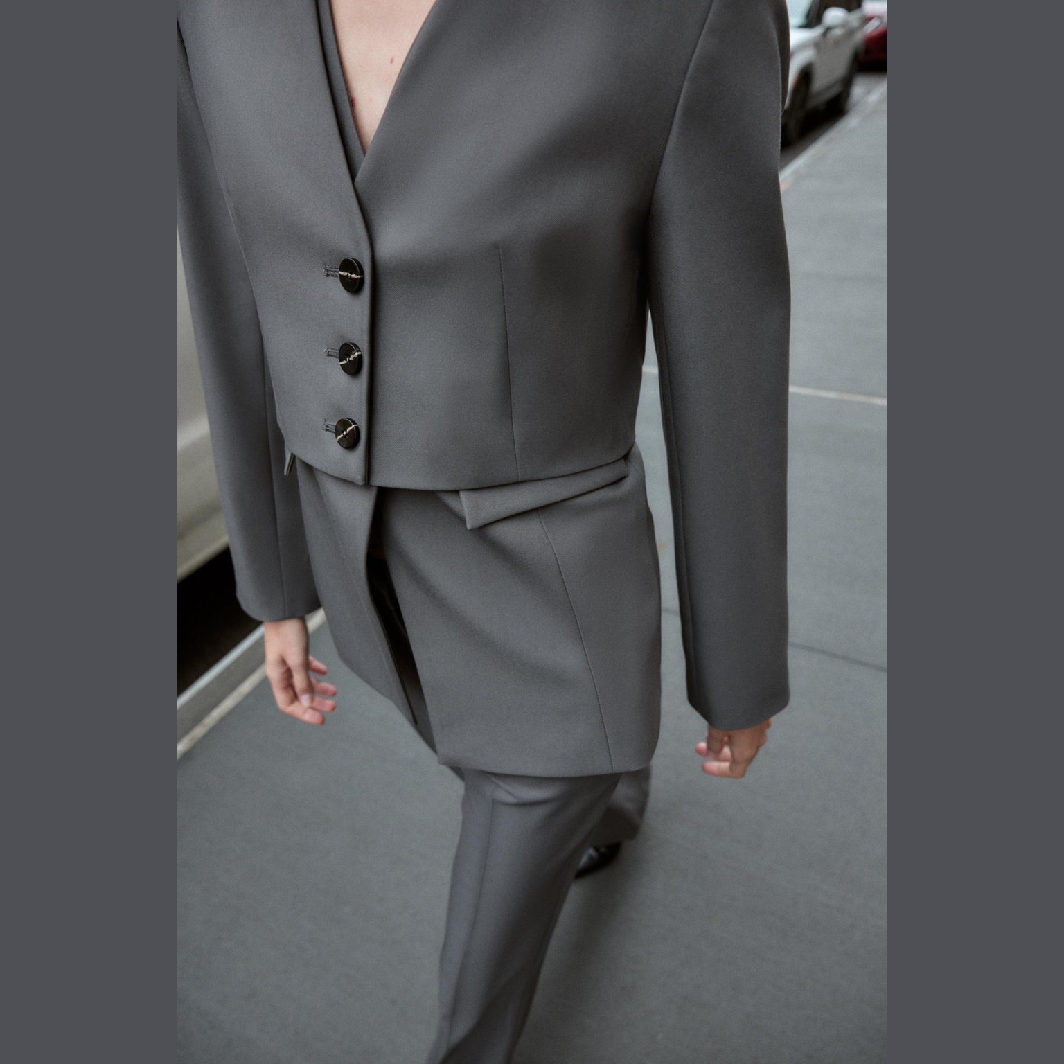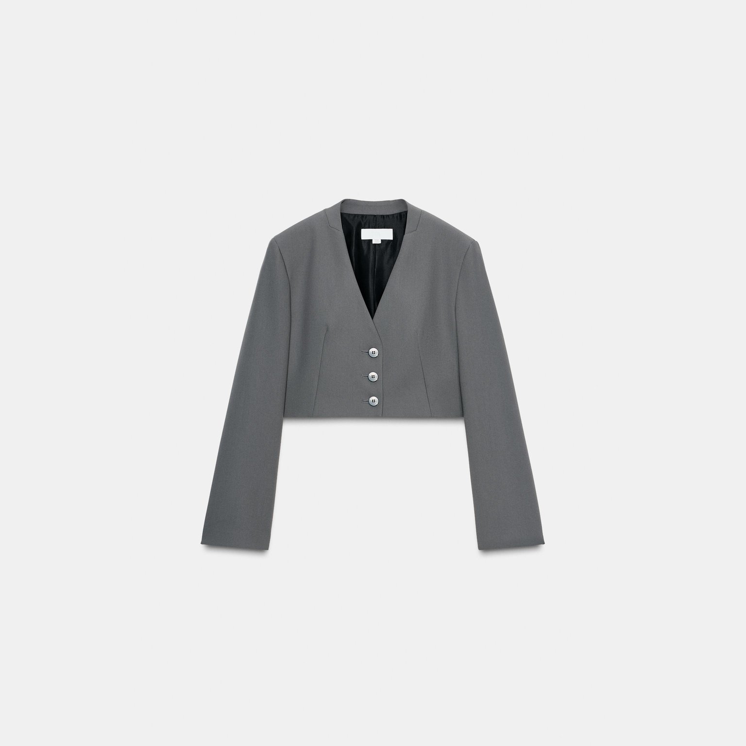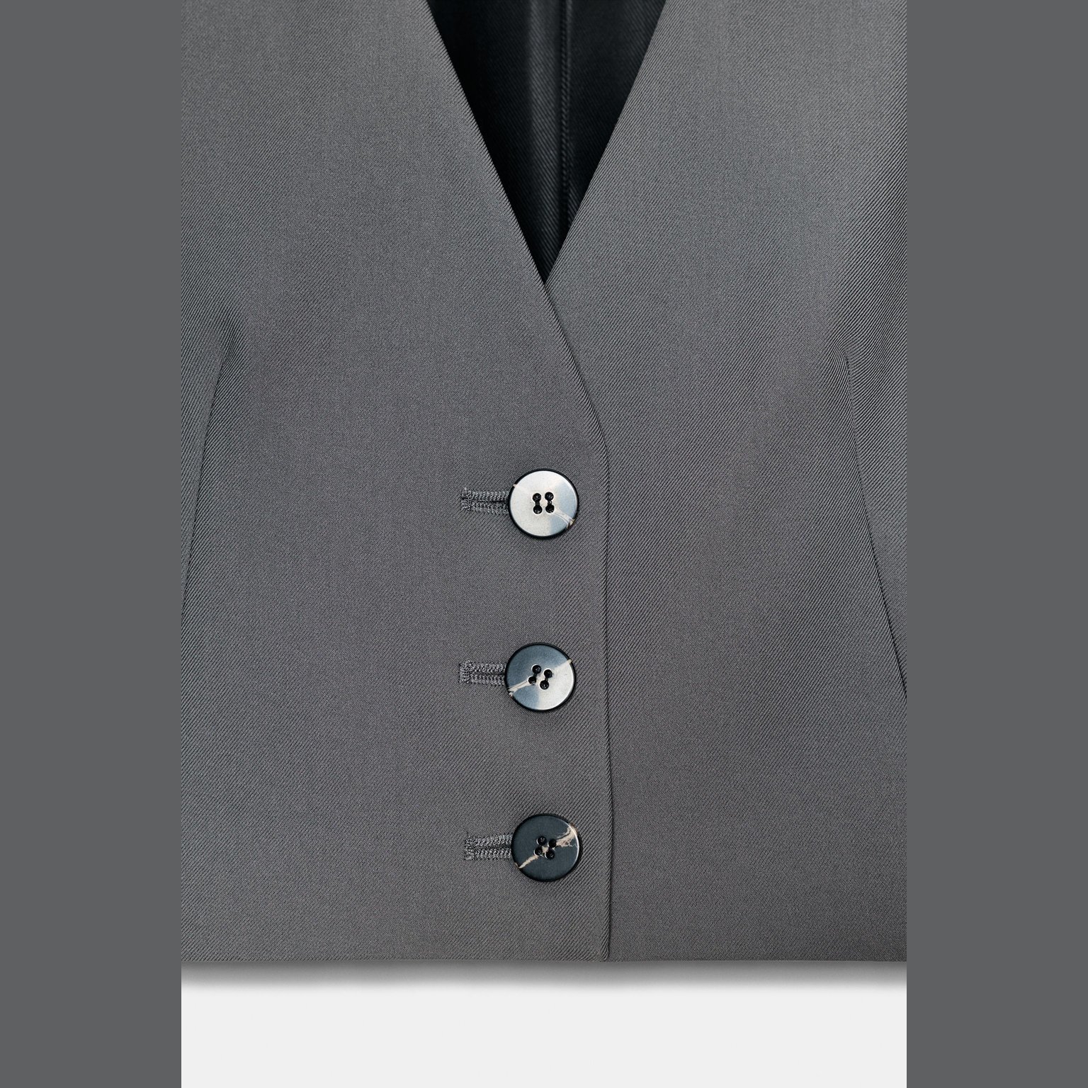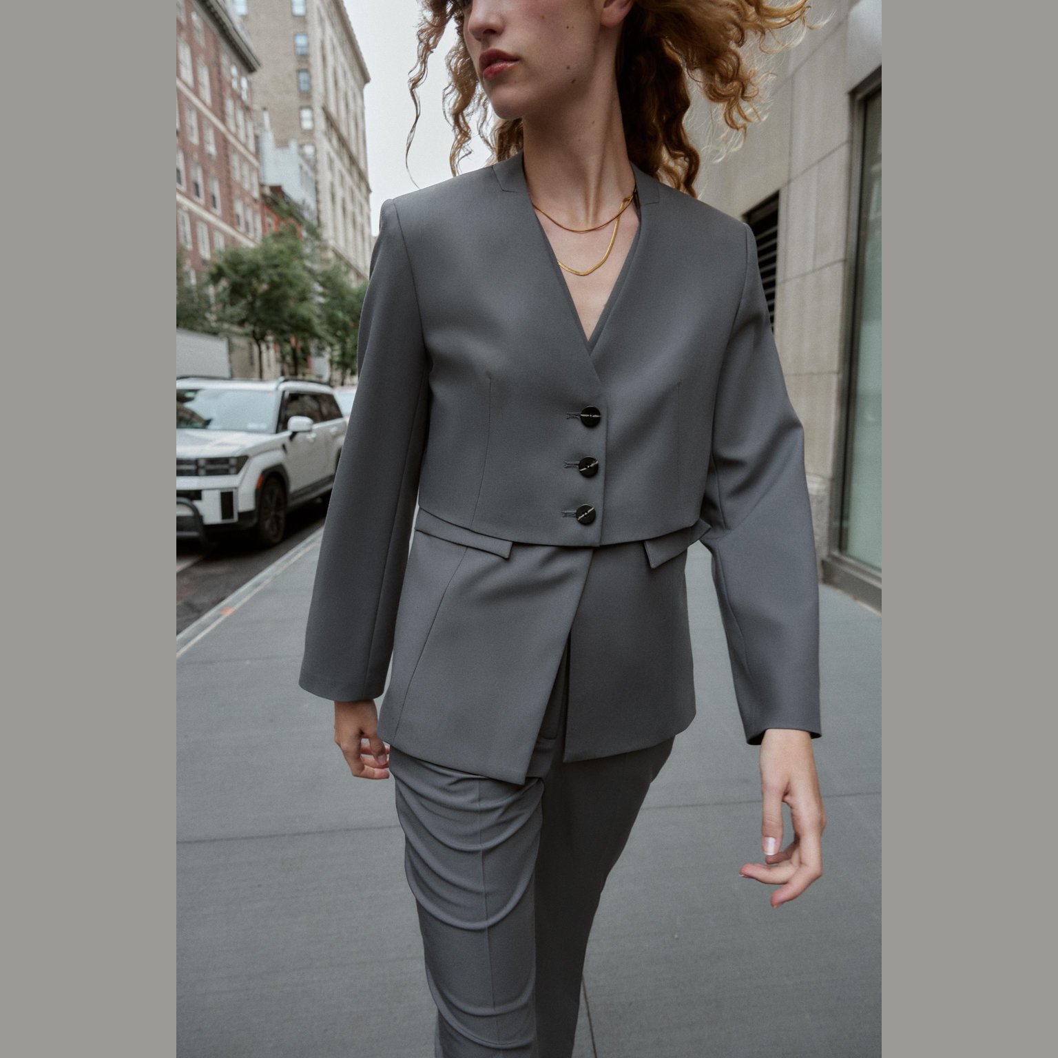 بليزر قصير بلا ياقة – لون طبيعي (رمادي) – Grey (Lapel-Less Cropped Blazer)