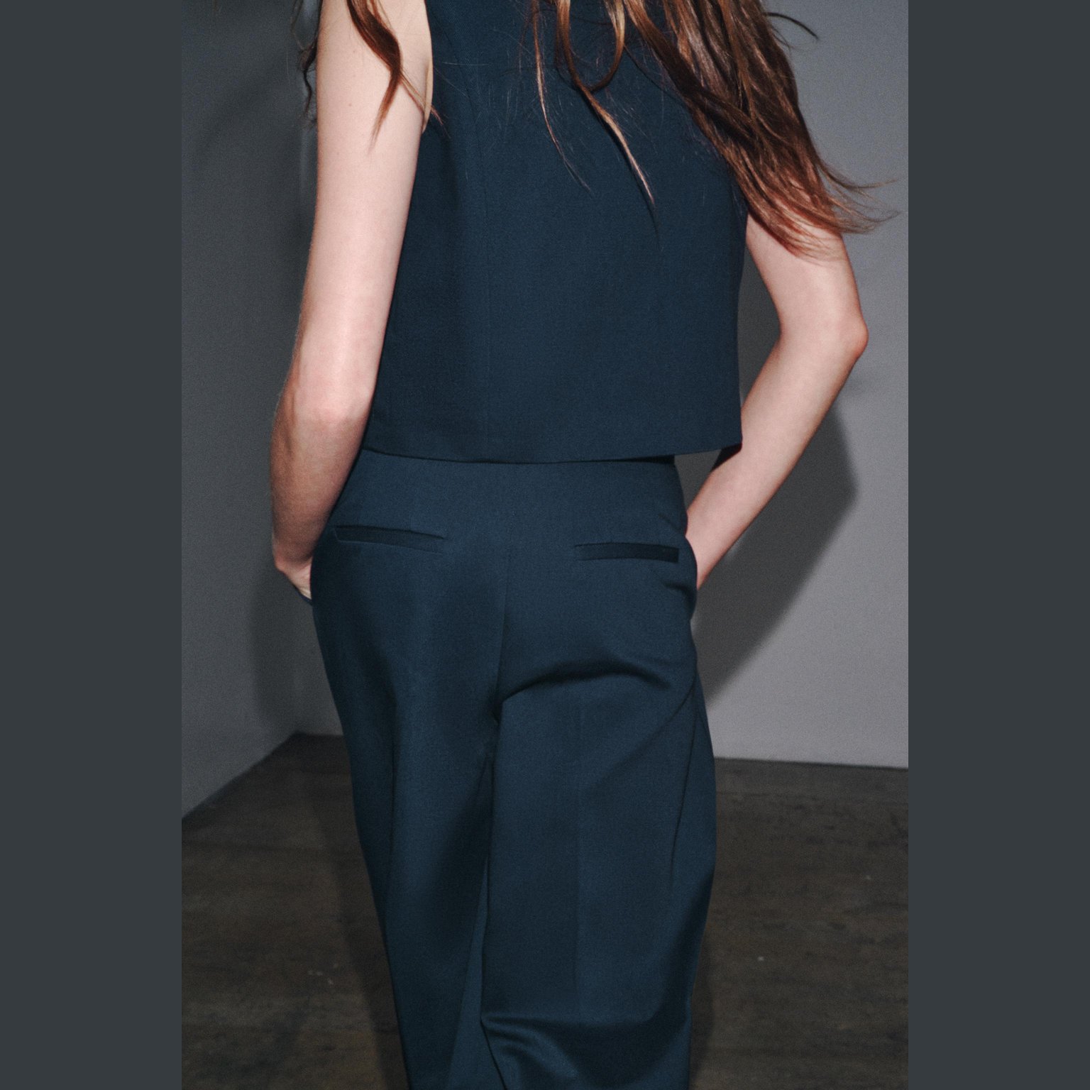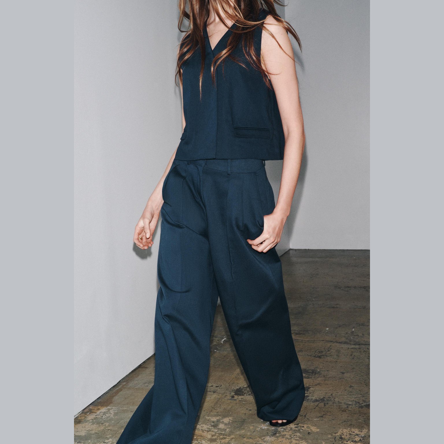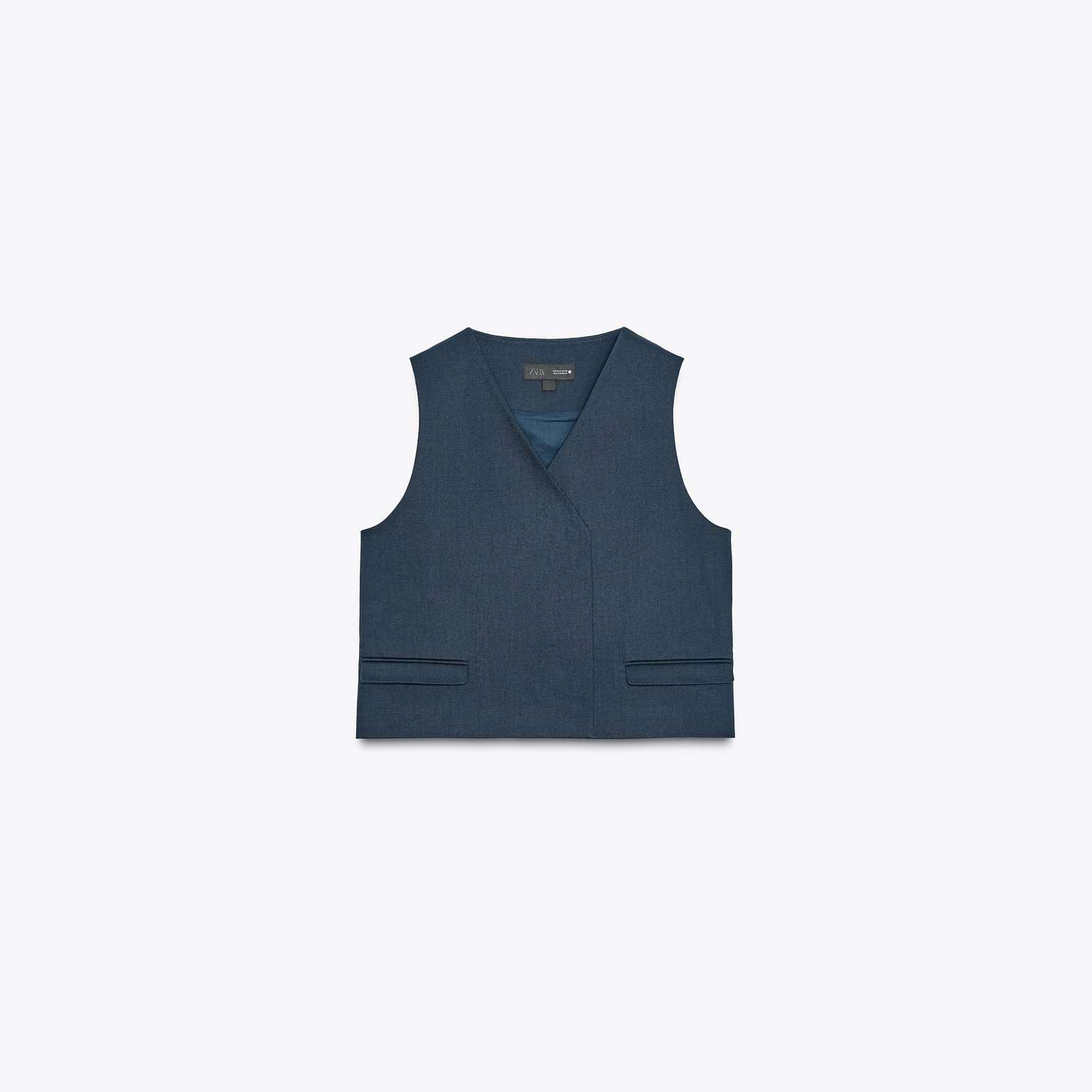 فيست أنيق من مجموعة ZW بلون كحلي طبيعي، مصنوع بالكامل من القطن لملمس عملي ومريح، مع بطانة داخلية من القطن أيضًا لراحة إضافية. يتميز بياقة V عميقة بلا أكمام، مع جيوب أمامية بغطاء وهمي، وإغلاق أمامي مزدوج الأزرار بأزرار مخفية. تصميم مثالي للإطلالات الرسمية أو الكاجوال الأنيقة.