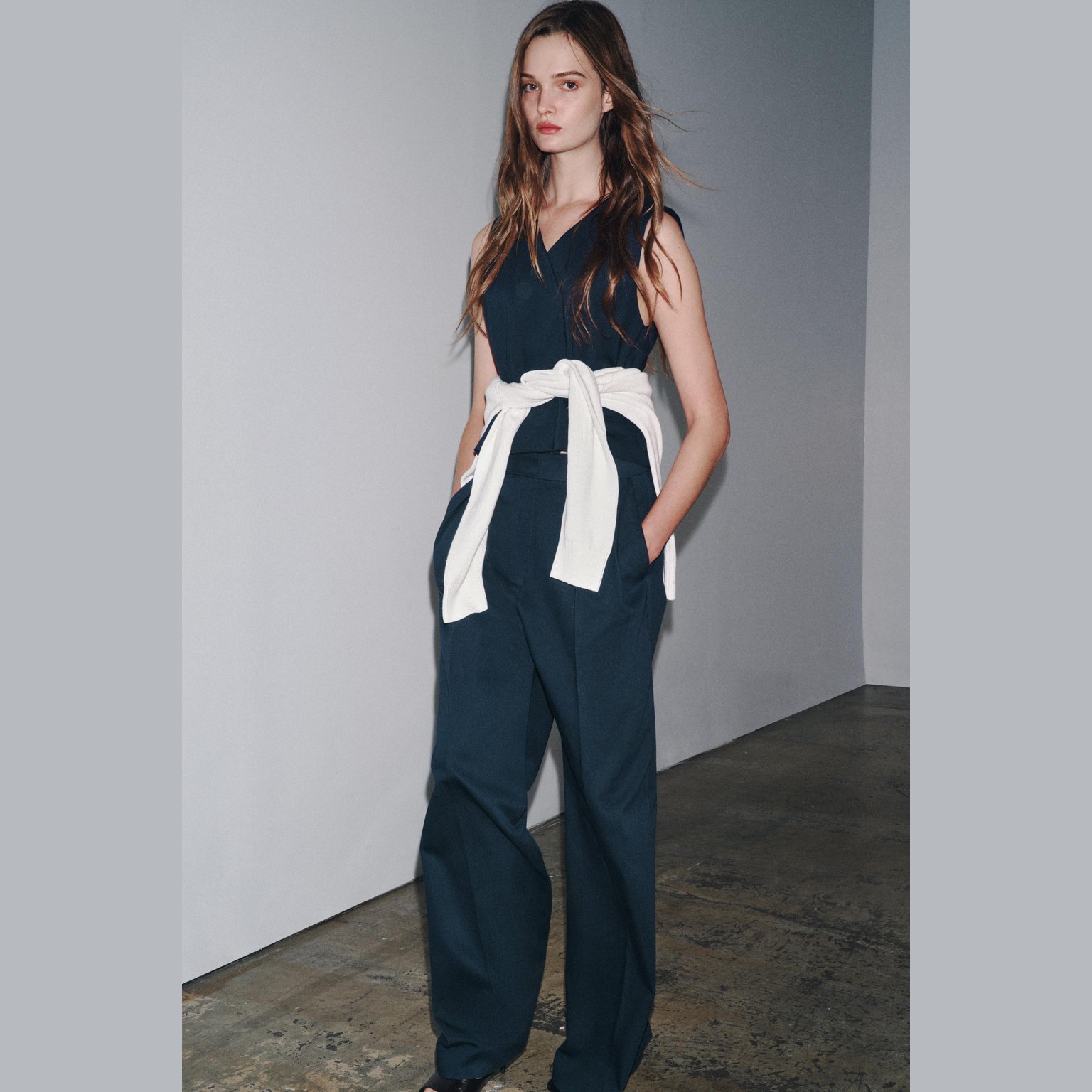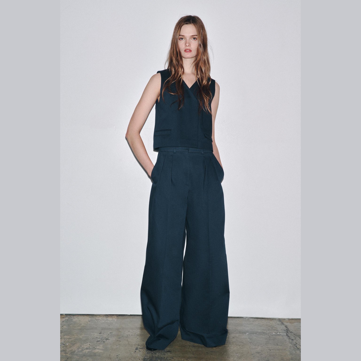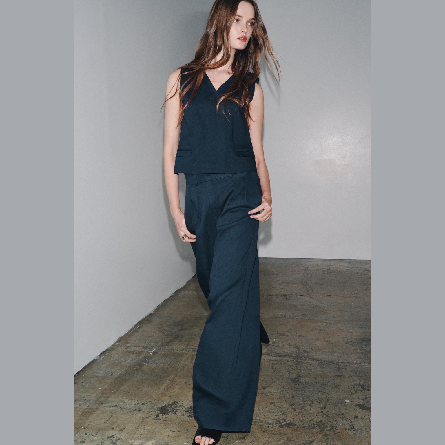 فيست أنيق من مجموعة ZW بلون كحلي طبيعي، مصنوع بالكامل من القطن لملمس عملي ومريح، مع بطانة داخلية من القطن أيضًا لراحة إضافية. يتميز بياقة V عميقة بلا أكمام، مع جيوب أمامية بغطاء وهمي، وإغلاق أمامي مزدوج الأزرار بأزرار مخفية. تصميم مثالي للإطلالات الرسمية أو الكاجوال الأنيقة.