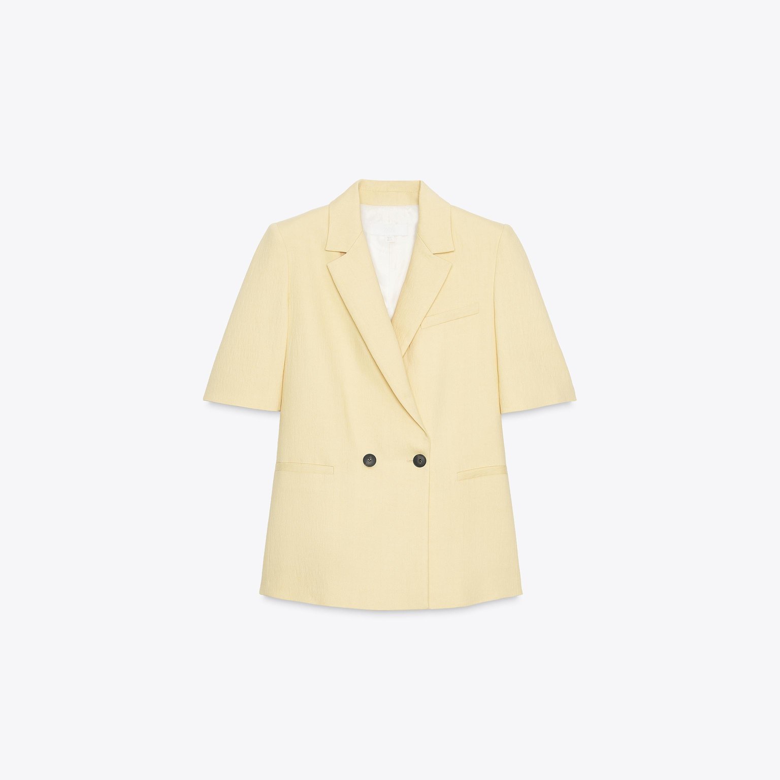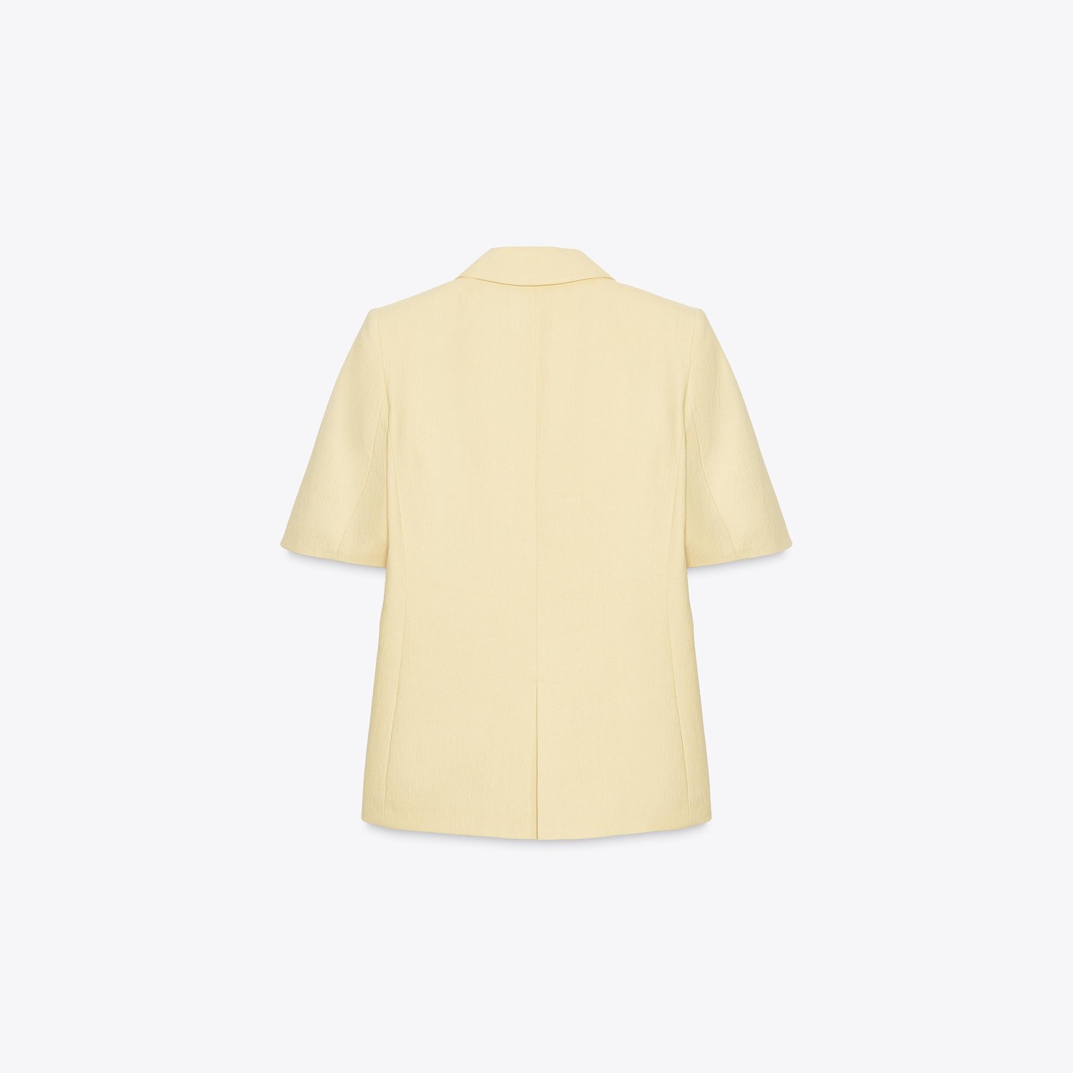 بليزر قصير الأكمام بخامة منسوجة – لون طبيعي (أصفر فاتح) – Butter (Short-Sleeved Textured Blazer)