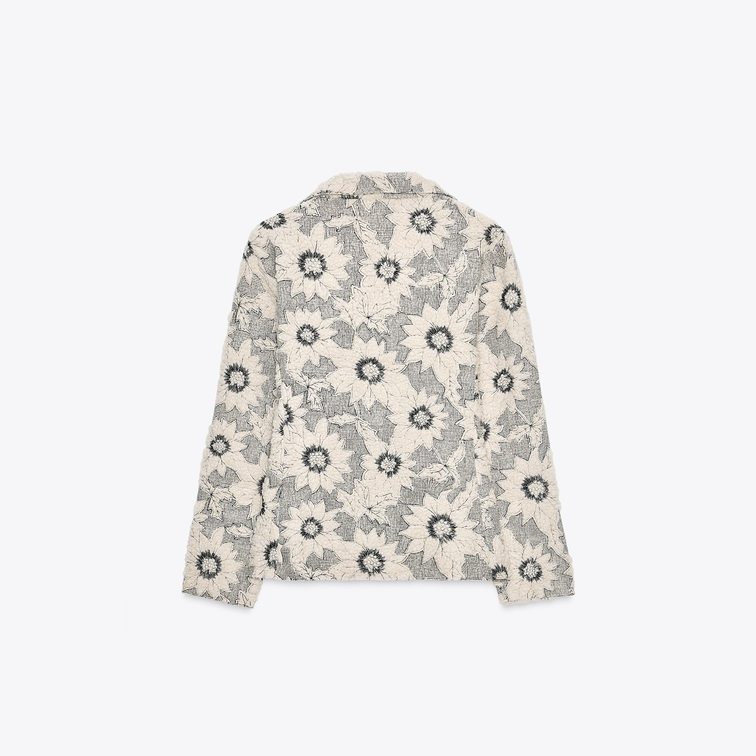 بليزر منسوج مزين بنقشة زهور – لون طبيعي (أوف وايت × أسود) – Ecru / Black (Floral Textured Blazer)