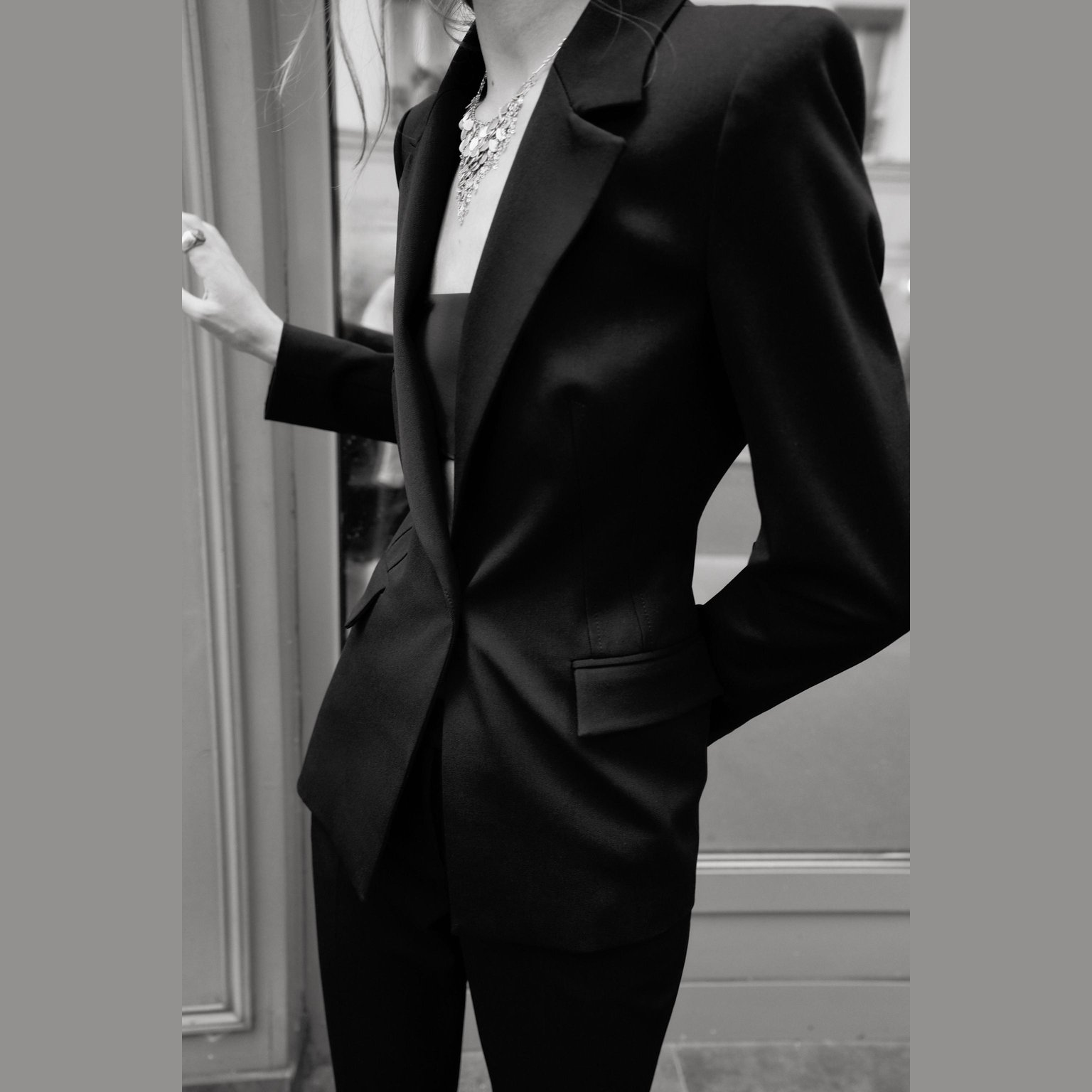 بليزر مفصل بزر واحد – لون طبيعي (أسود) – Black (One-Button Tailored Blazer)