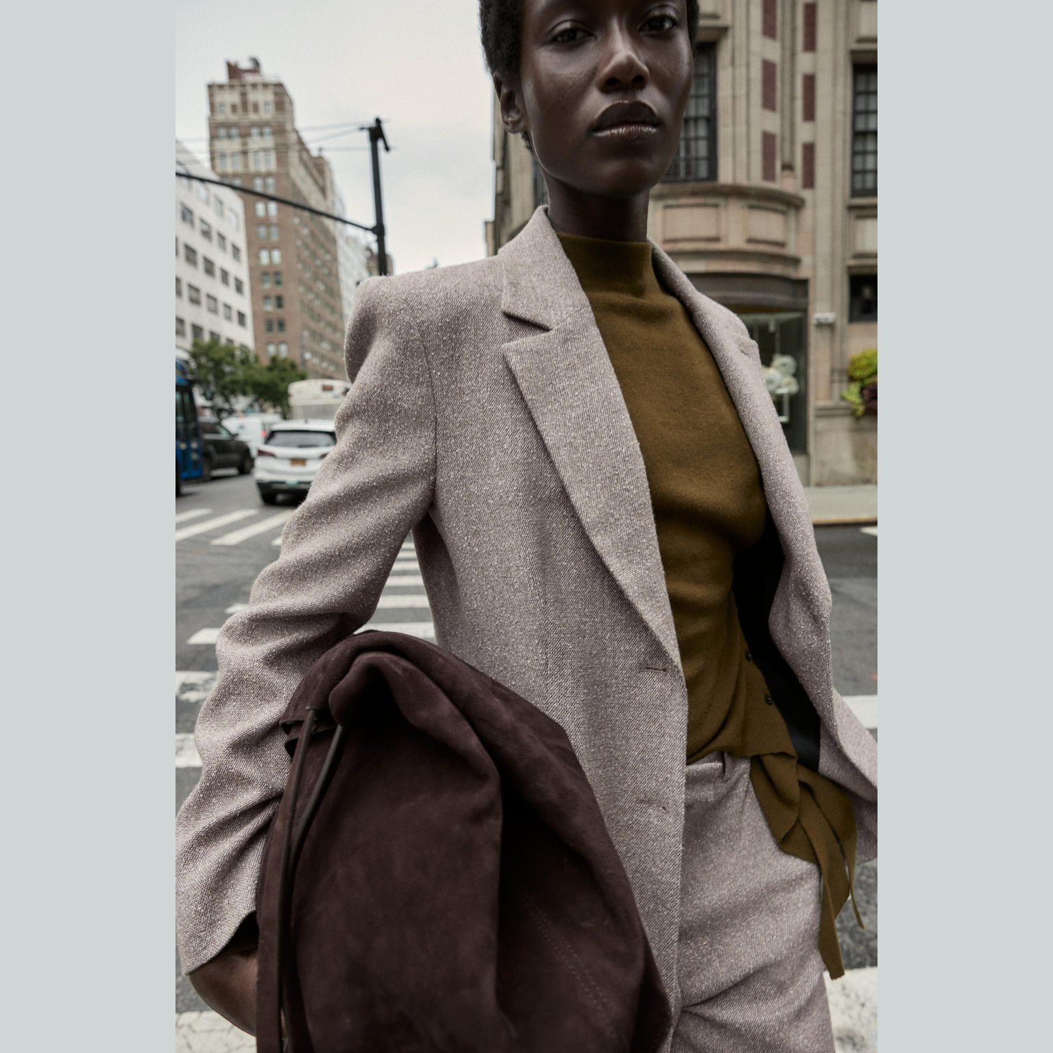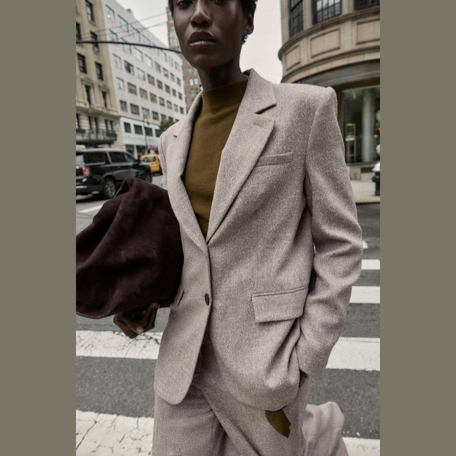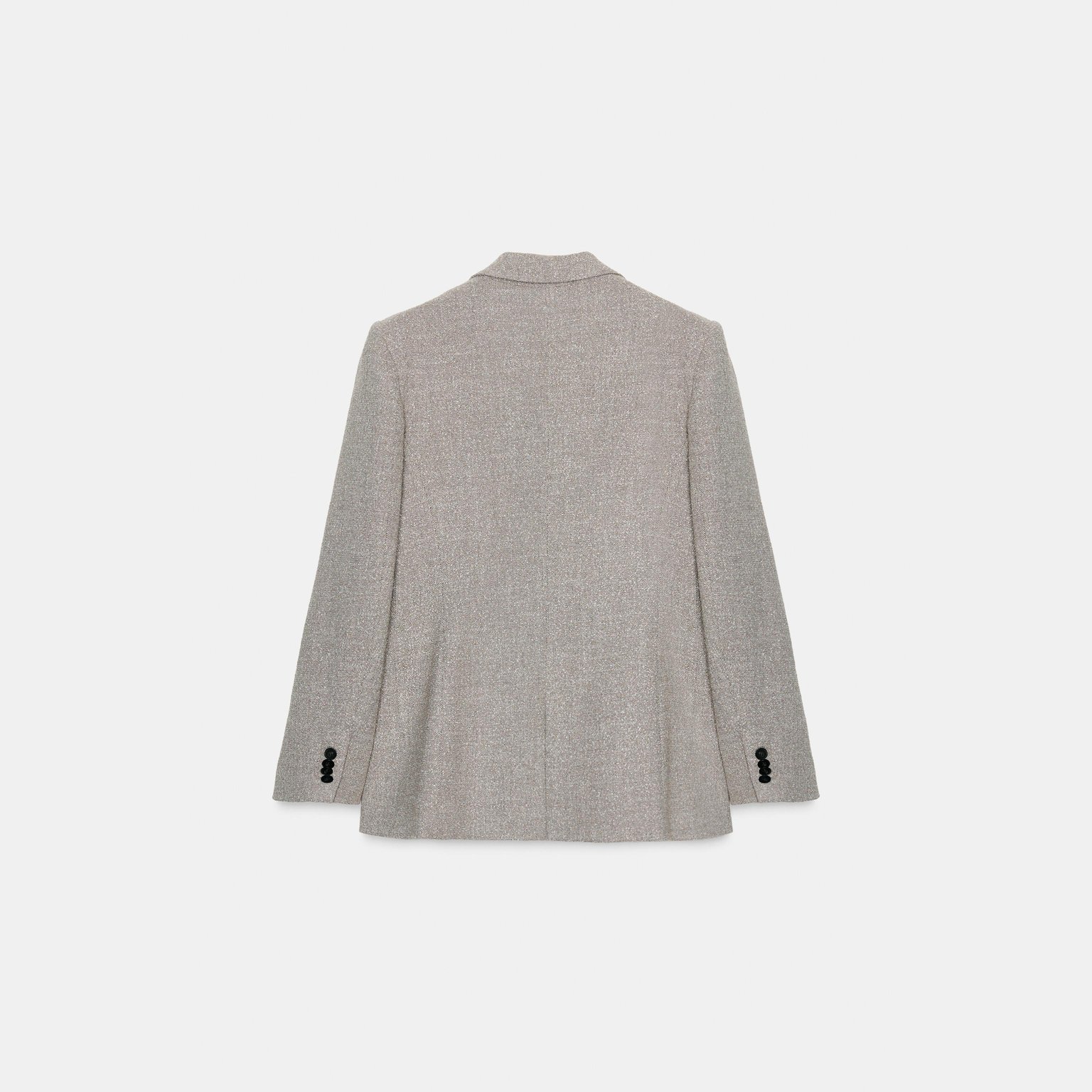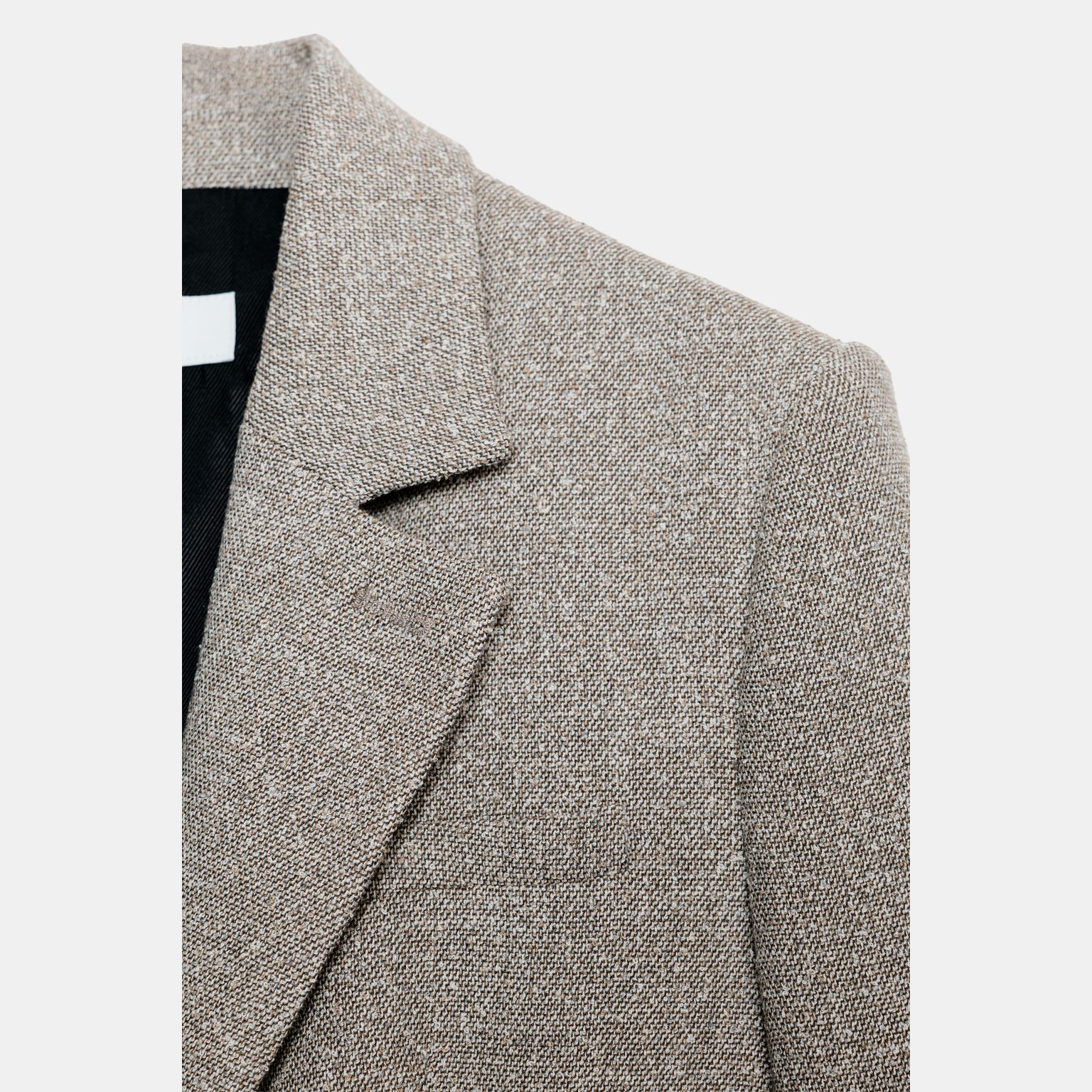 - التصميم: بليزر بخامة منسوجة رستيك (Rustic Textured Blazer)