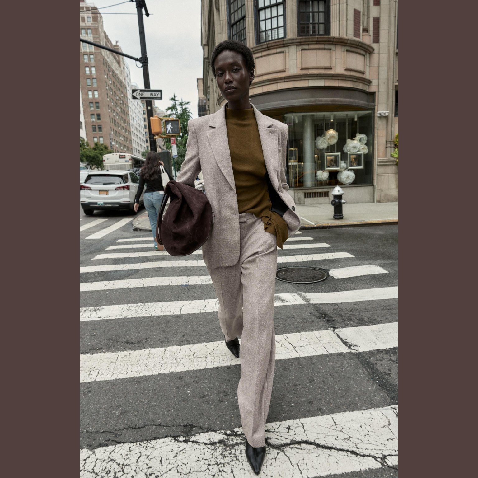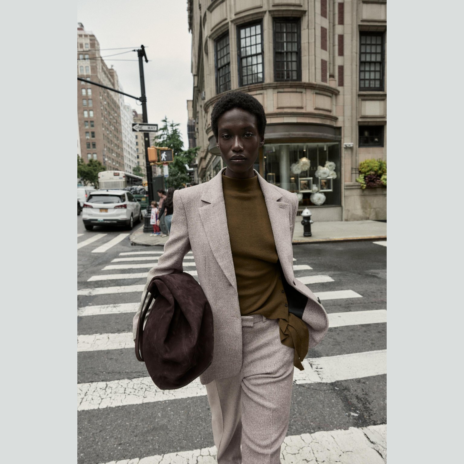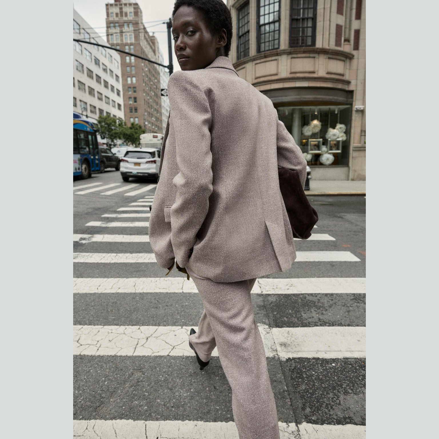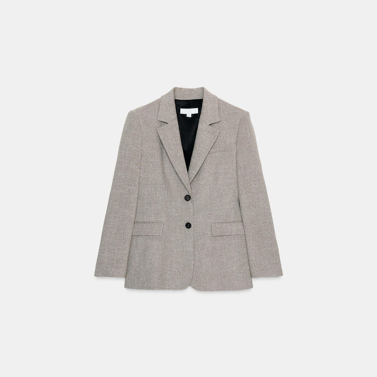 - التصميم: بليزر بخامة منسوجة رستيك (Rustic Textured Blazer)