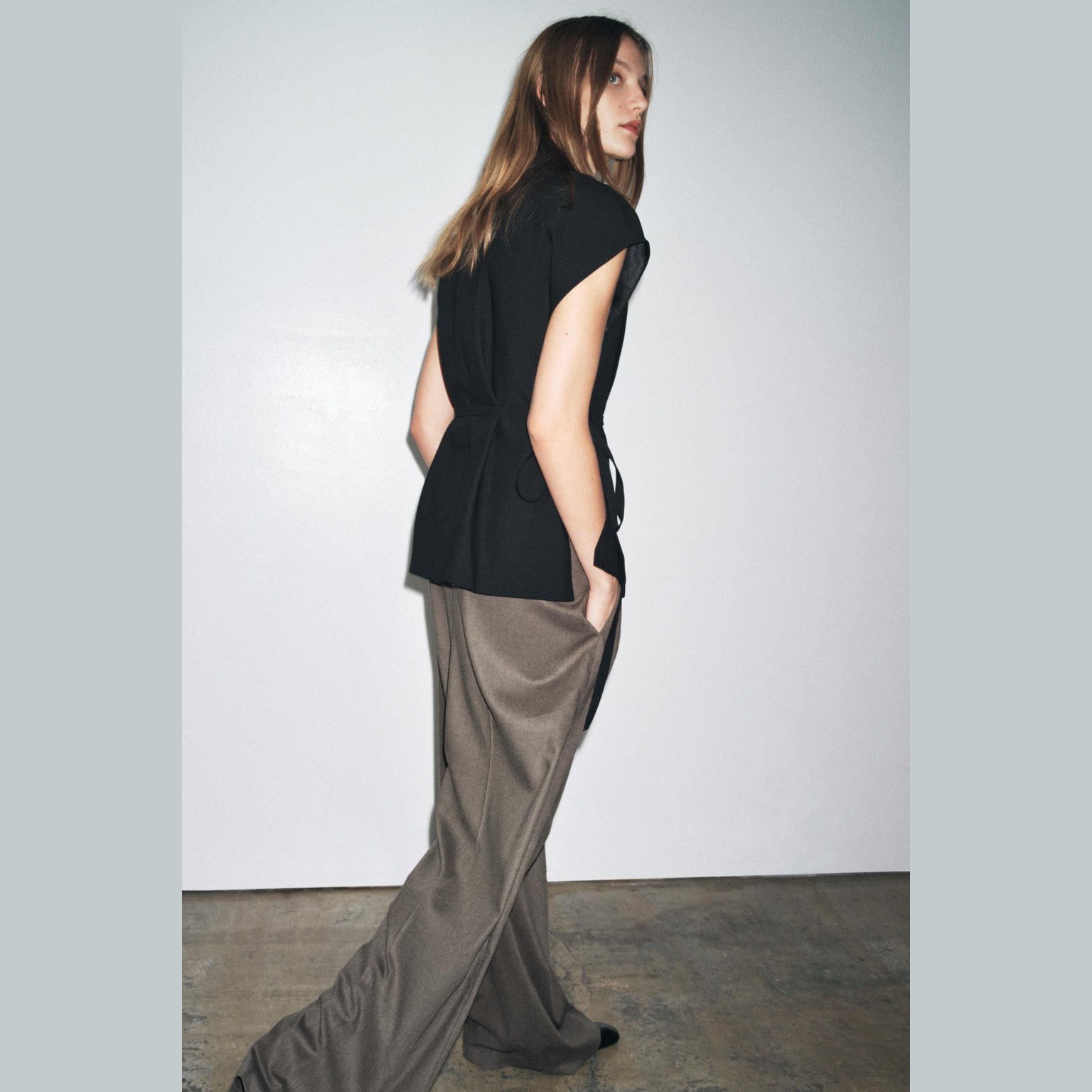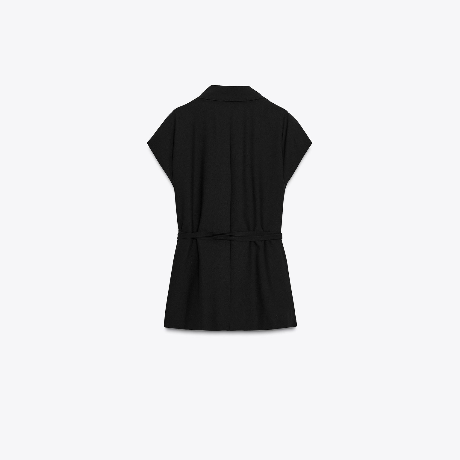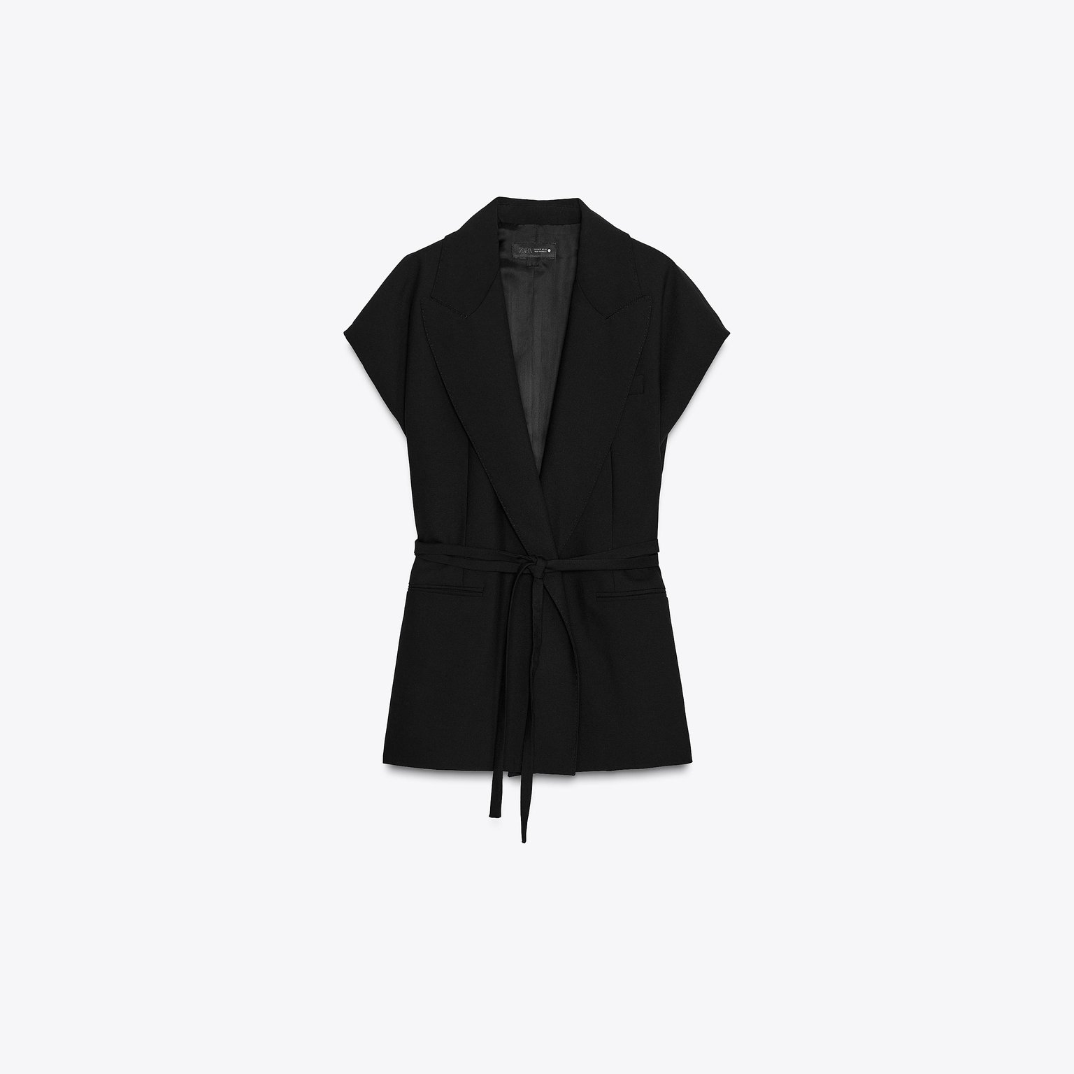 فيست أنيق من مجموعة ZW بلون أسود طبيعي، مصنوع من خامة ممزوجة تمنح مظهرًا عصريًا وملمسًا عمليًا، مع بطانة داخلية من الفيسكوز لراحة إضافية. يتميز بياقة عريضة، أكتاف ساقطة، حزام مطابق من نفس القماش مع أربطة، وبطانة داخلية بلون متناغم. تصميم مثالي للإطلالات الرسمية أو الكاجوال الأنيقة.
