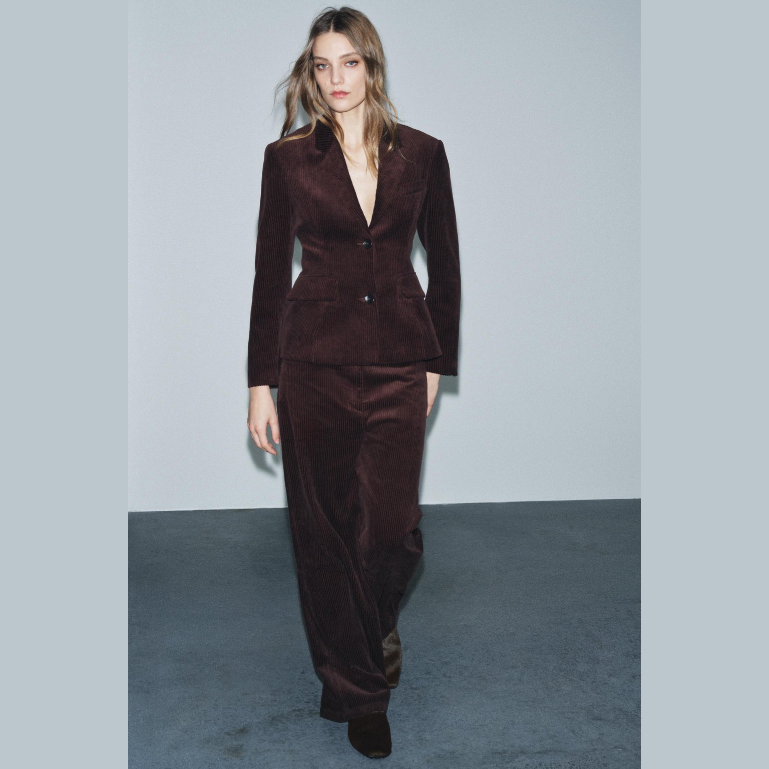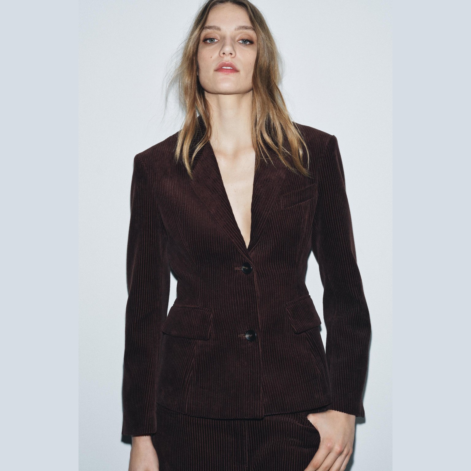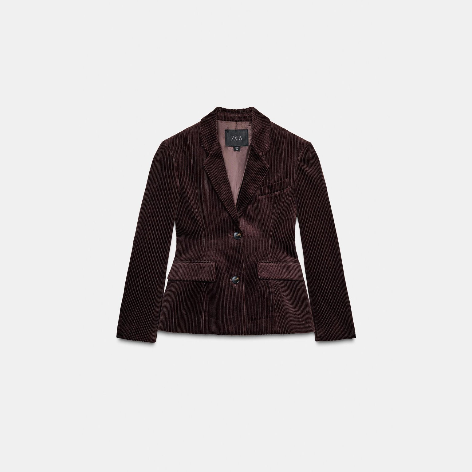 - التصميم: بليزر بخامة كوردروي (Corduroy Blazer – ZW Collection)