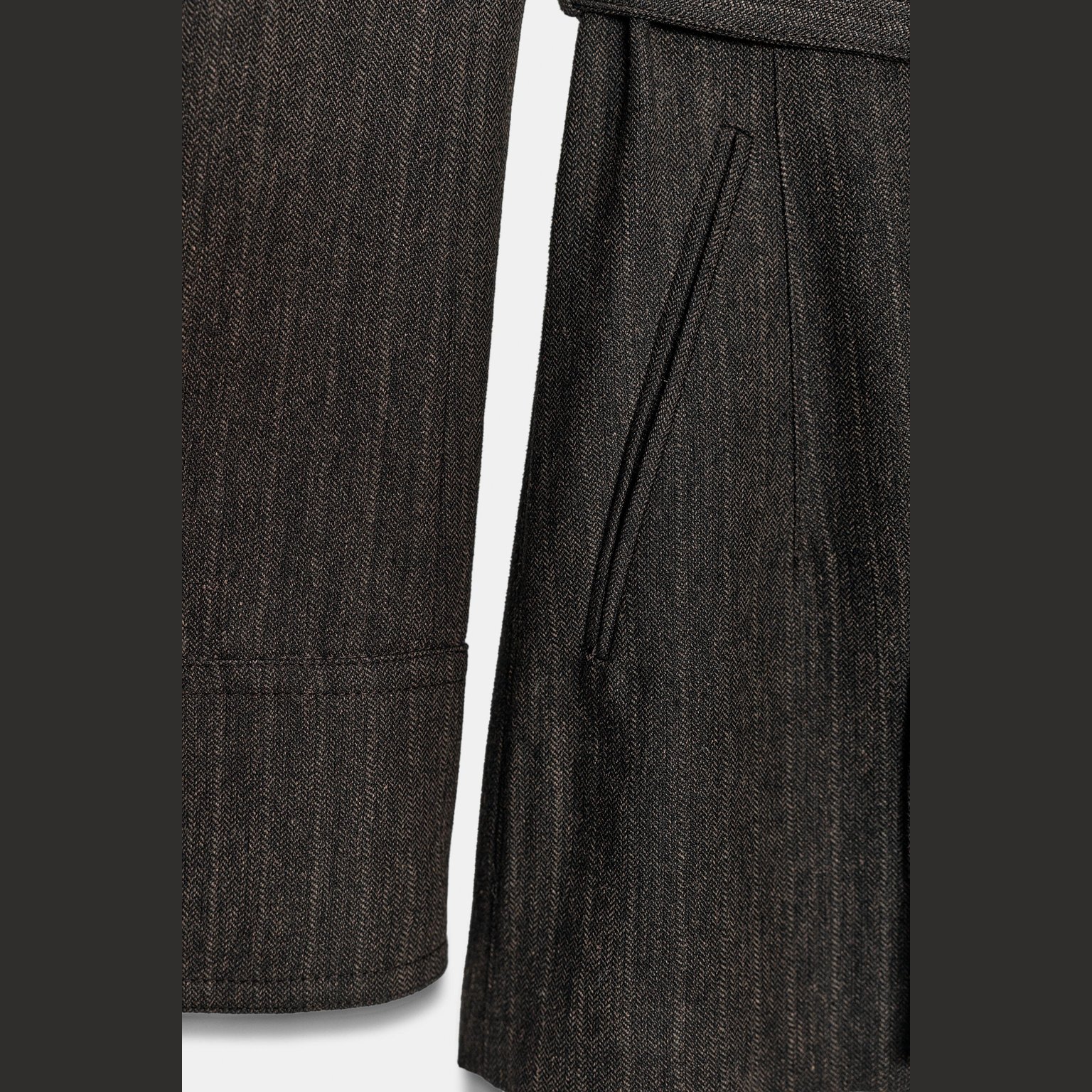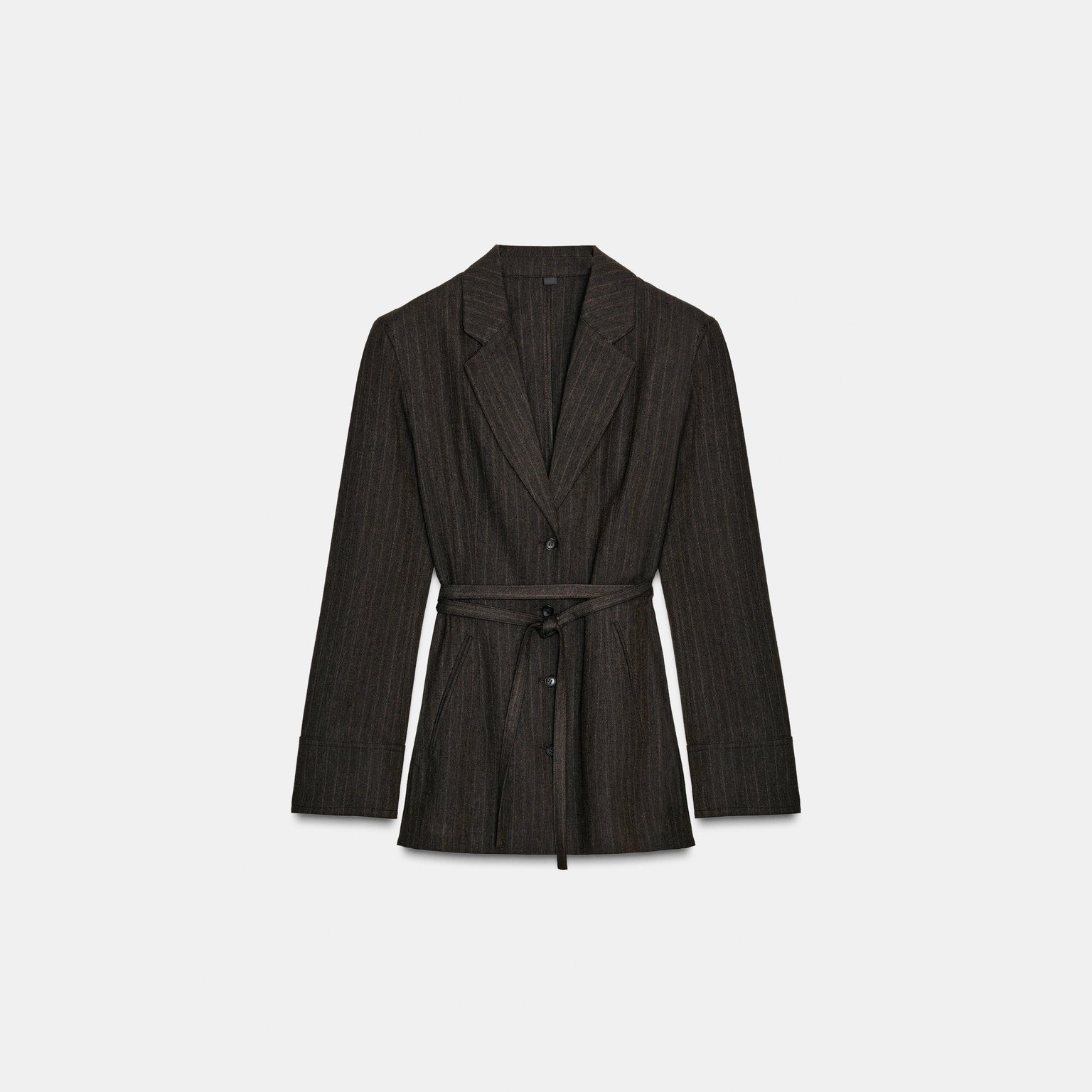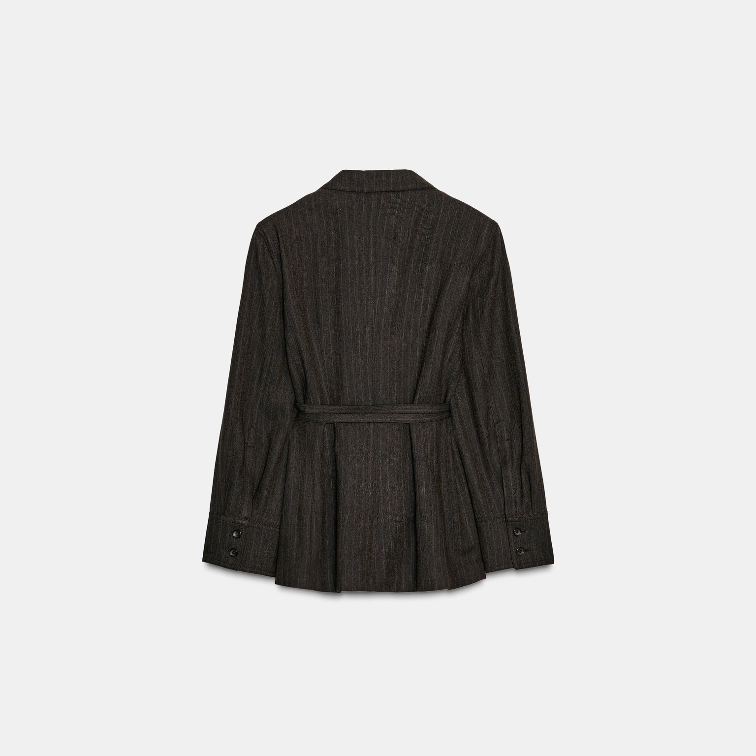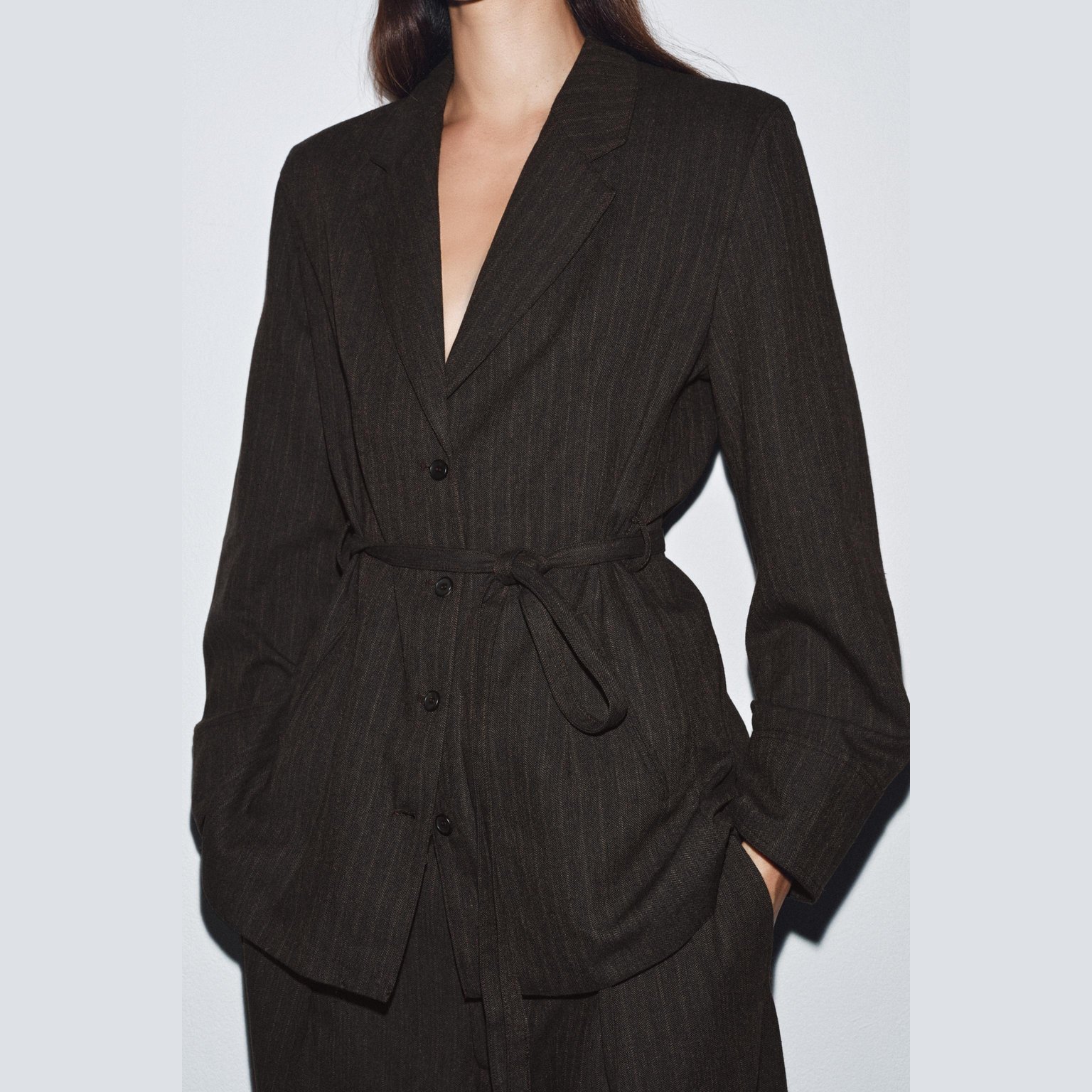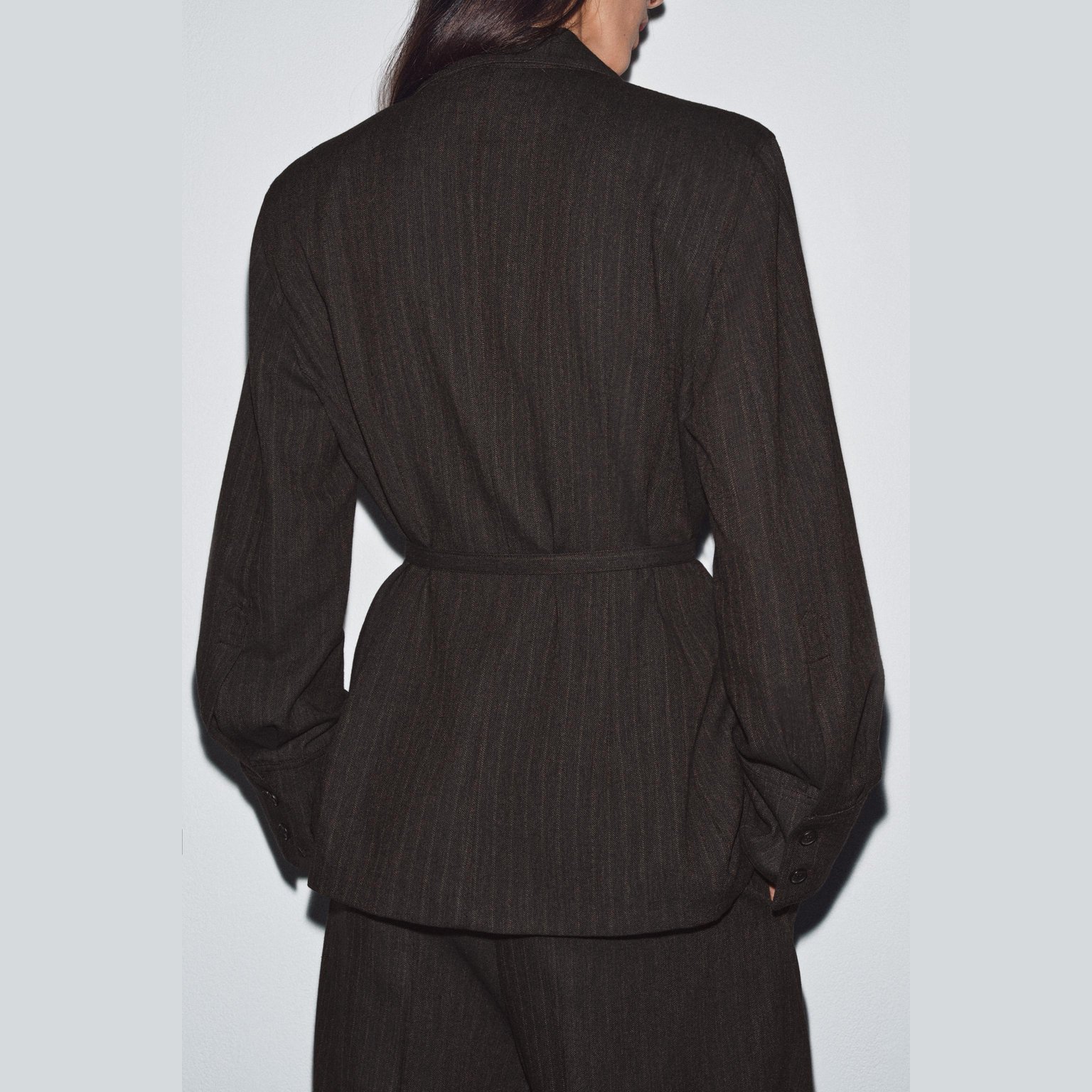 بليزر بخامة هيرينغبون مع حزام – مجموعة ZW – لون طبيعي (بني مموج) – Brown Marl (Herringbone Blazer with Belt – ZW Collection)