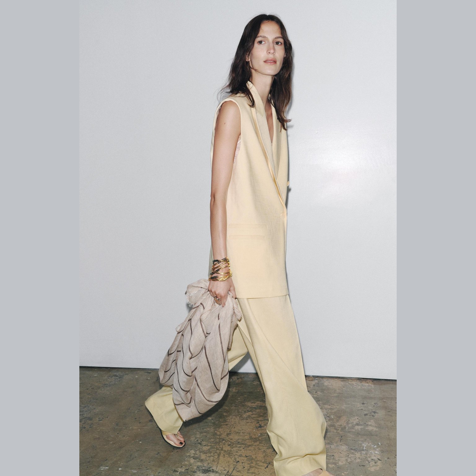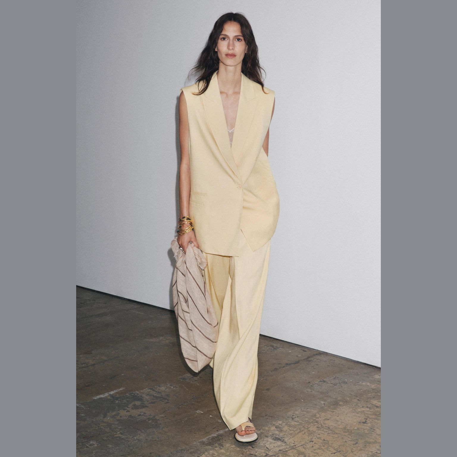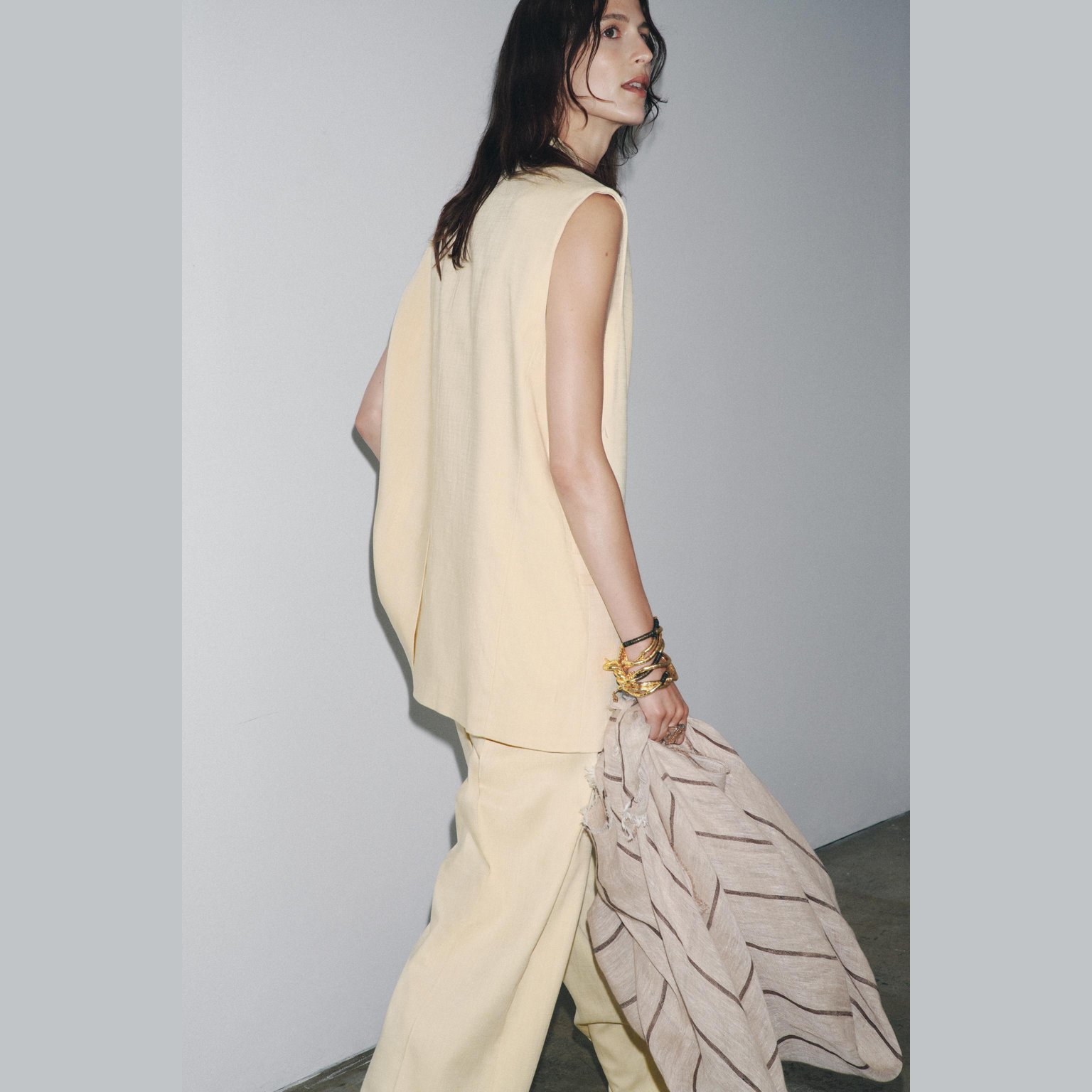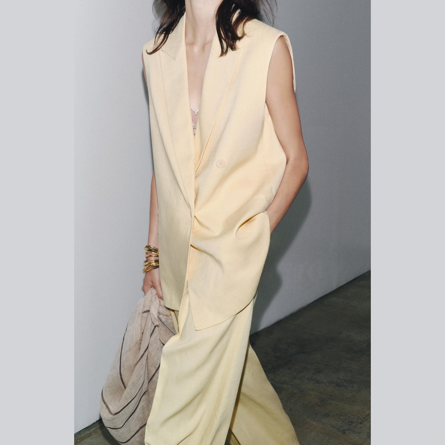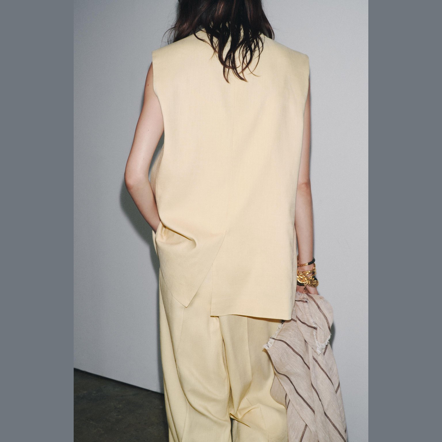 فيست أوفرسايز مزدوج الأزرار – مجموعة ZW – لون طبيعي (أصفر باستيل) – Pastel Yellow (ZW Collection Oversize Double-Breasted Waistcoat)