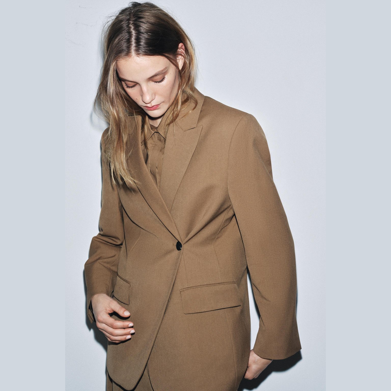 بليزر أوفرسايز – مجموعة ZW – لون طبيعي (كاراميل) – Caramel (ZW Collection Oversize Blazer)