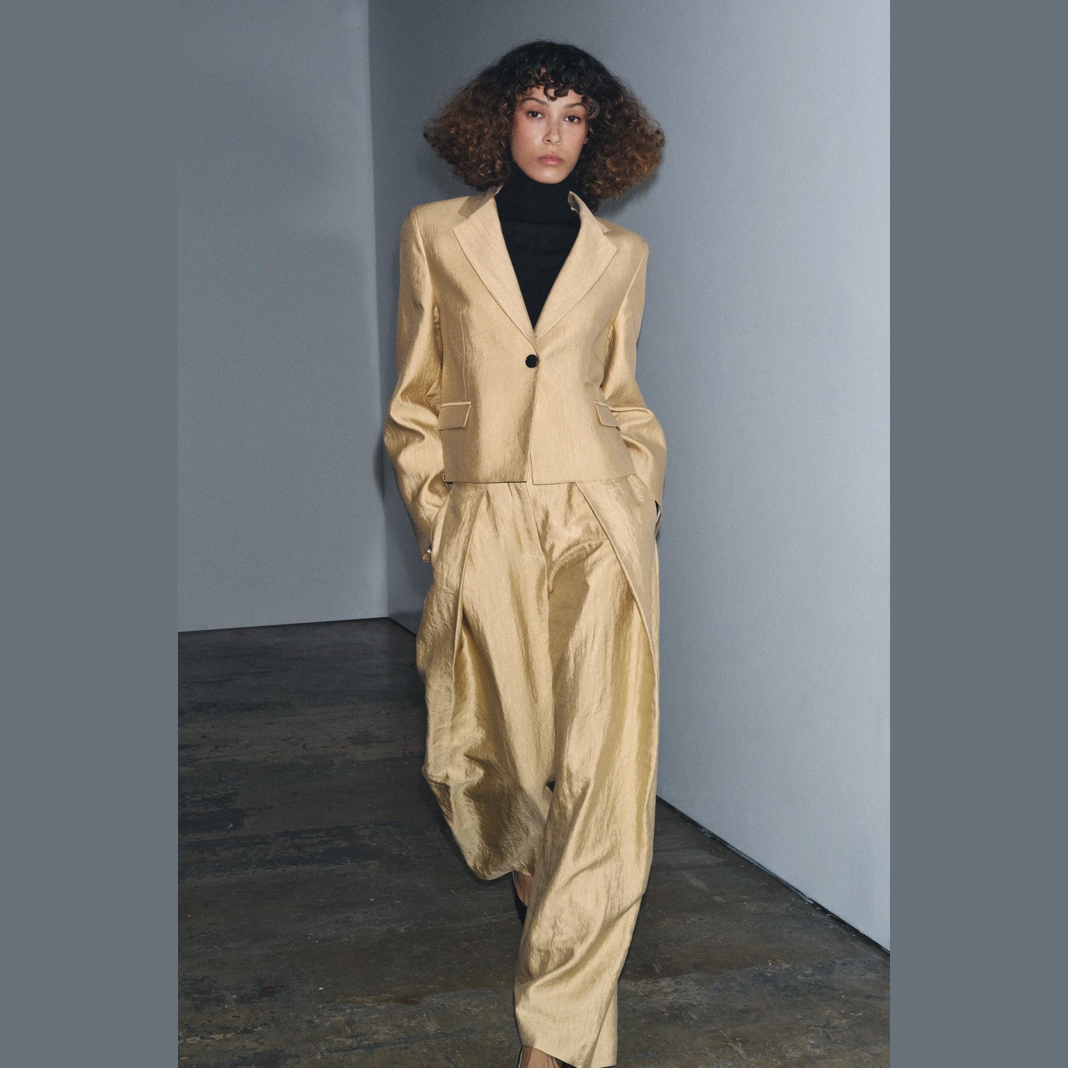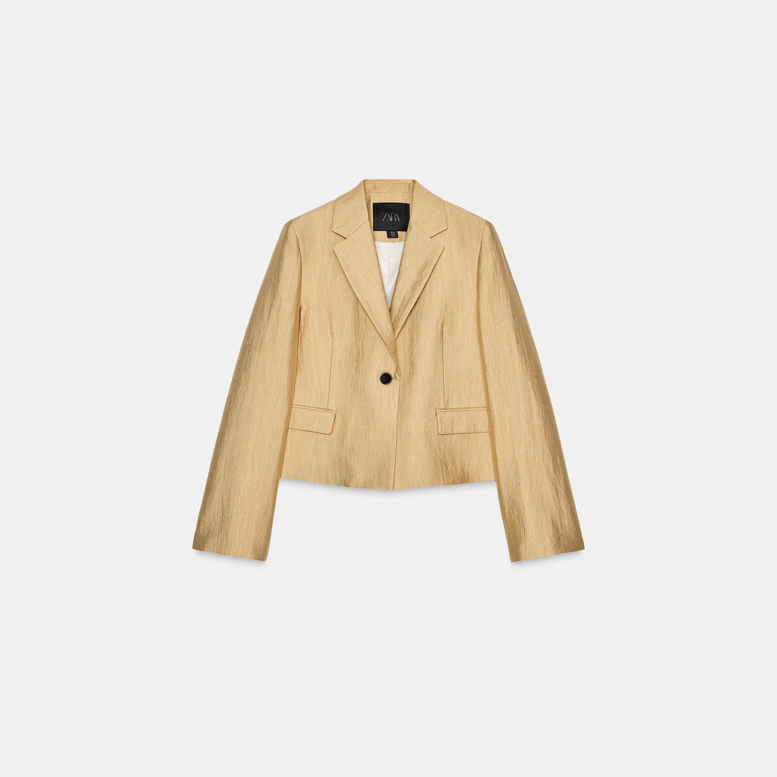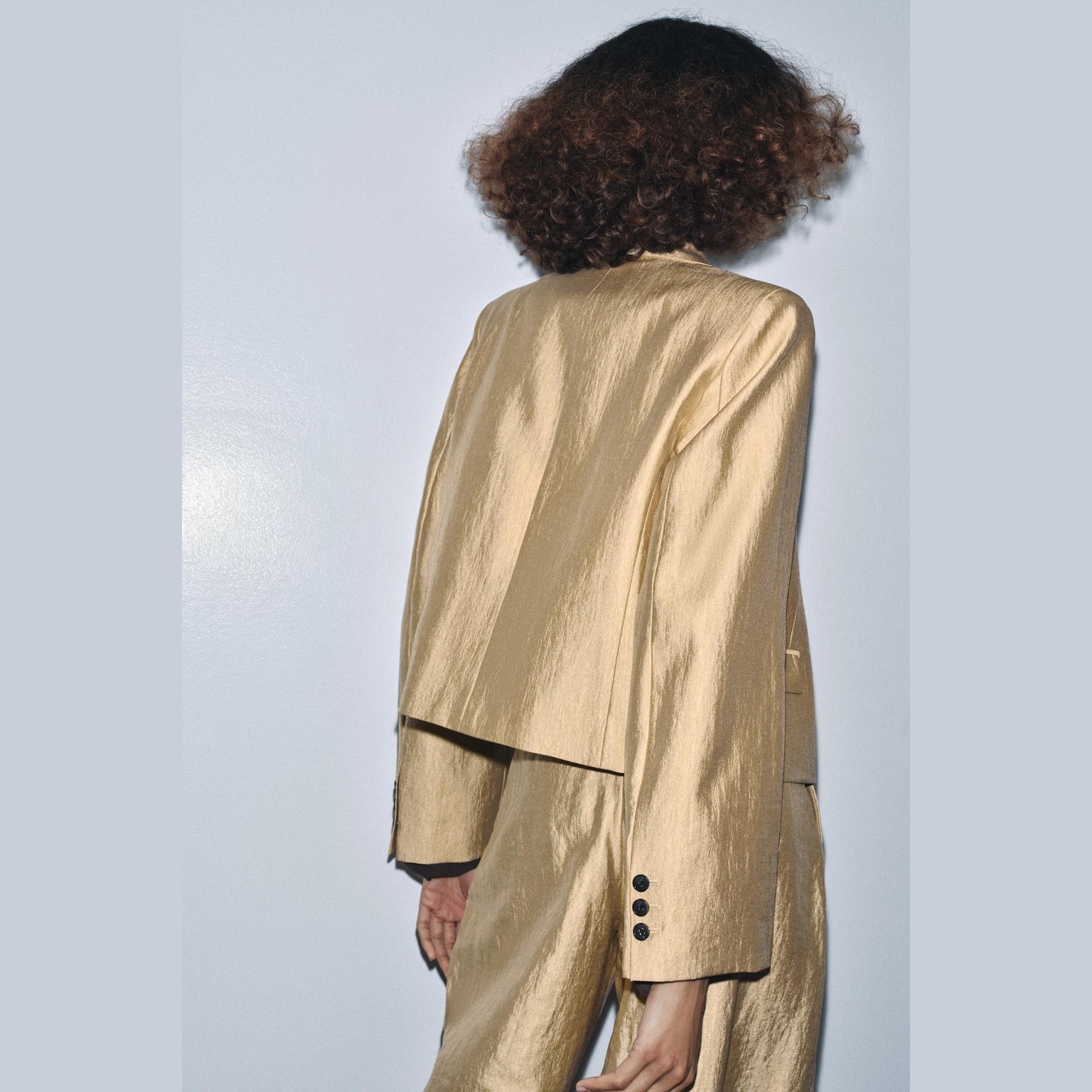 بليزر قصير ميتاليك – مجموعة ZW – لون طبيعي (ذهبي) – Golden (ZW Collection Metallic Cropped Blazer)