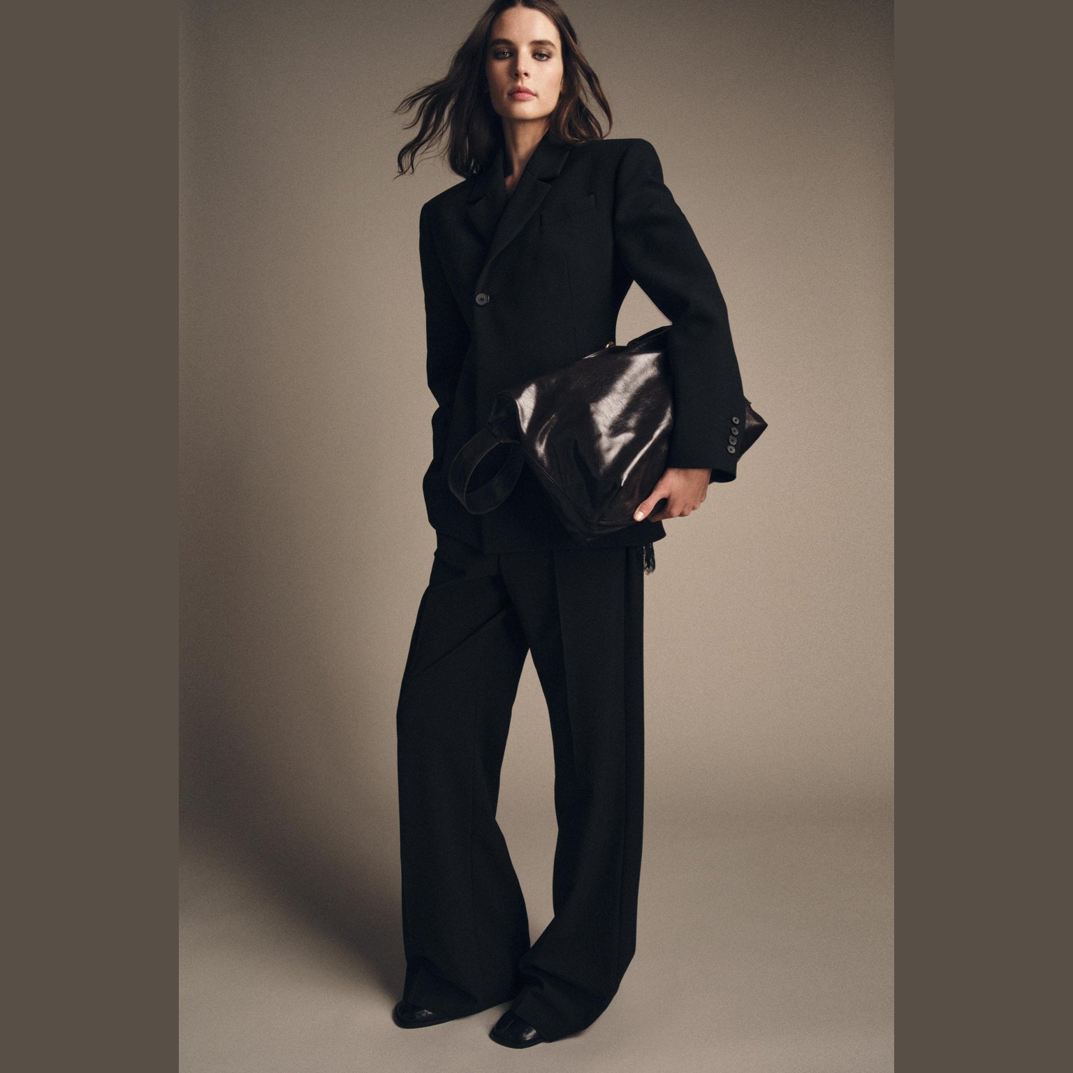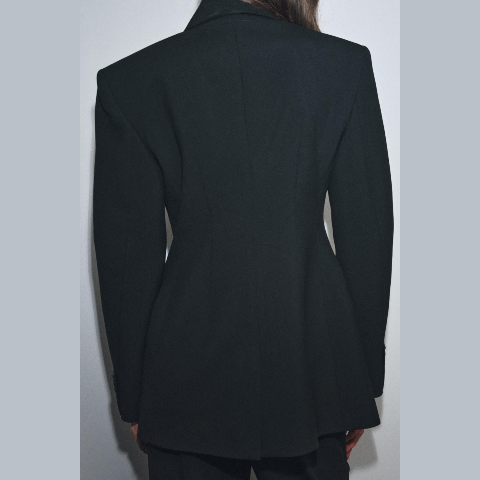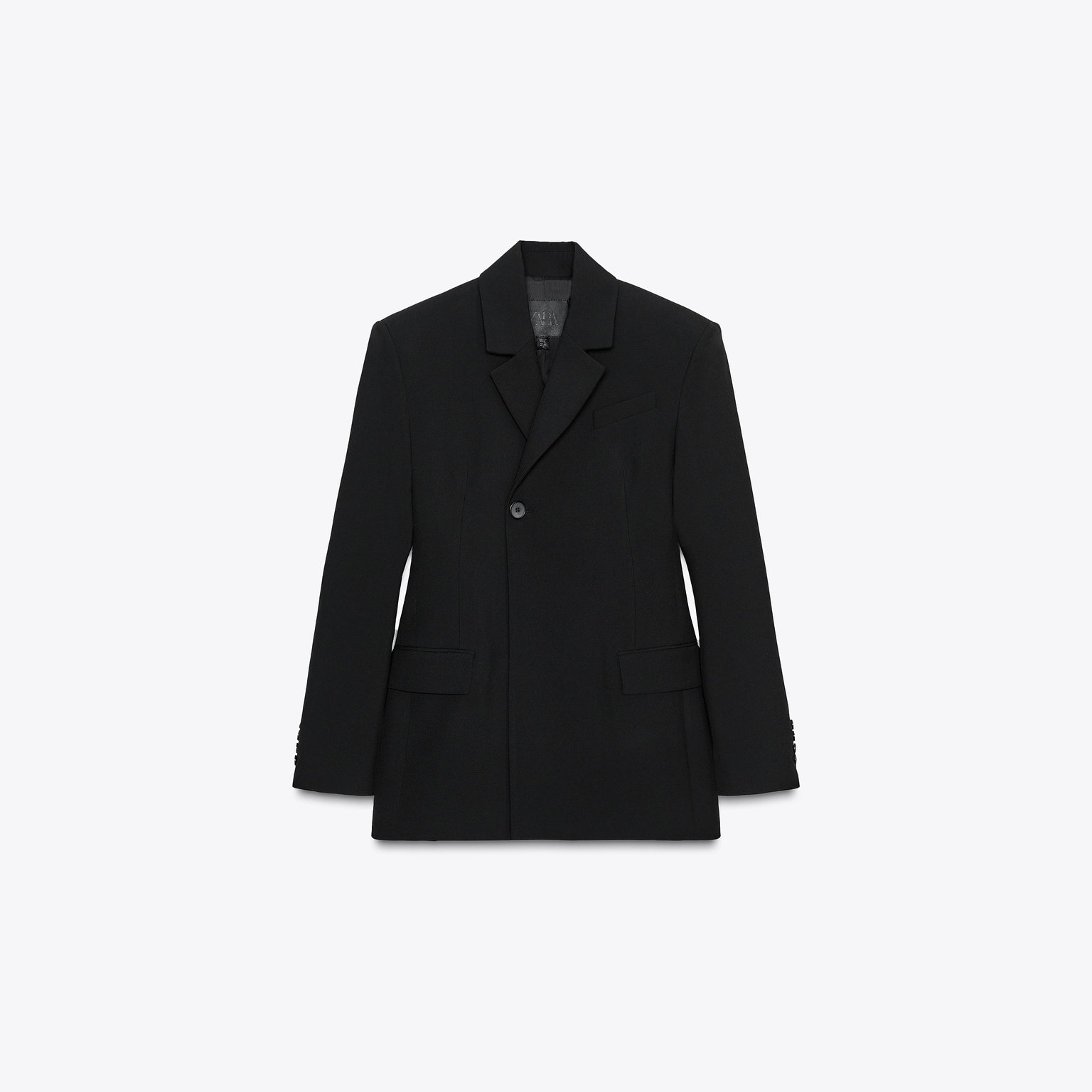 - التصميم: بليزر كلاسيكي بأزرار (Tailored Button Blazer – ZW Collection)
