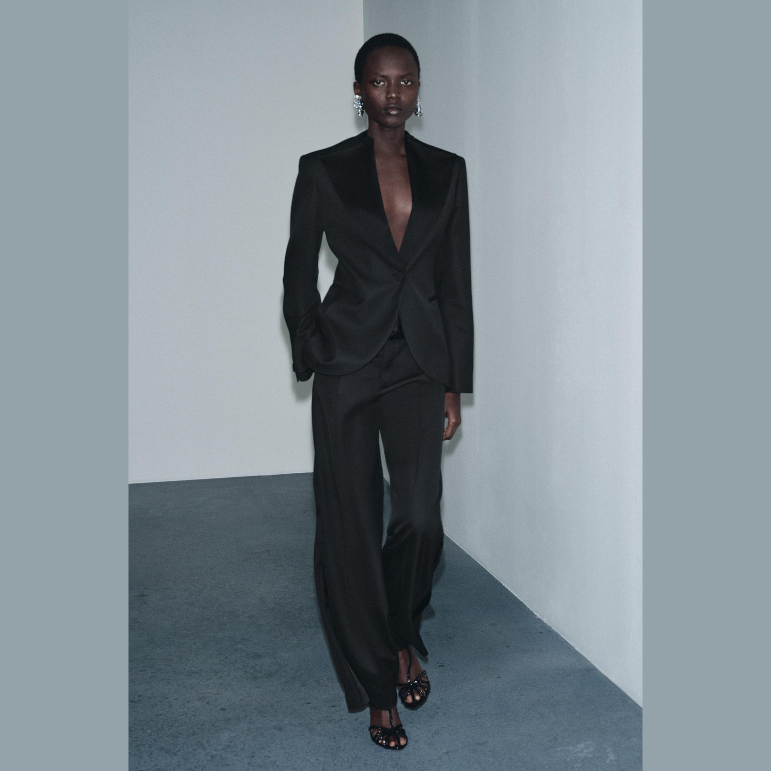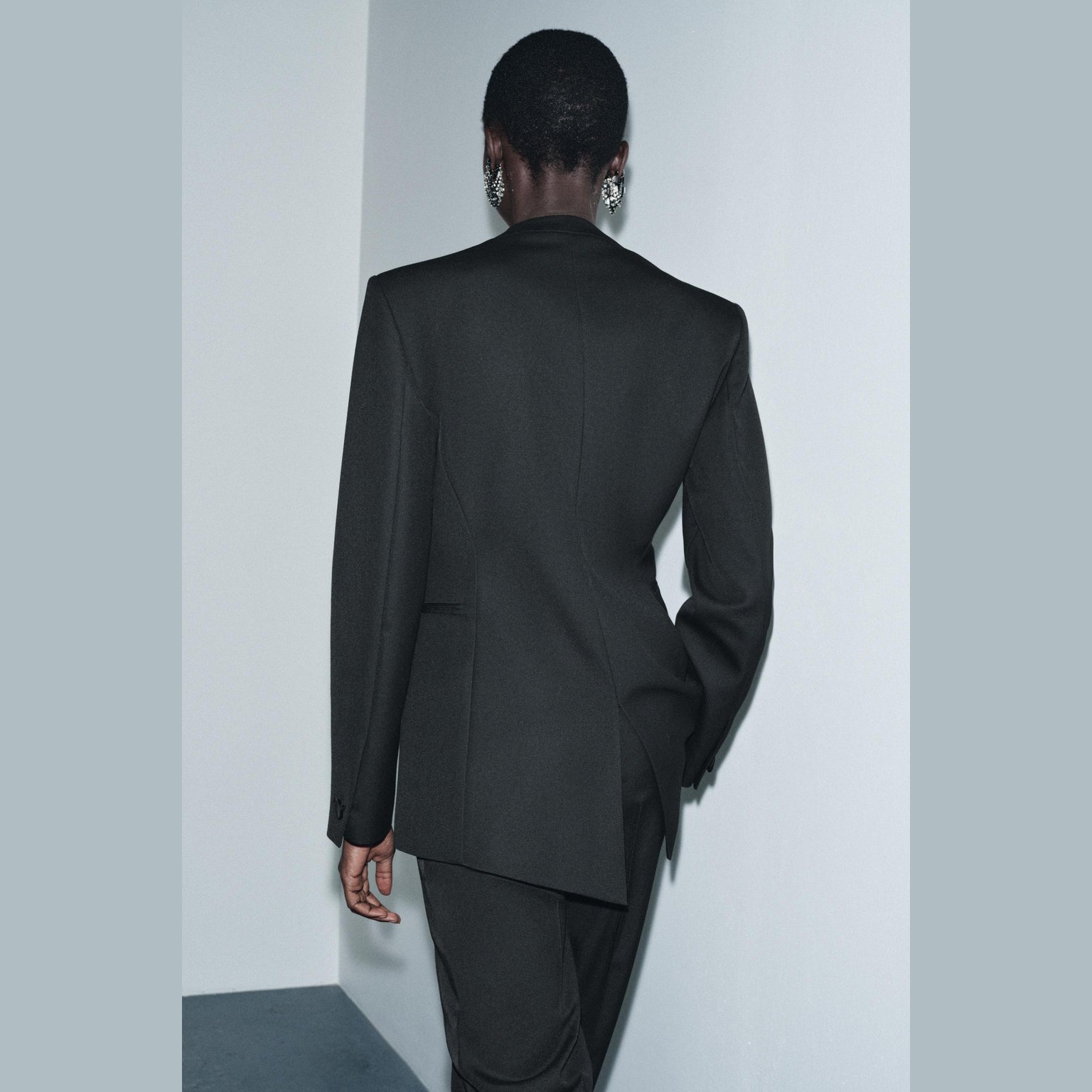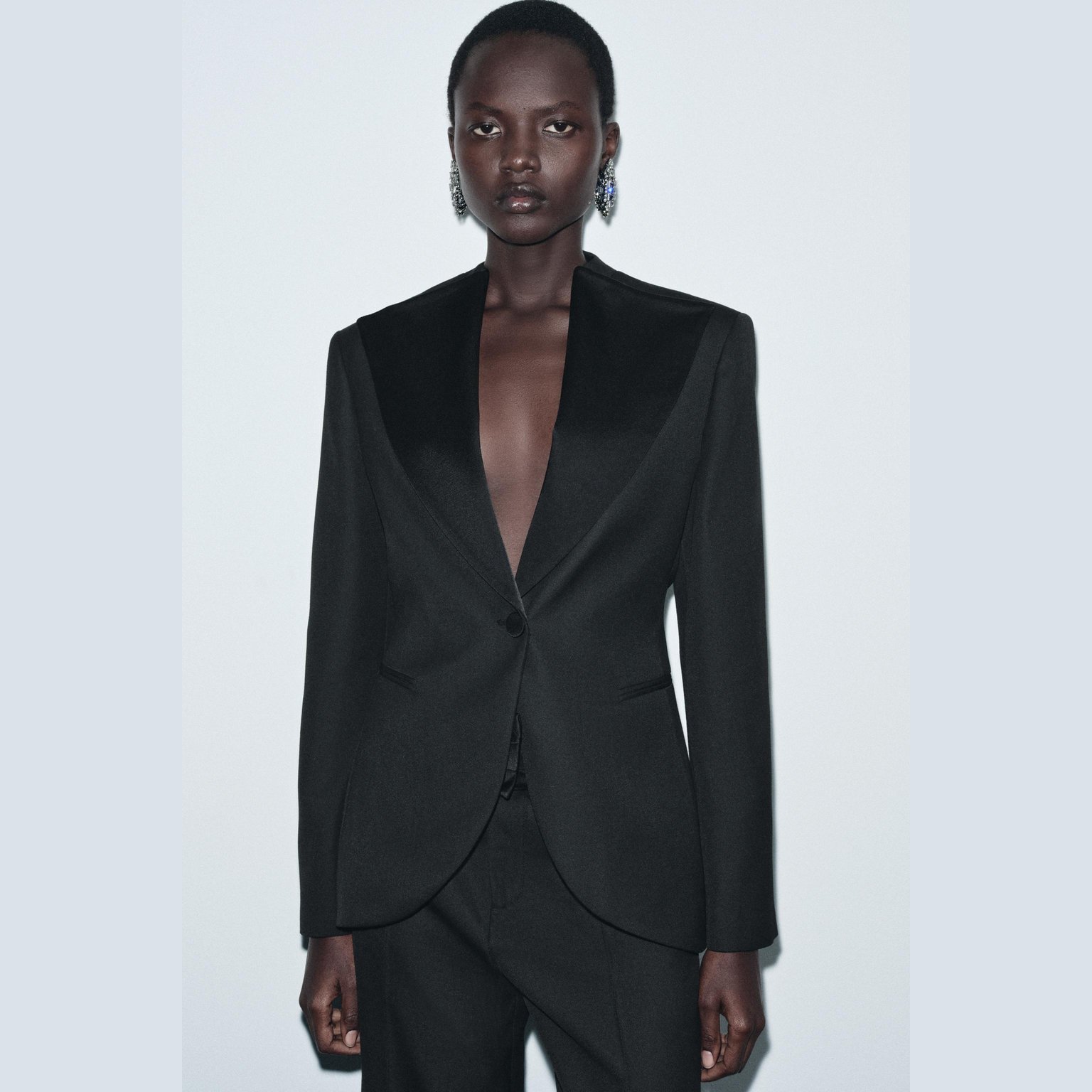 - التصميم: بليزر بقصة توكسيدو (Tailored Tuxedo-Style Blazer – Limited Edition – ZW Collection)