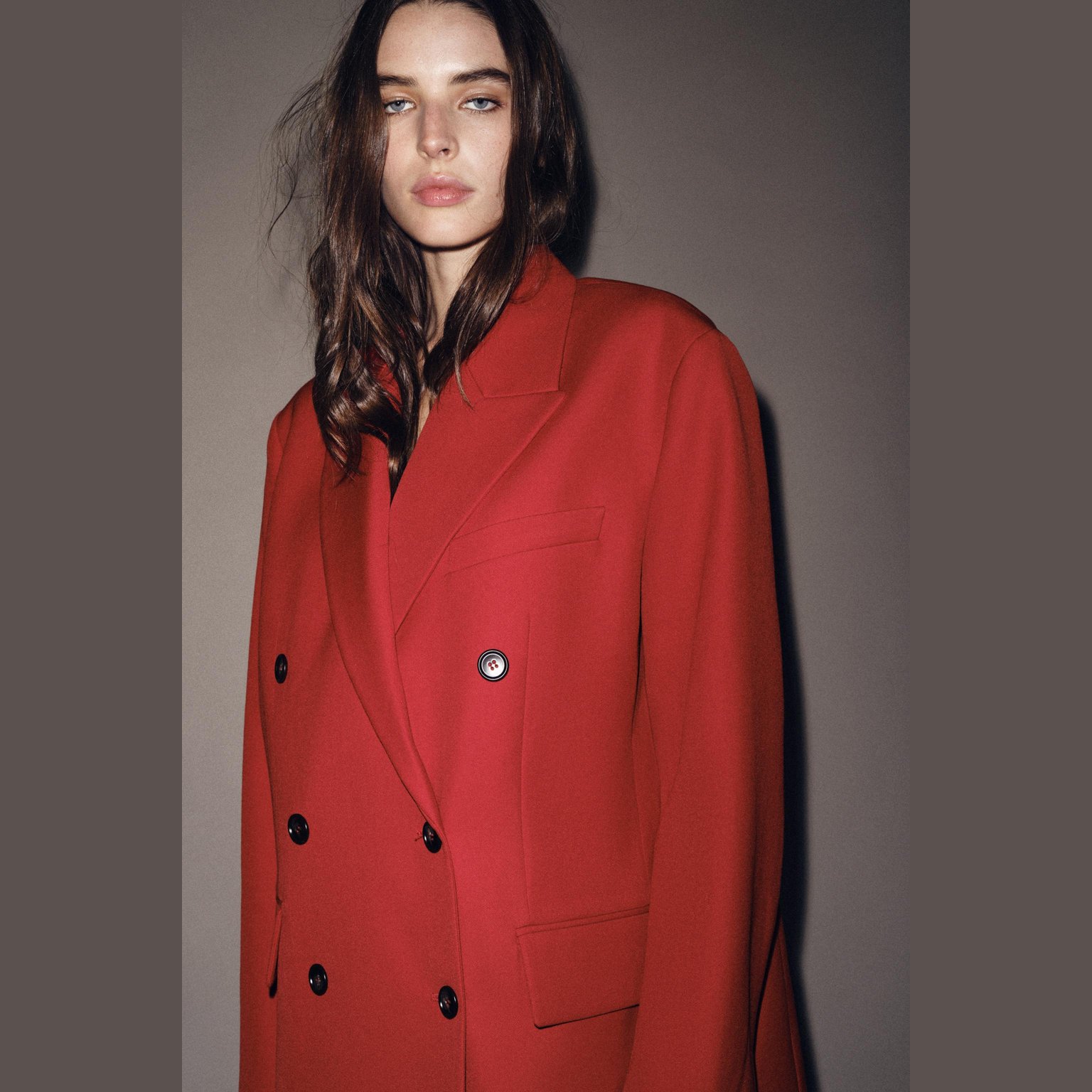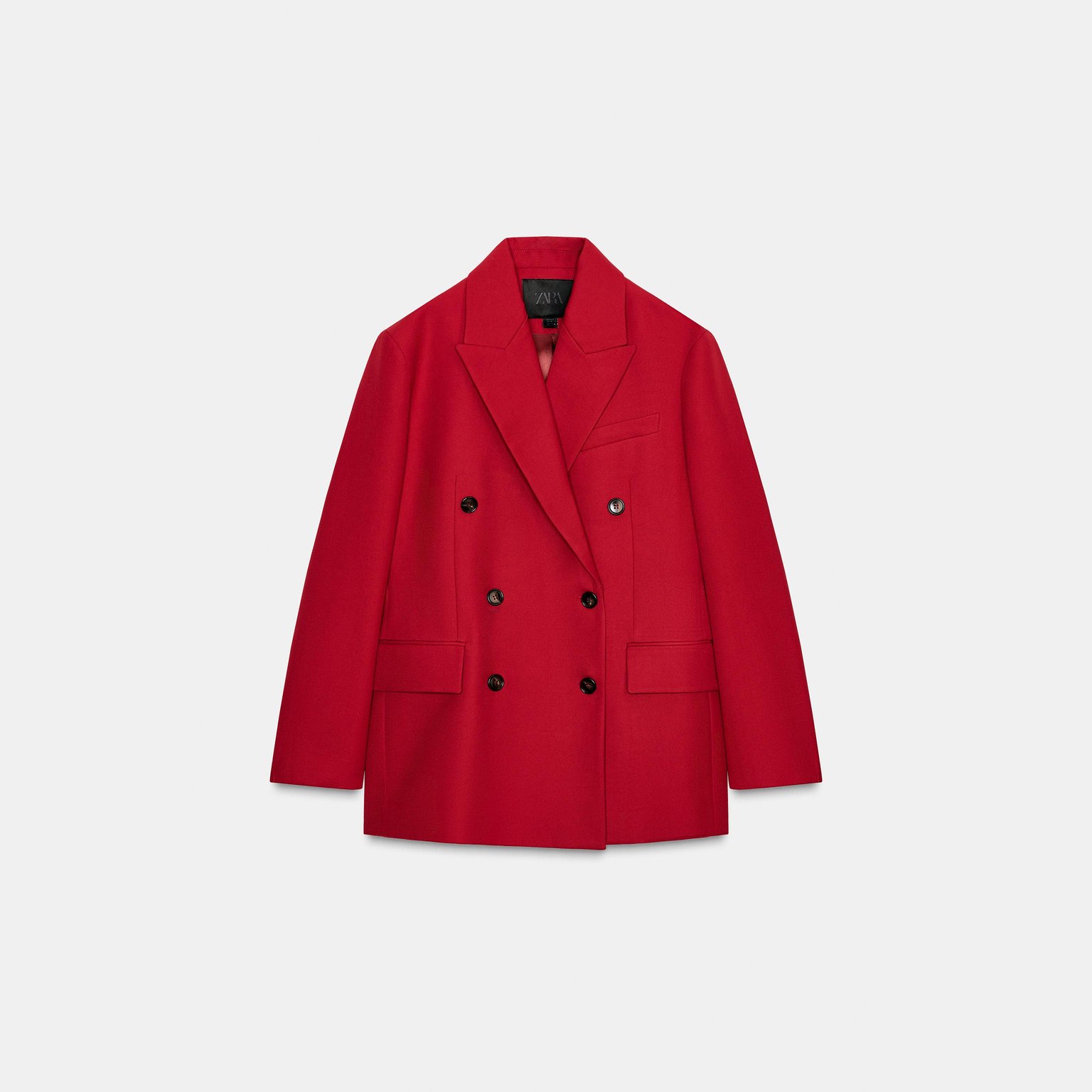 بليزر مستقيم مزدوج الأزرار – مجموعة ZW – لون طبيعي (أحمر) – Red (ZW Collection Double-Breasted Straight Blazer)