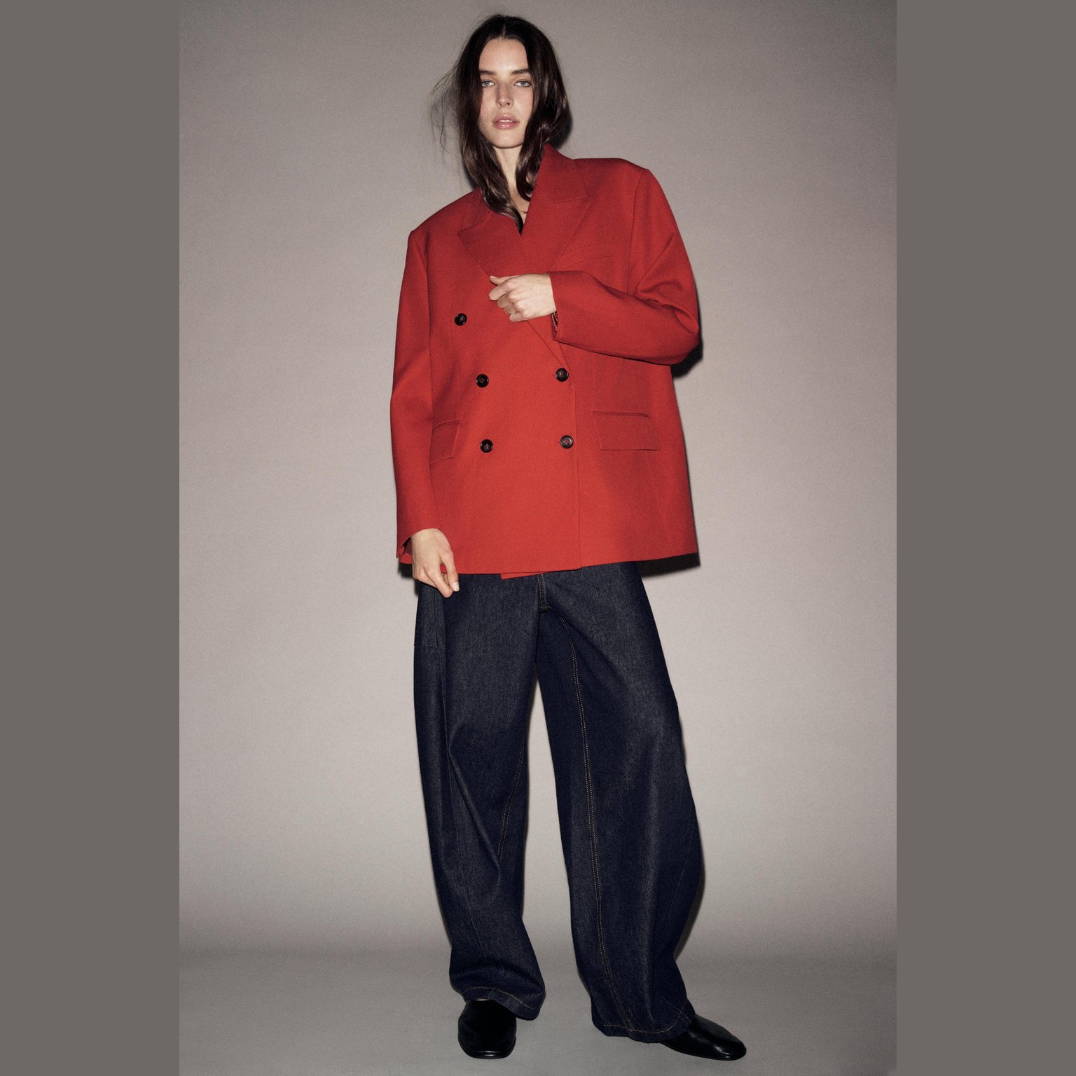 - التصميم: بليزر مستقيم مزدوج الأزرار (Double-Breasted Straight Blazer – ZW Collection)