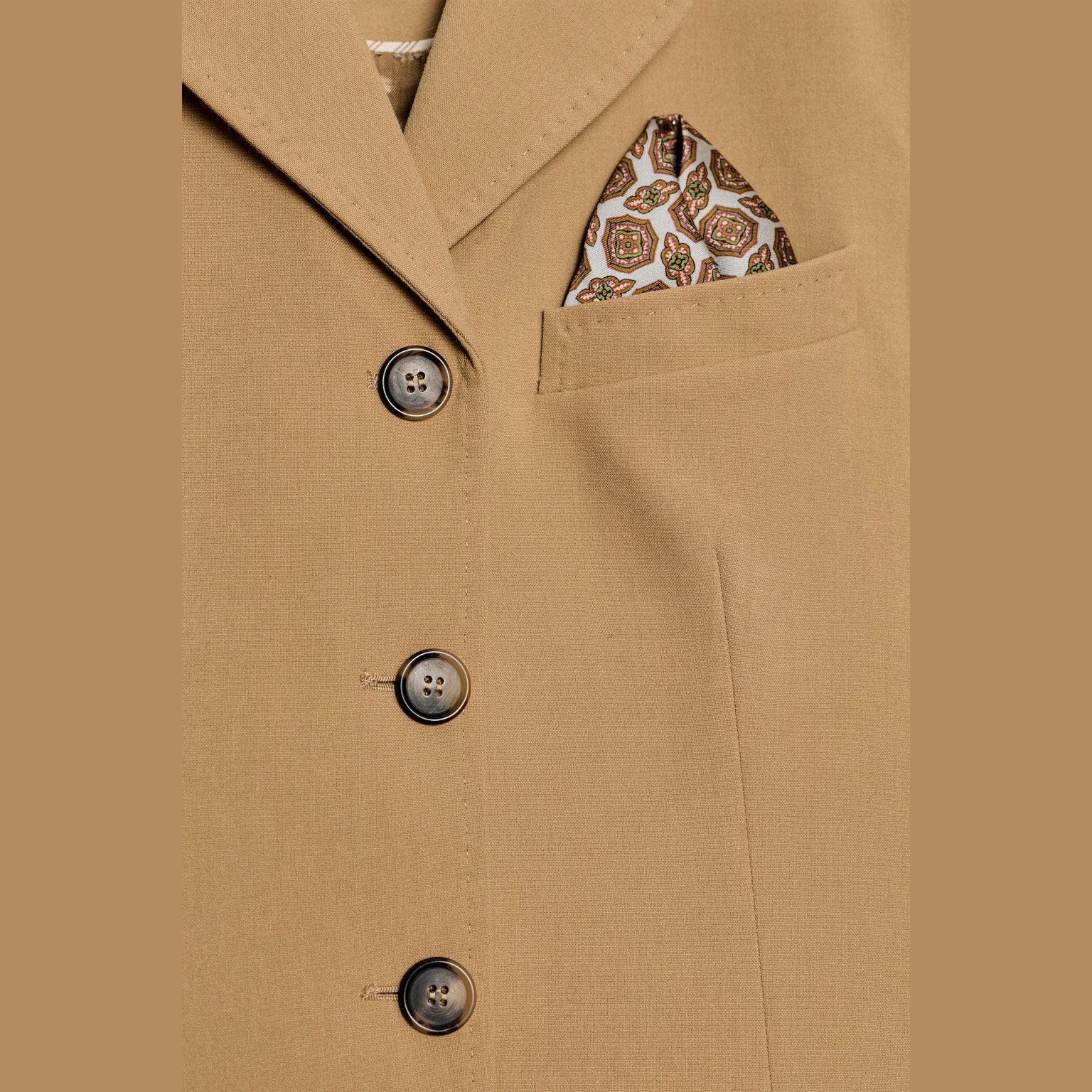 بليزر بقصة ضيقة مع وشاح متباين – مجموعة ZW – لون طبيعي (جملي فاتح) – Light Camel (Fitted Blazer with Contrast Scarf – ZW Collection)