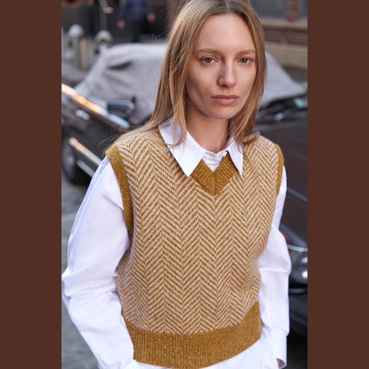 صديري صوفي بنقشة هيرينغبون – لون طبيعي (خردلي) – Mustard (Herringbone Wool Waistcoat)