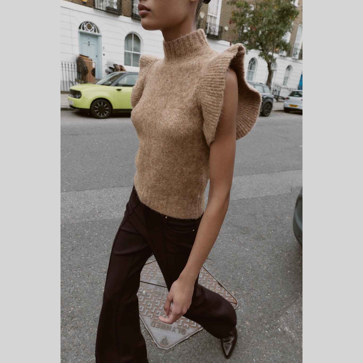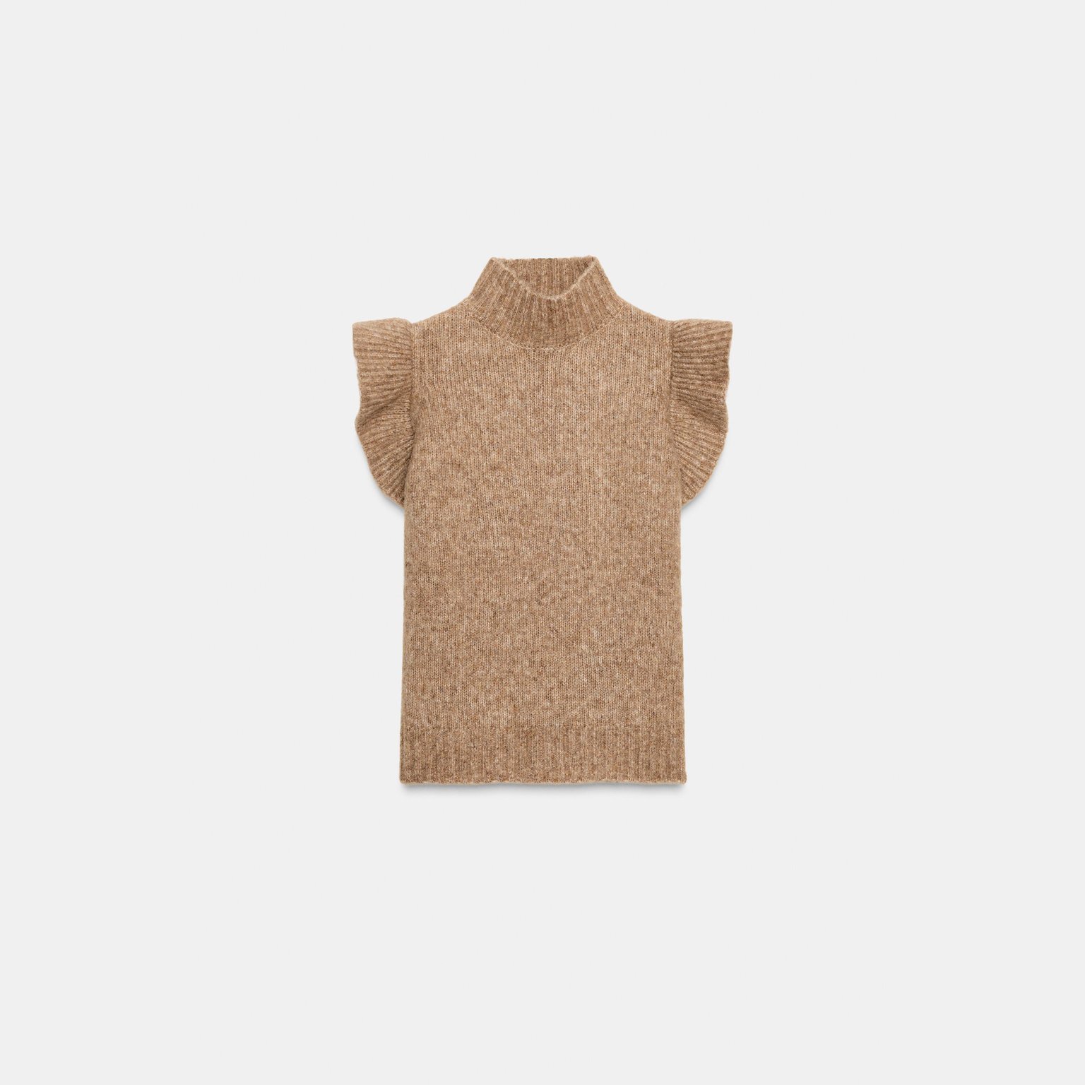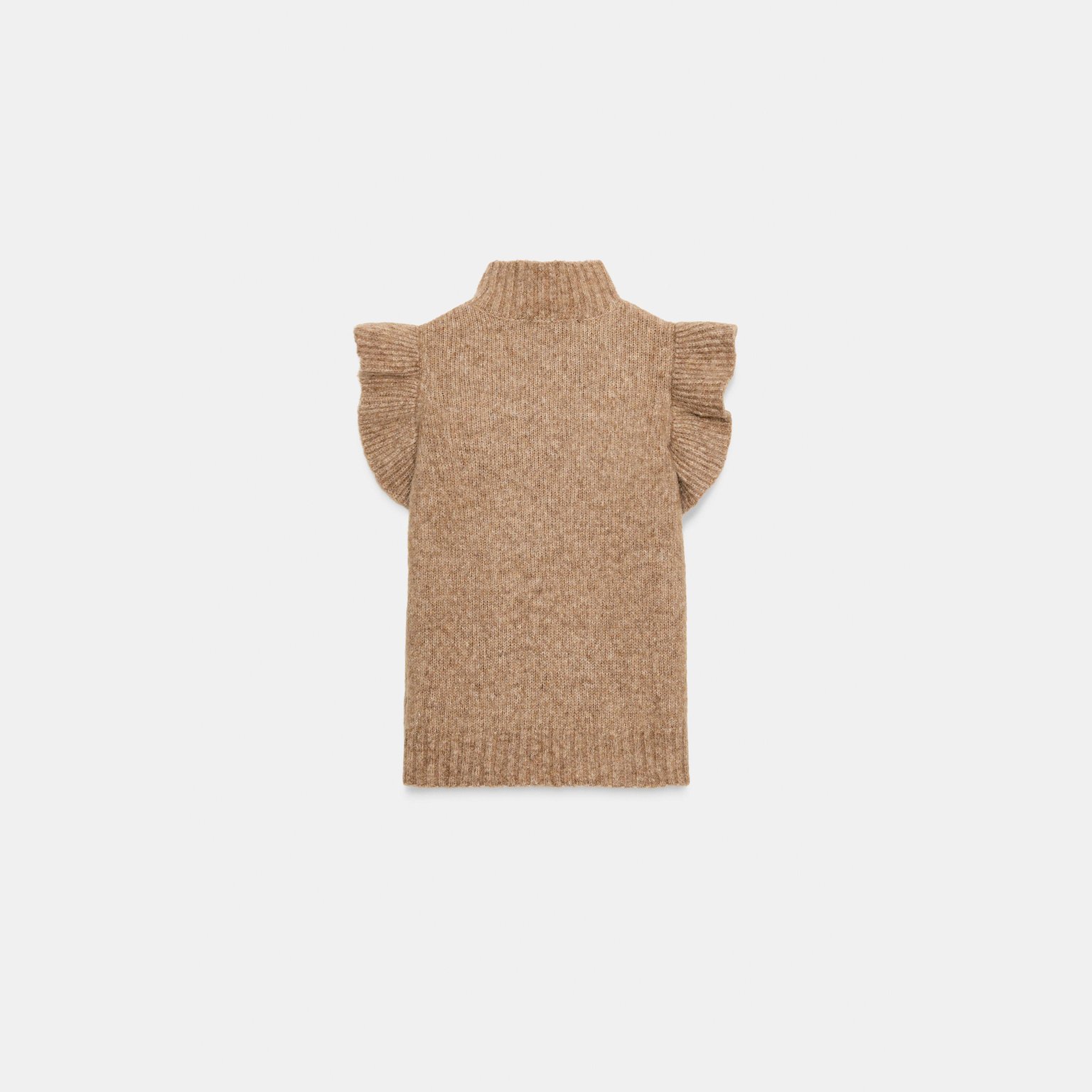 جيليه صوفي مع كشكشات – لون طبيعي (جملي فاتح) – Light Camel (Wool Gilet with Ruffles)