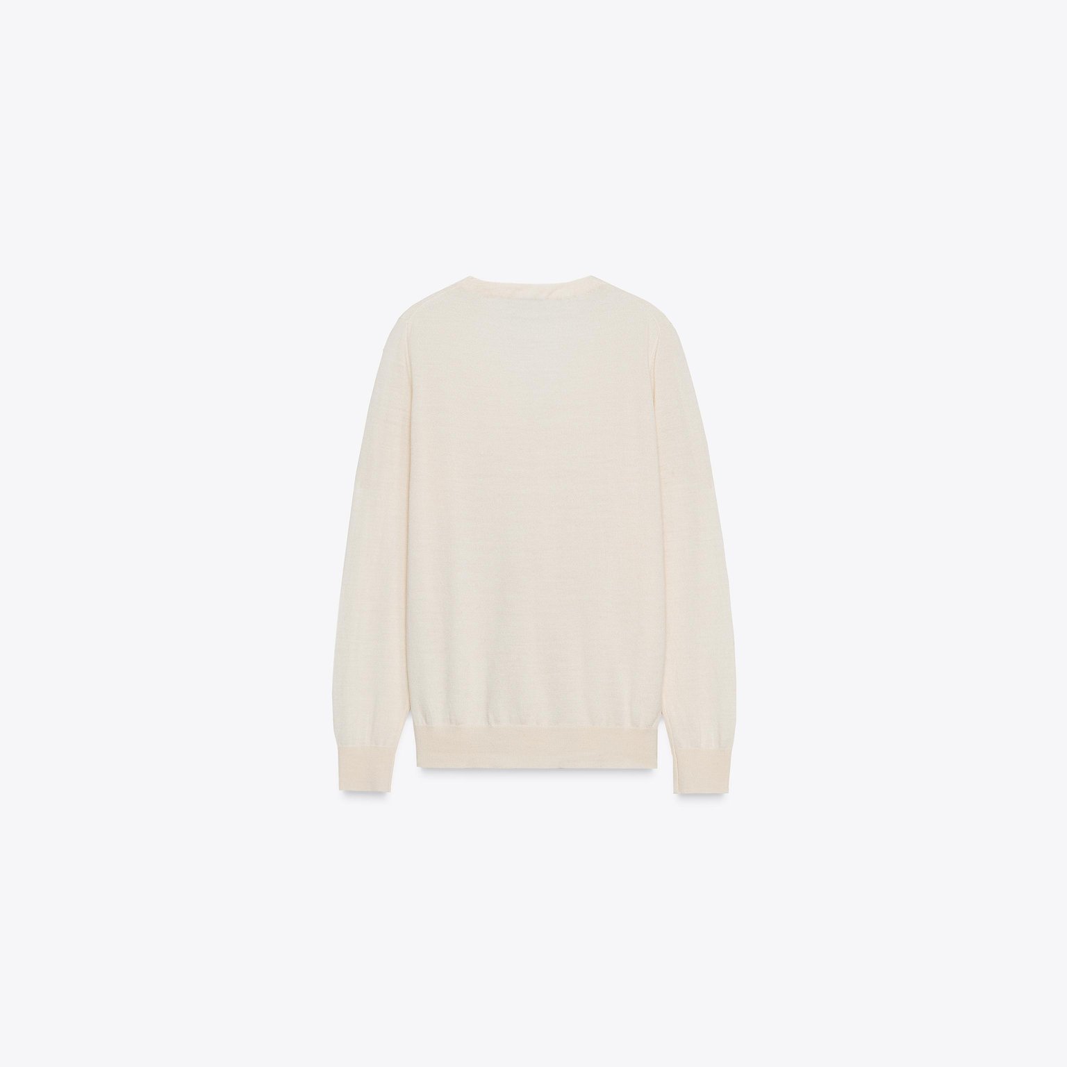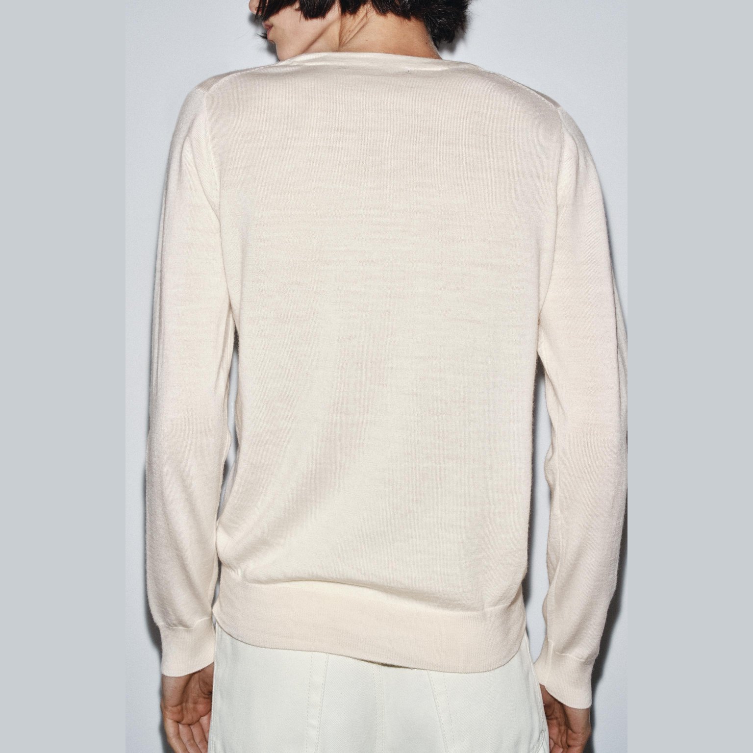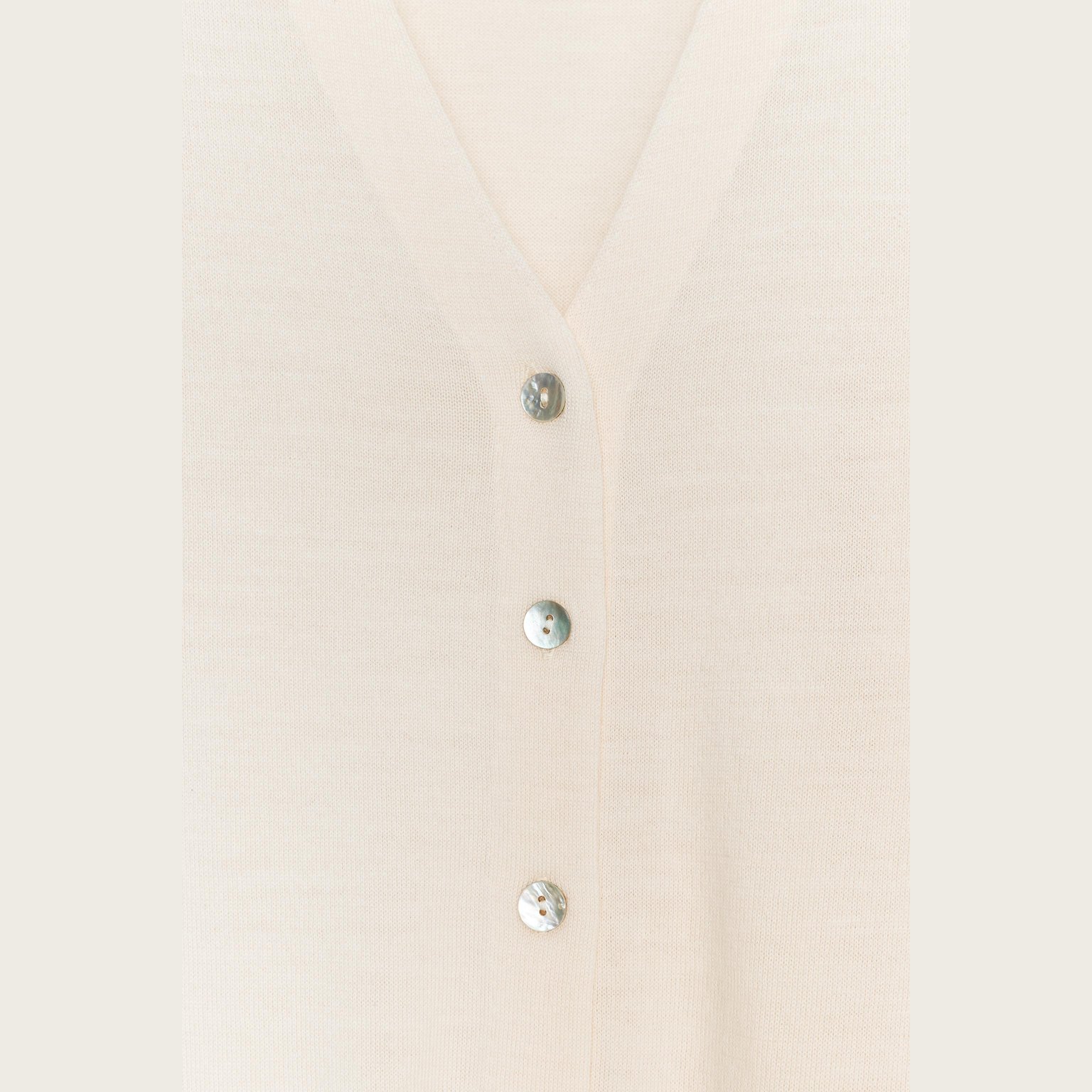 كارديغان صوفي 100% بياقة V – لون طبيعي (أوف وايت) – Ecru (100% Wool V-Neck Cardigan)